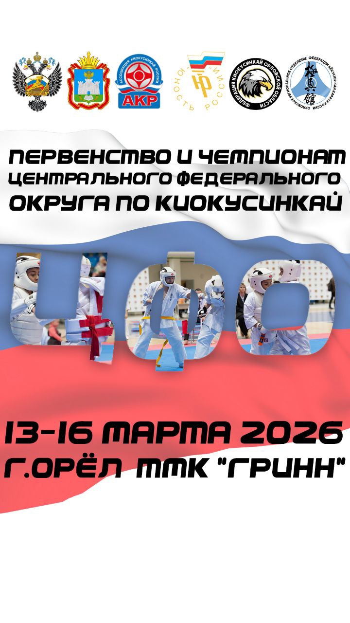 Чемпионат и Первенство Центрального ФО по кёкусинкан среди мужчин, женщин, мальчиков, девочек, юношей, девушек, юниоров и юниорок. Орёл, 13 - 16 марта 2026 г.