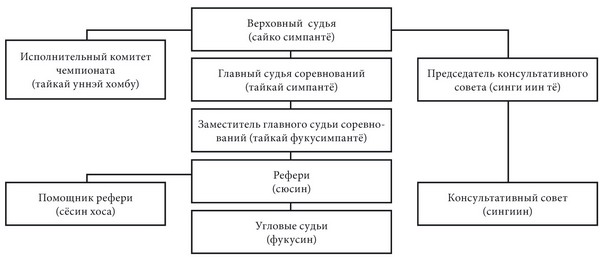 11. Консультативный комитет (сингиин) принимает решения о вручении специальных призов («За лучшую технику», «За волю к победе» и др.), консультирует судей в случае подачи протеста на решение судейской бригады или возникновения в ходе соревнований ситуаций, разрешение которых в правилах четко не определено; при этом право окончательного решения принадлежит главе консультативного совета (синги иинтё) и верховному судье (сайко симпантё).