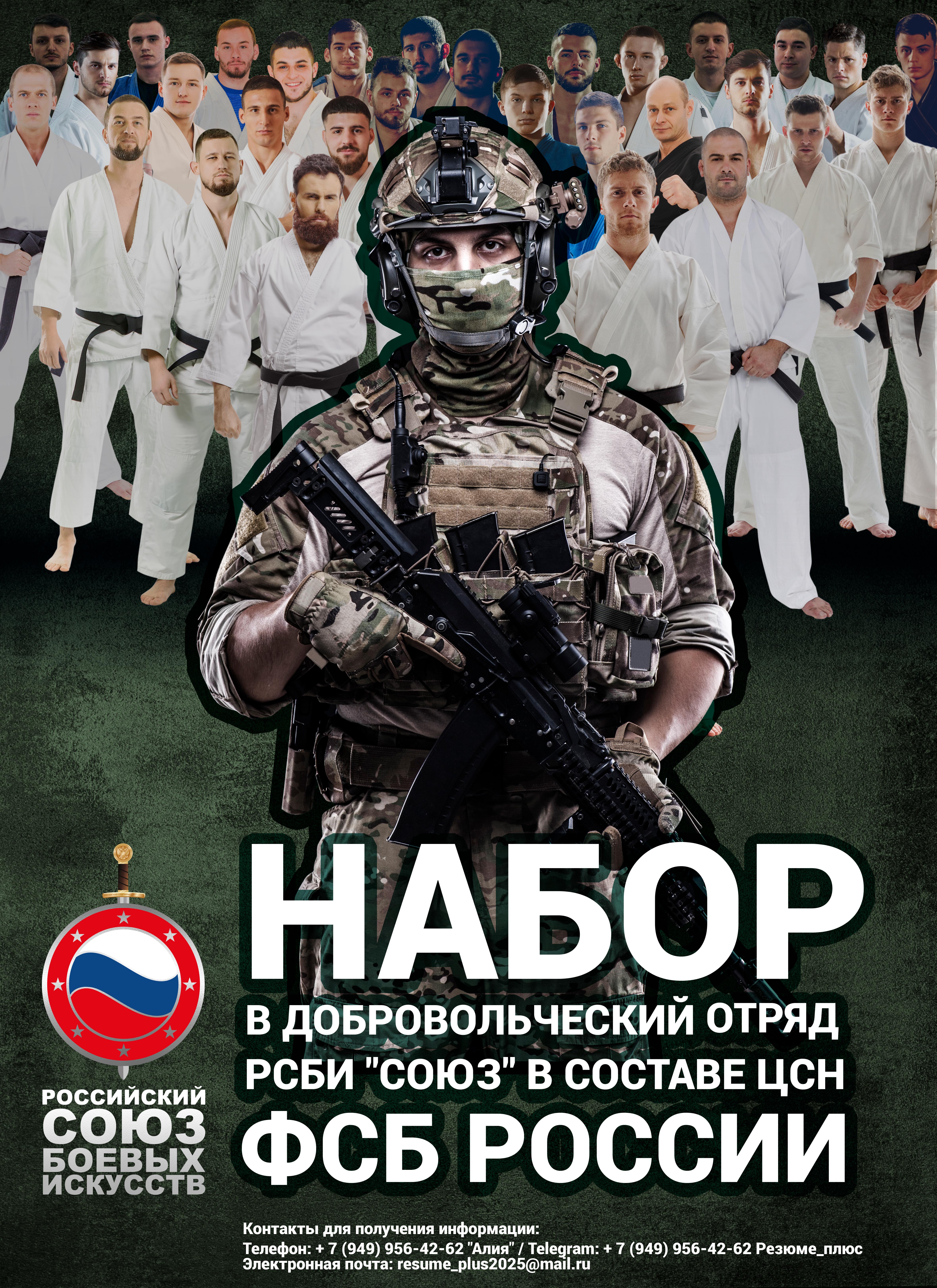 Открыт дополнительный набор на военную службу в добровольческий отряд РСБИ «СОЮЗ» в составе ЦСН ФСБ России!