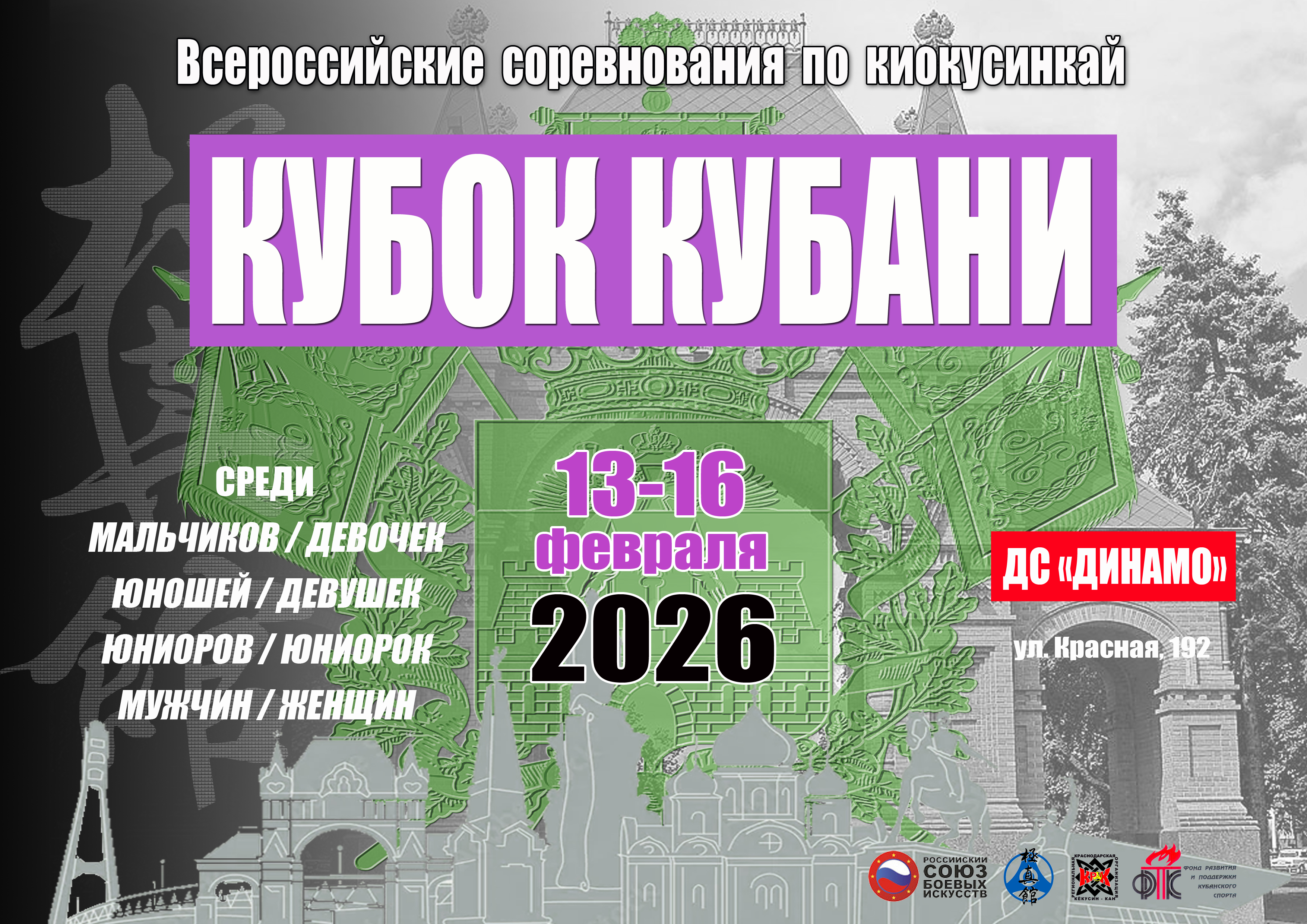 Всероссийские соревнования «Кубок Кубани» по киокусинкай (кёкусинкан) среди мальчиков, девочек (10-11 лет), юношей, девушек (12-15 лет), юниоров, юниорок (16-17 лет), мужчин и женщин (18 лет и старше).