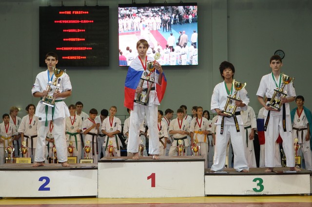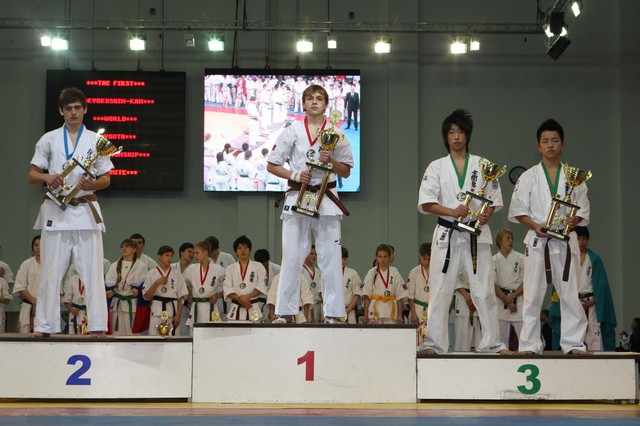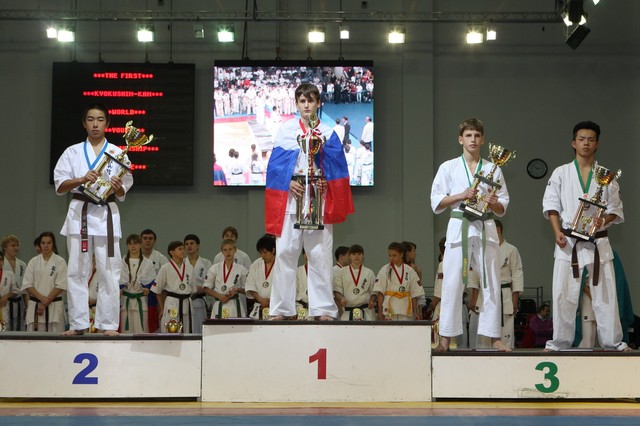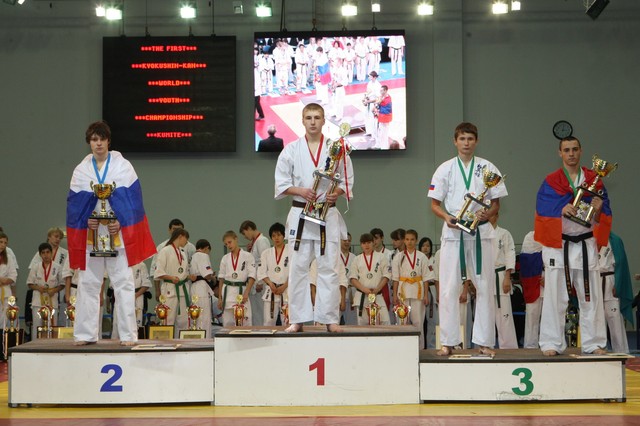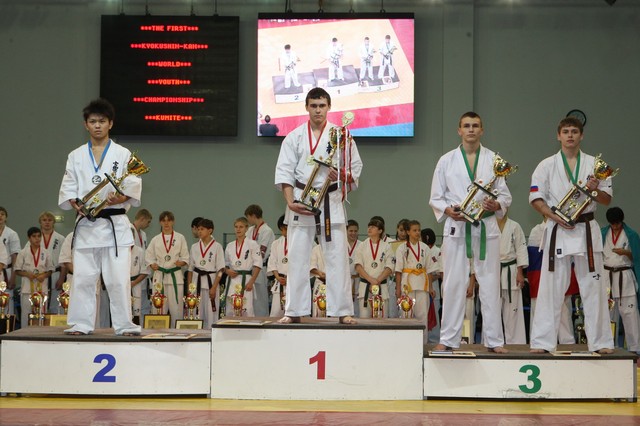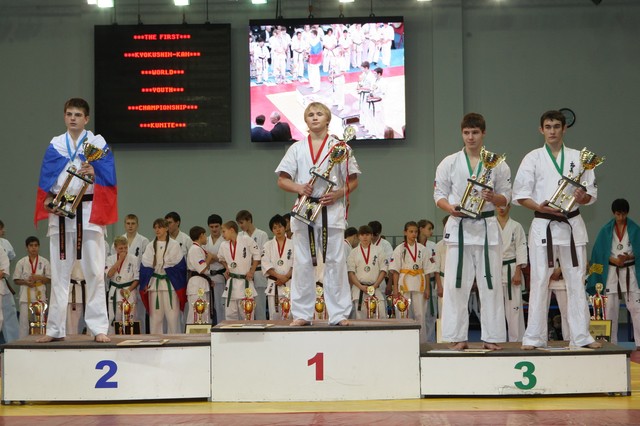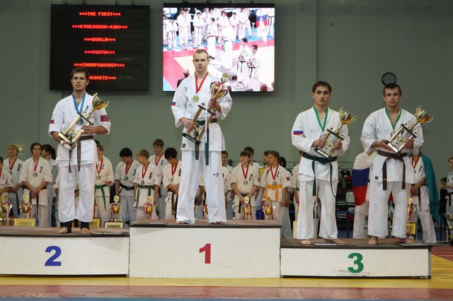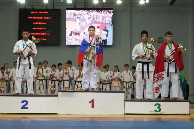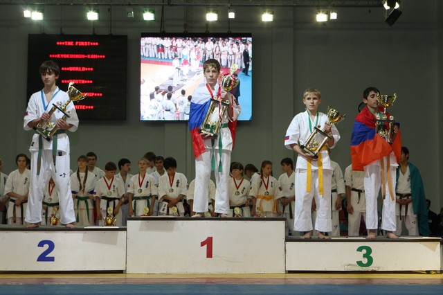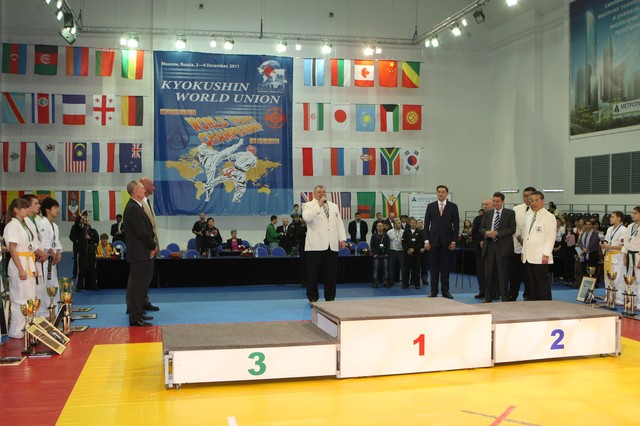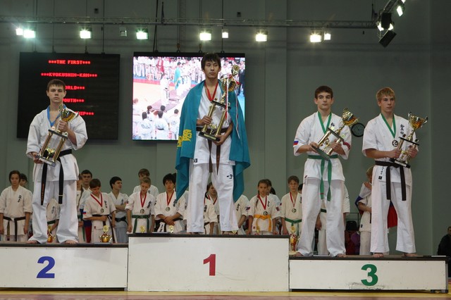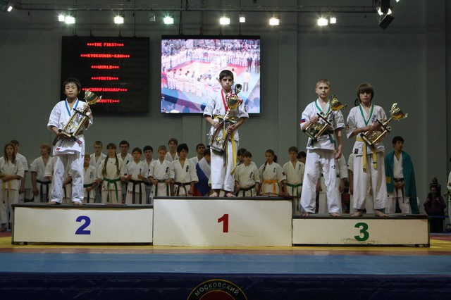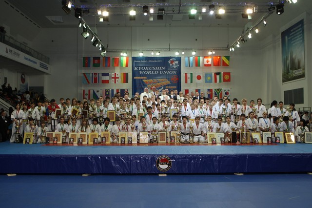 Главная › Фото › Призеры I Открытого первенства мира Кёкусин-кан под эгидой Всемирного Союза Киокусин. Москва, 3-4 декабря 2011 г. Фото О. Бессуднова