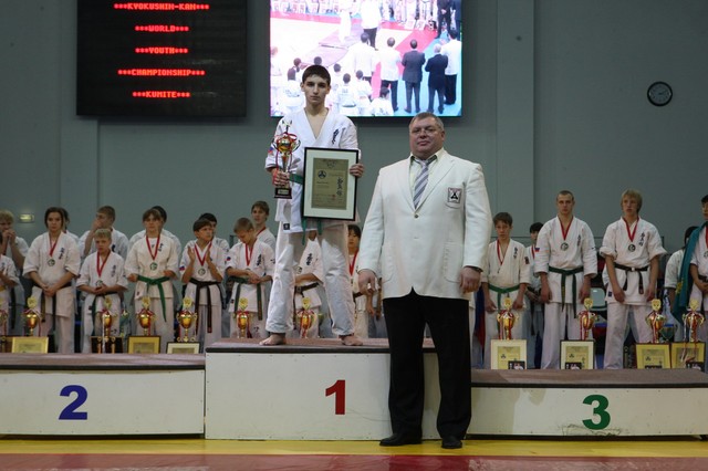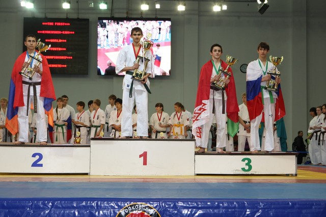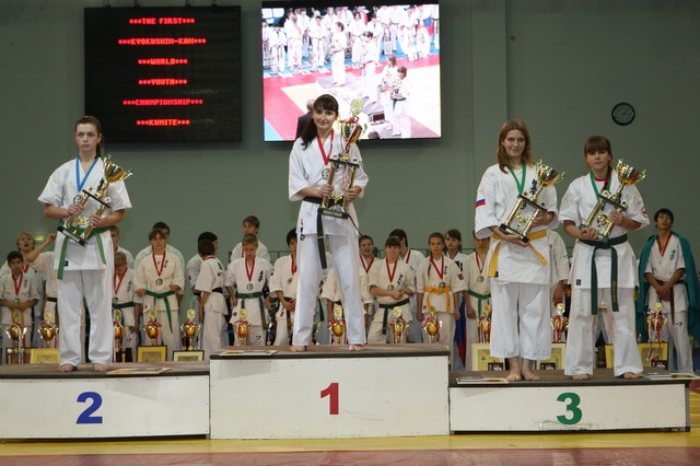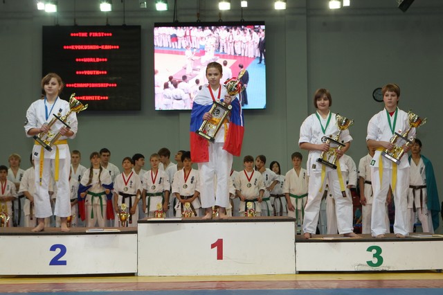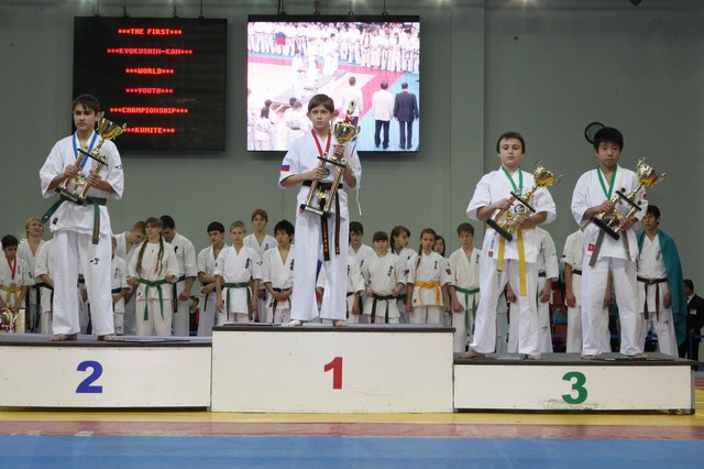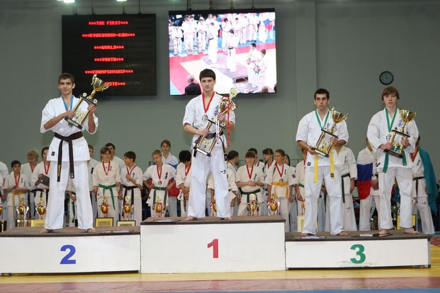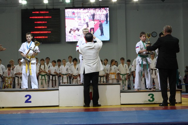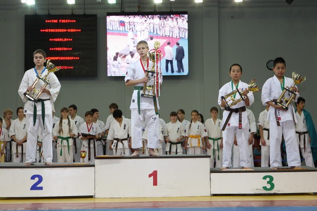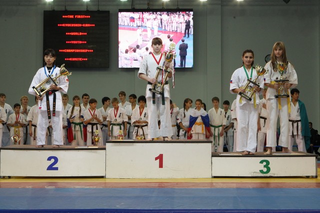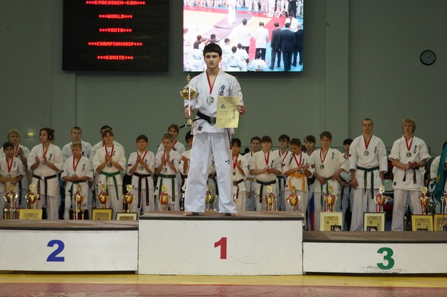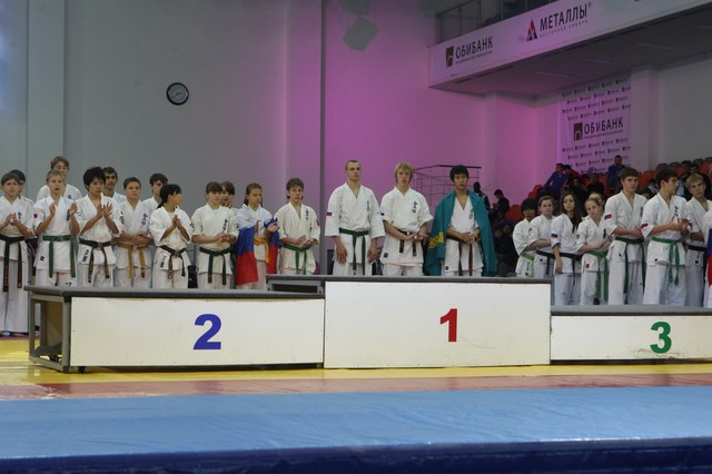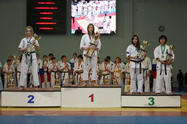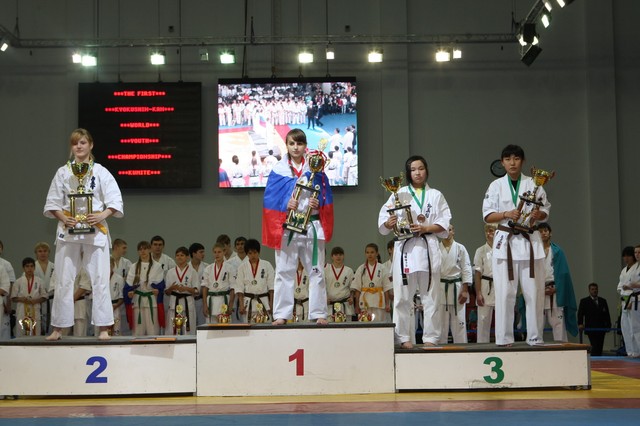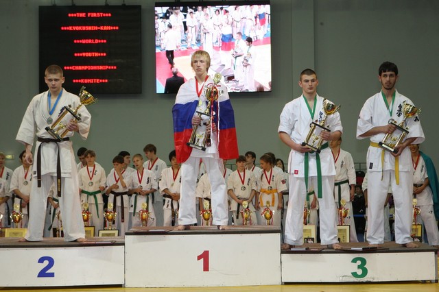 Главная › Фото › Призеры I Открытого первенства мира Кёкусин-кан под эгидой Всемирного Союза Киокусин. Москва, 3-4 декабря 2011 г. Фото О. Бессуднова