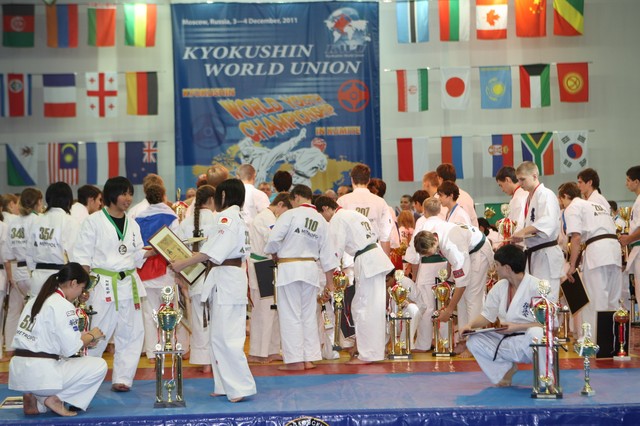 Призеры I Открытого первенства мира Кёкусин-кан под эгидой Всемирного Союза Киокусин. Москва, 3-4 декабря 2011 г. Фото О. Бессуднова