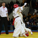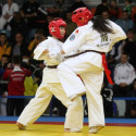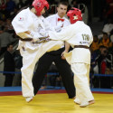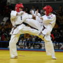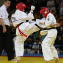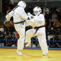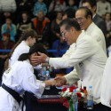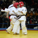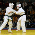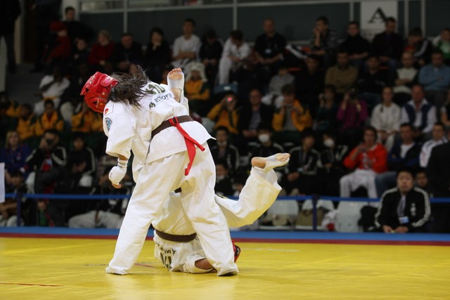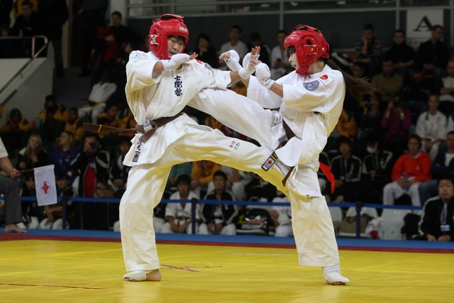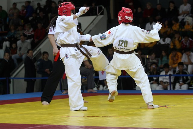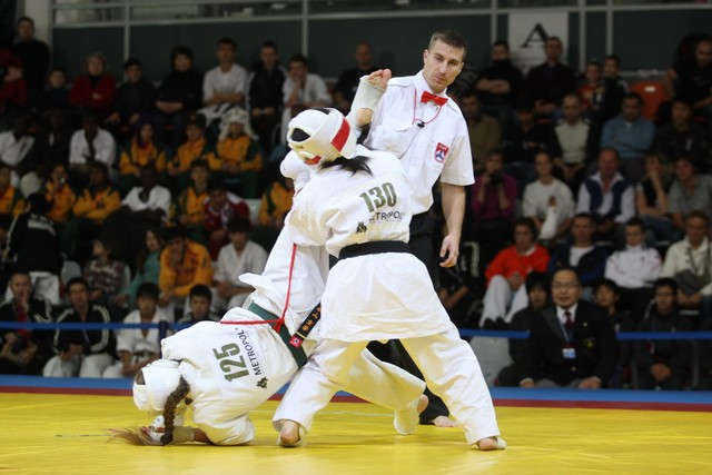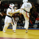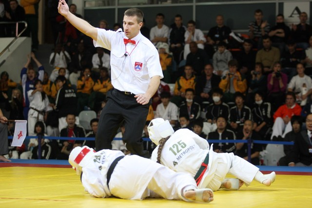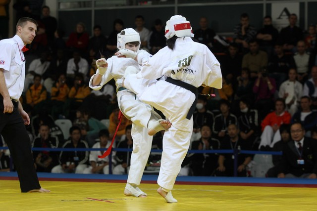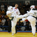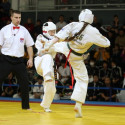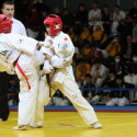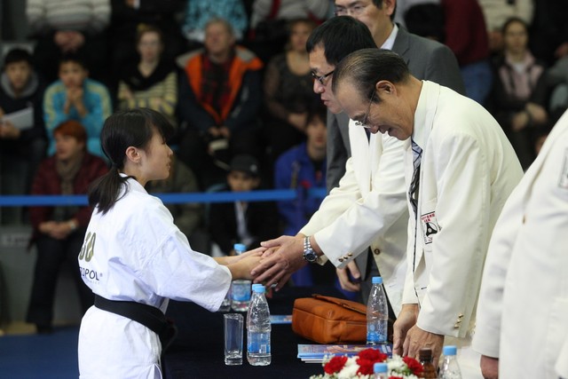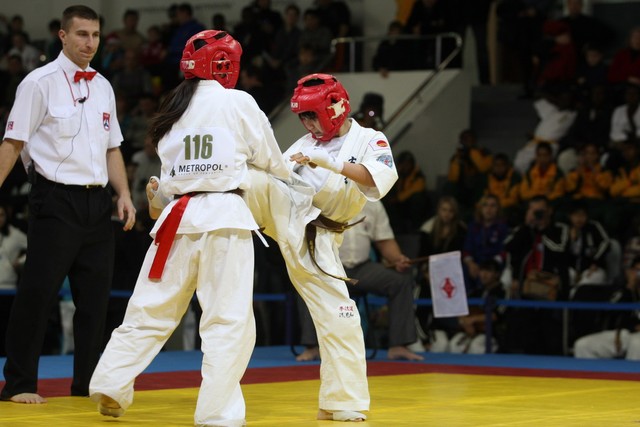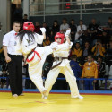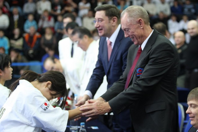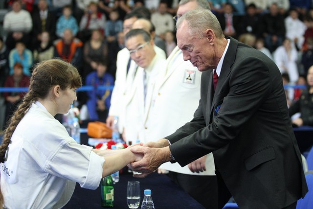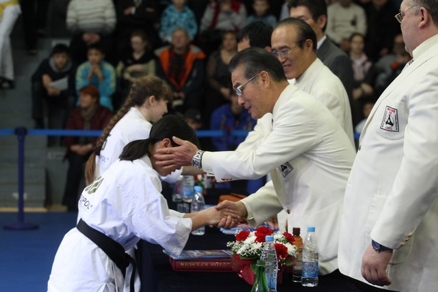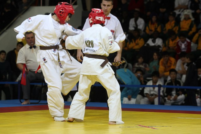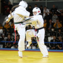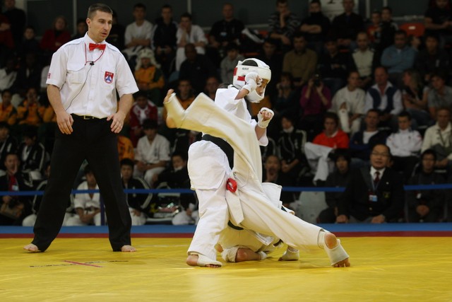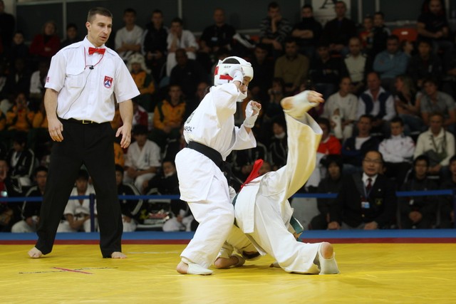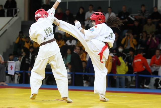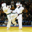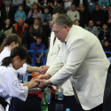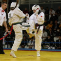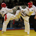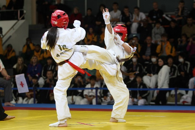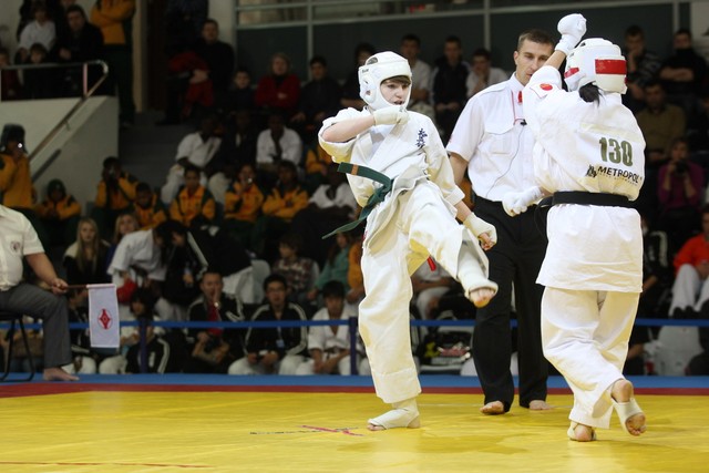 Финальные поединки в категориях «Девушки 12-13 лет, до 40 кг» (Абэ Юдзуми, Япония – Асами Нагоми, Япония) и «Девушки 12-13 лет, до 45 кг» (Есина Алёна, Россия, Кёкусин-кан, Астрахань – Нагаяма Кёка, Япония). Фото О. Бессуднова