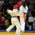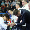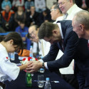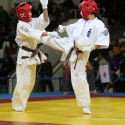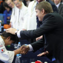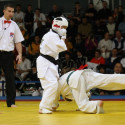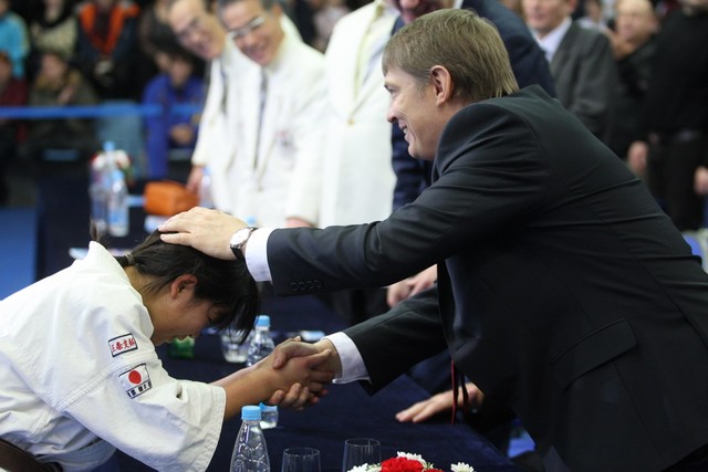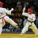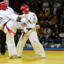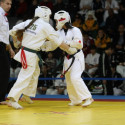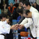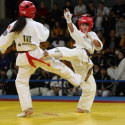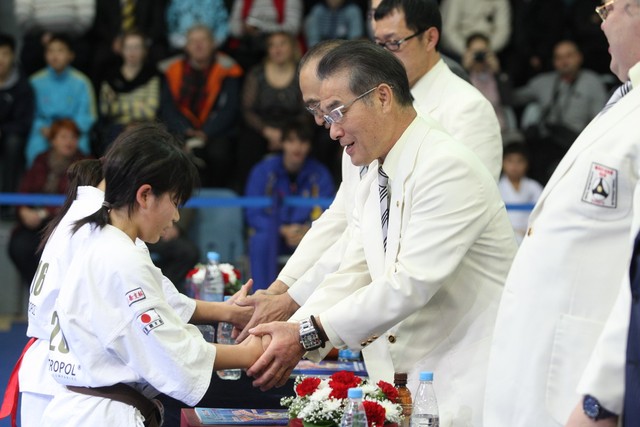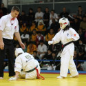 Главная › Фото › Финальные поединки в категориях «Девушки 12-13 лет, до 40 кг» (Абэ Юдзуми, Япония – Асами Нагоми, Япония) и «Девушки 12-13 лет, до 45 кг» (Есина Алёна, Россия, Кёкусин-кан, Астрахань – Нагаяма Кёка, Япония). Фото О. Бессуднова