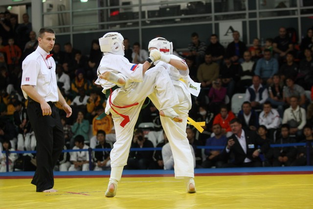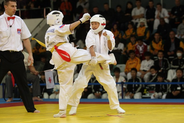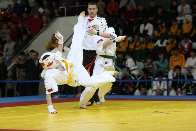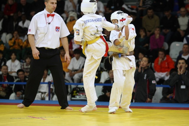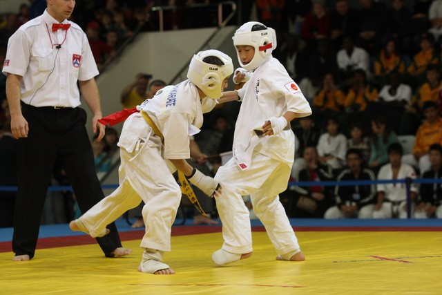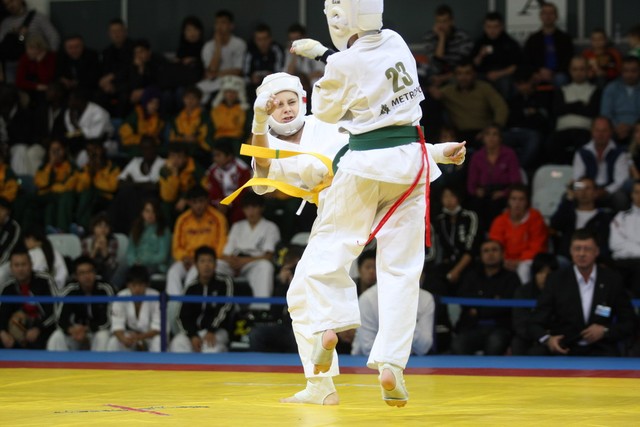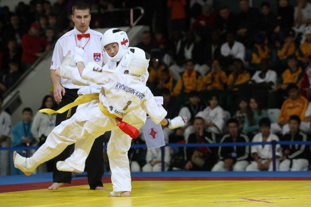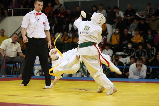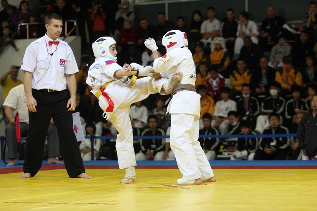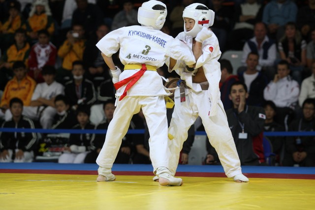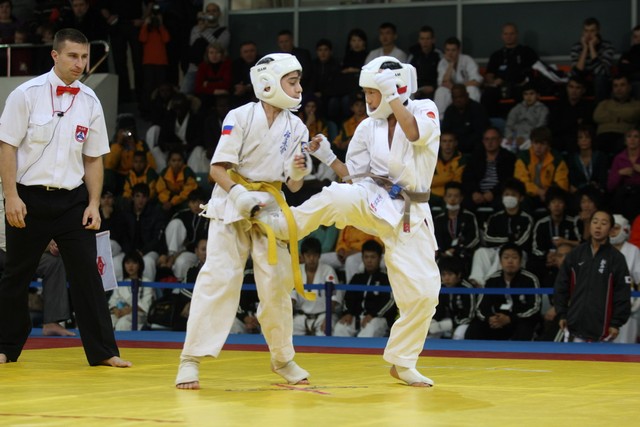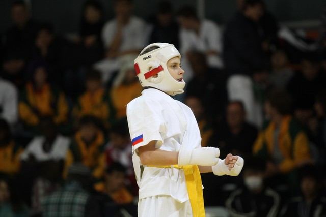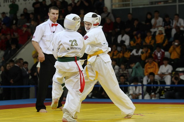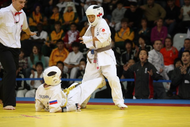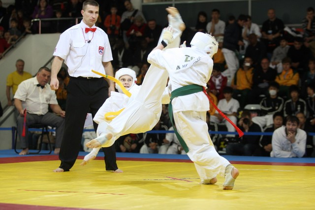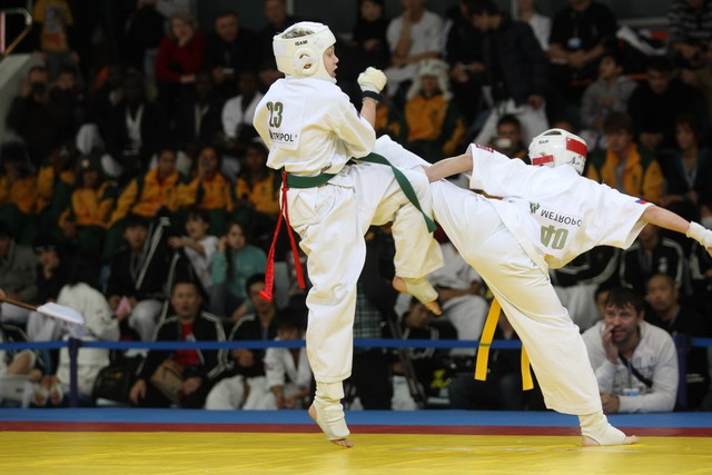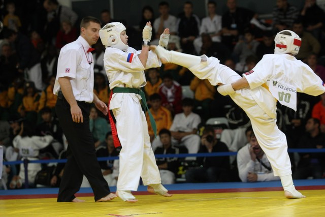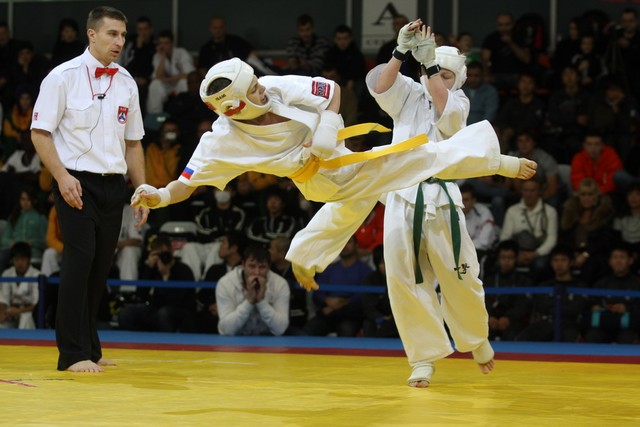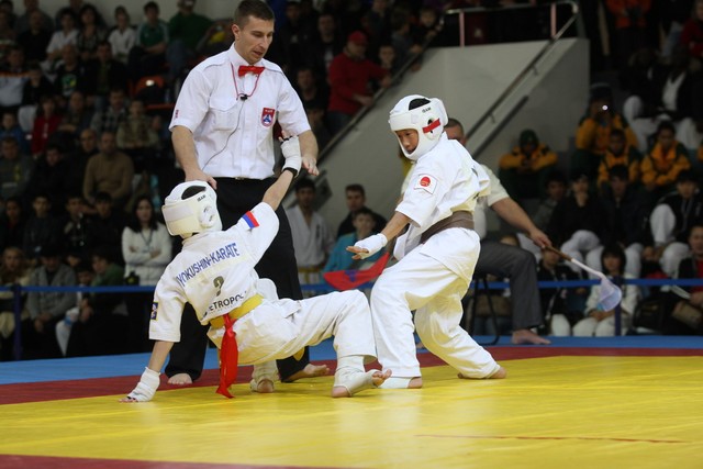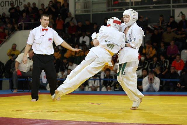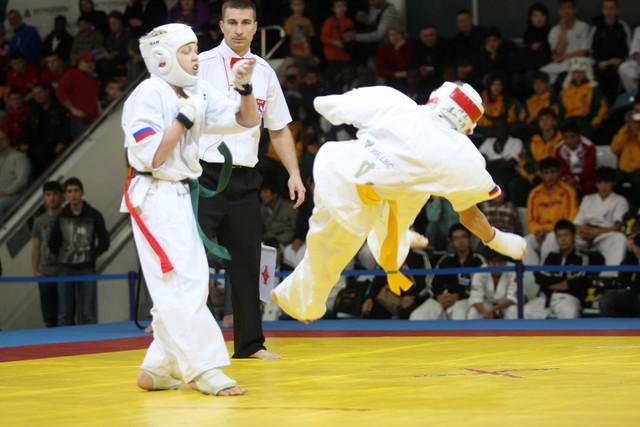 I Открытое первенство мира по Кёкусин-кан. Финальные поединки в категориях «Юноши 12-13 лет, до 35 кг» (Оганесян Ален, Россия, Кёкусин-кан, Волгоград – Садано Коскэ, Япония) и « Юноши 12-13 лет, до 40 кг» (Белышев Даниил, Россия, Кёкусин-кан, Московская область – Васюков Дмитрий, Россия, Кёкусин-кан, Краснодарский край). Фото О. Бессуднова