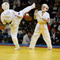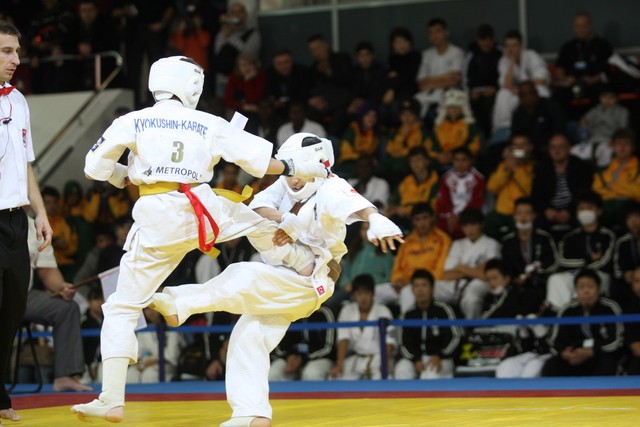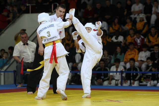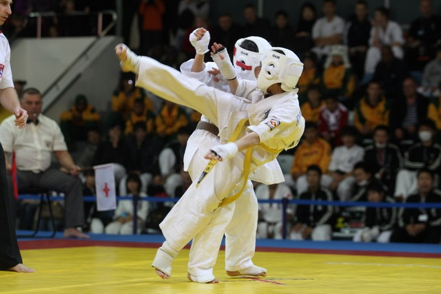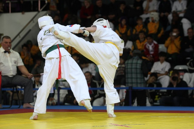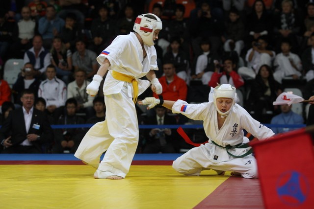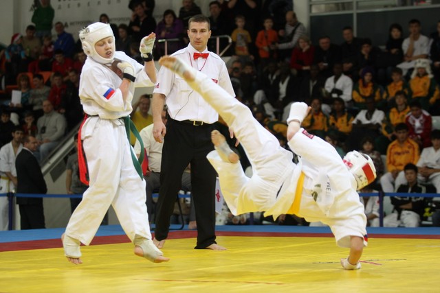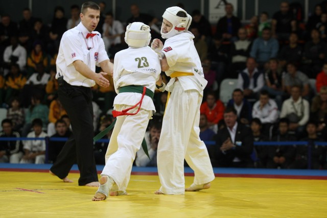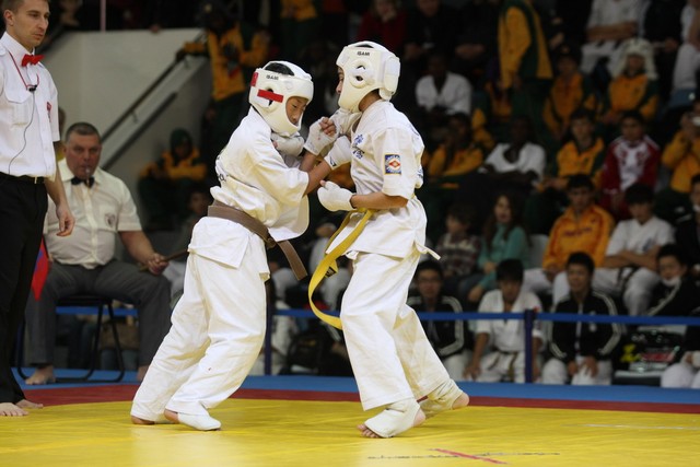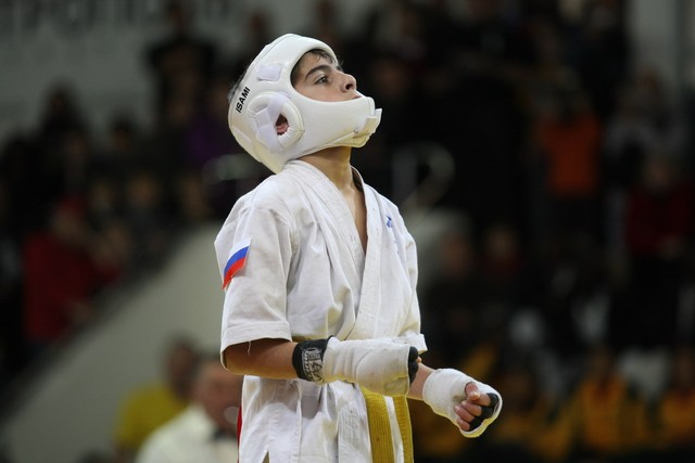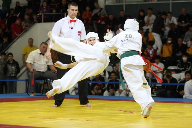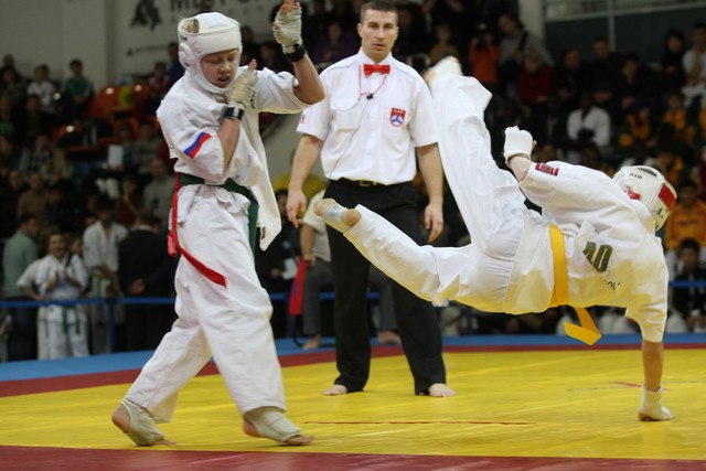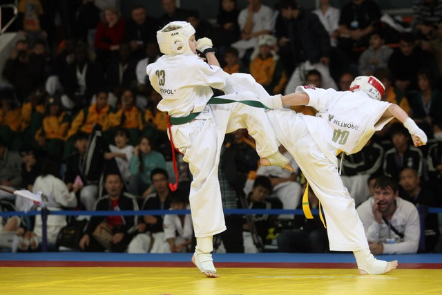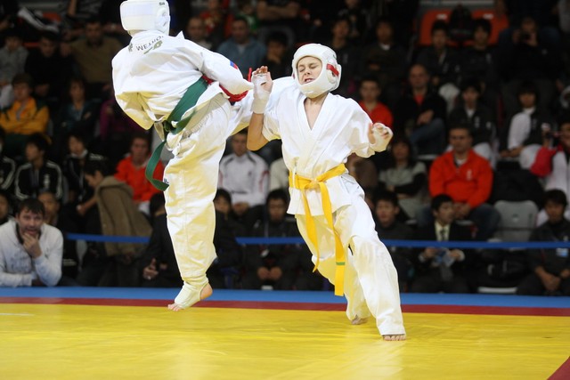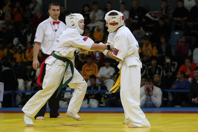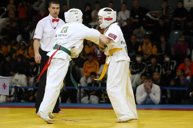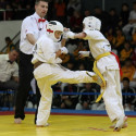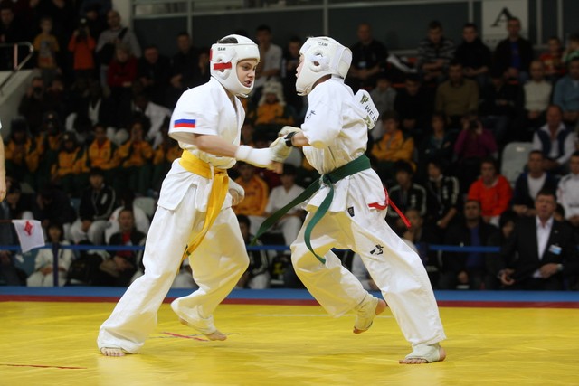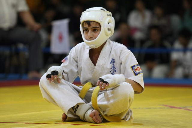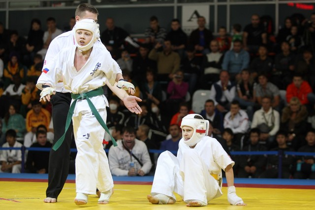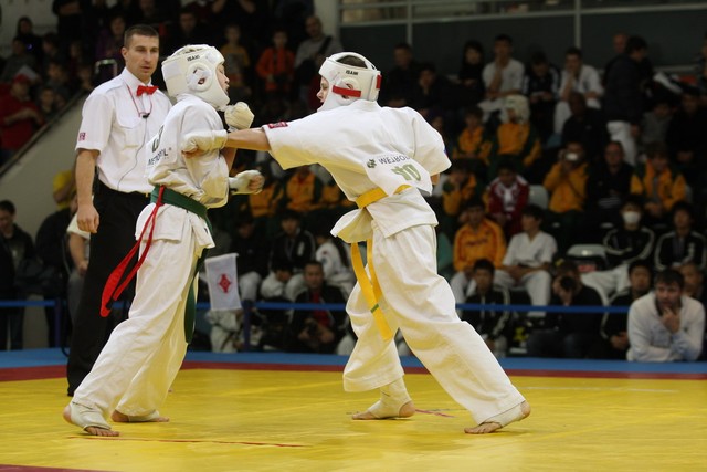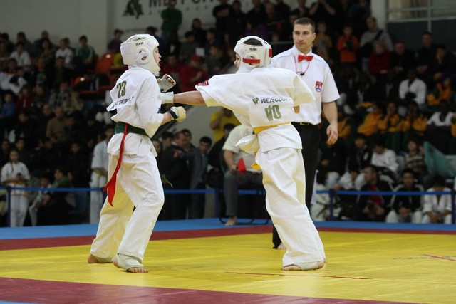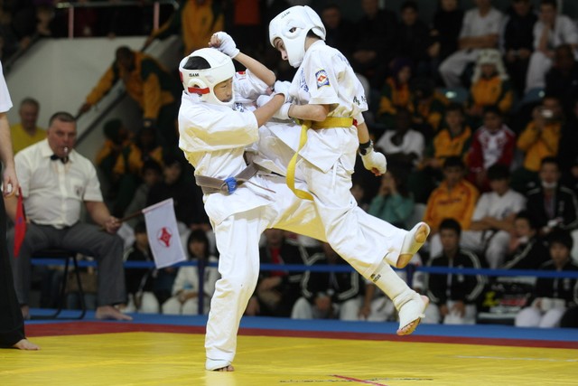I Открытое первенство мира по Кёкусин-кан. Финальные поединки в категориях «Юноши 12-13 лет, до 35 кг» (Оганесян Ален, Россия, Кёкусин-кан, Волгоград – Садано Коскэ, Япония) и « Юноши 12-13 лет, до 40 кг» (Белышев Даниил, Россия, Кёкусин-кан, Московская область – Васюков Дмитрий, Россия, Кёкусин-кан, Краснодарский край). Фото О. Бессуднова