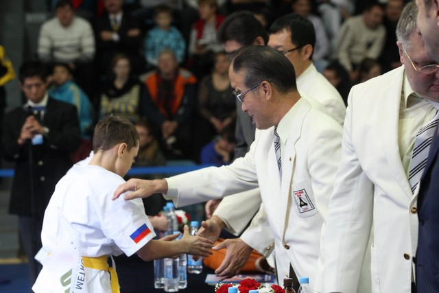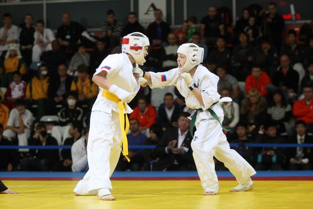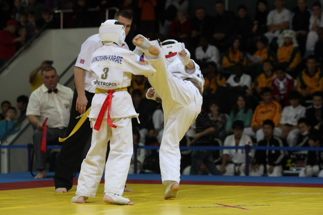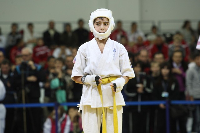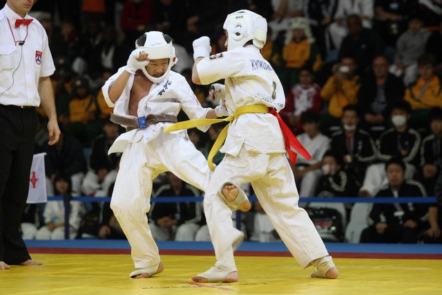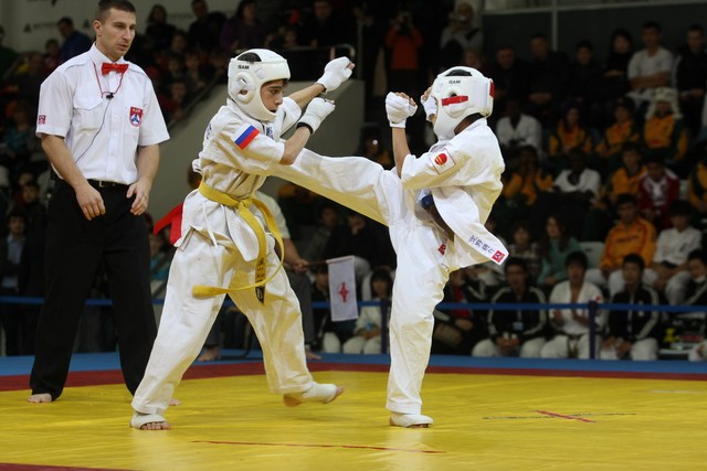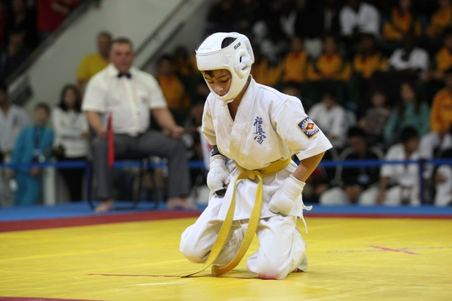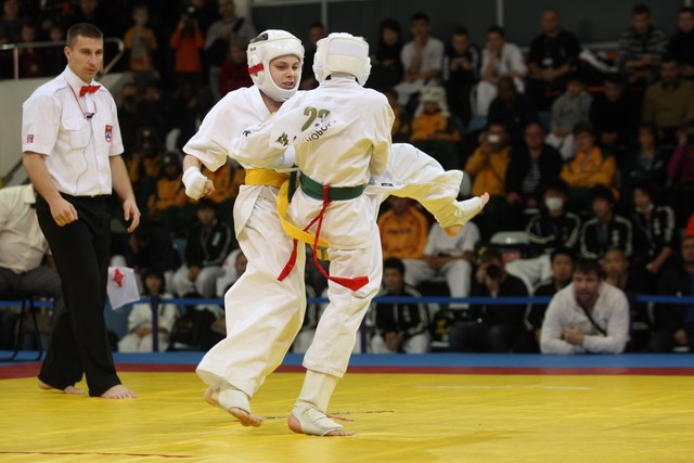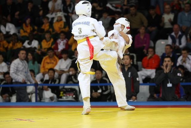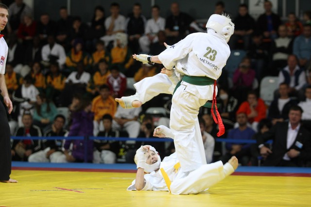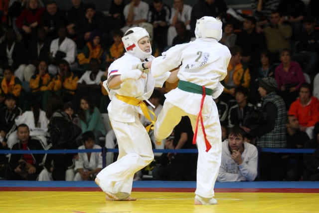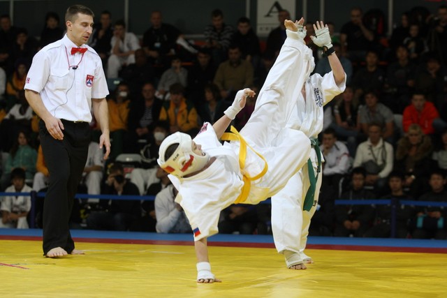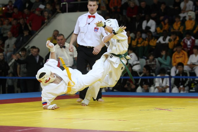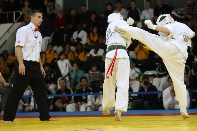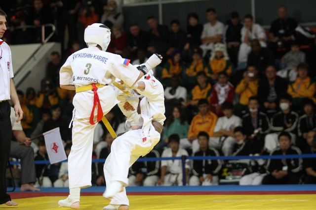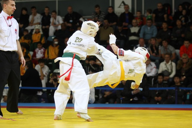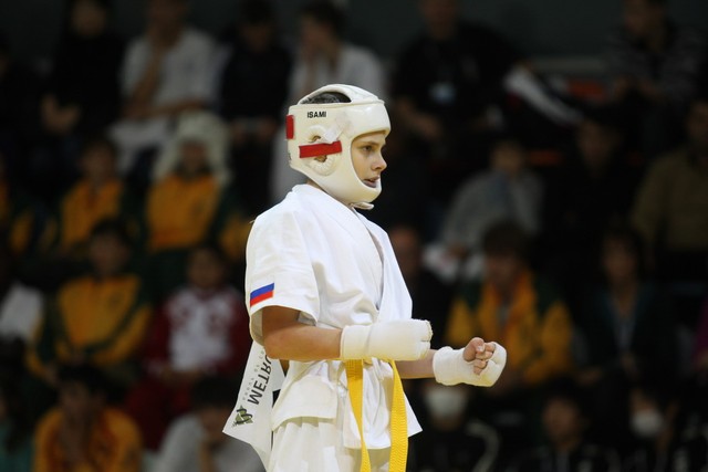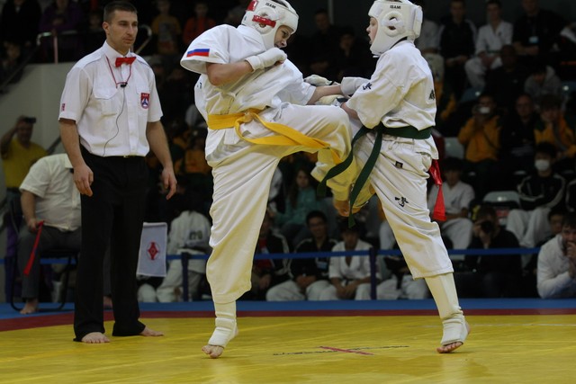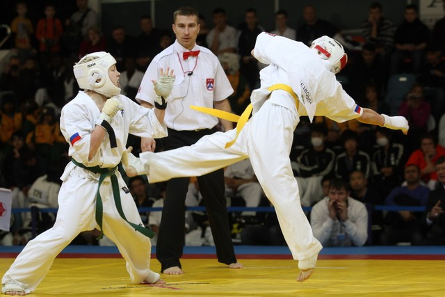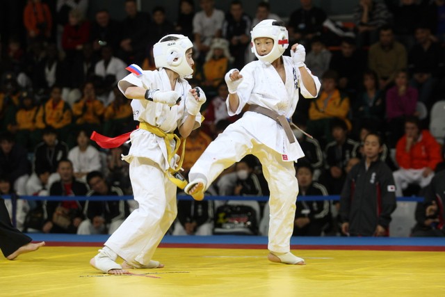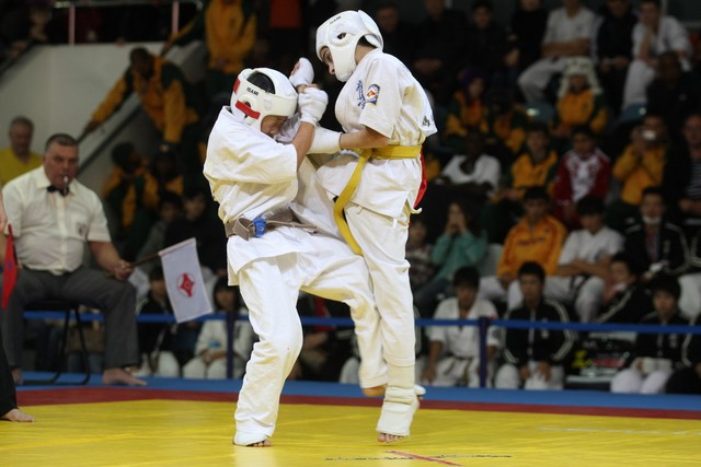 I Открытое первенство мира по Кёкусин-кан. Финальные поединки в категориях «Юноши 12-13 лет, до 35 кг» (Оганесян Ален, Россия, Кёкусин-кан, Волгоград – Садано Коскэ, Япония) и « Юноши 12-13 лет, до 40 кг» (Белышев Даниил, Россия, Кёкусин-кан, Московская область – Васюков Дмитрий, Россия, Кёкусин-кан, Краснодарский край). Фото О. Бессуднова