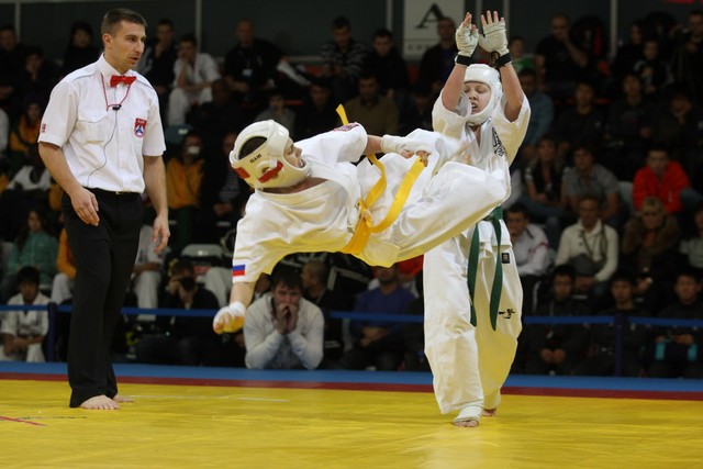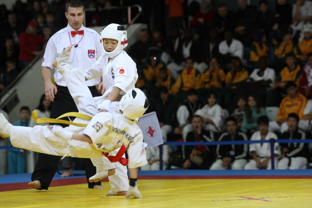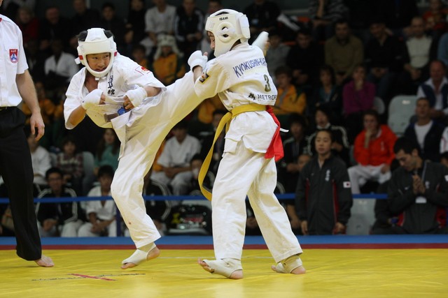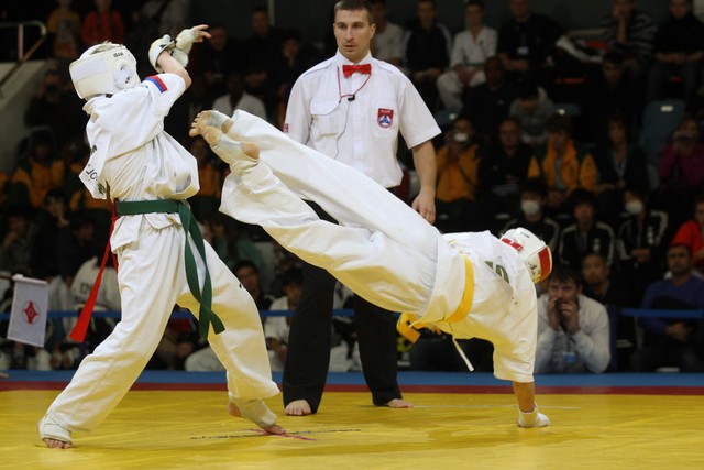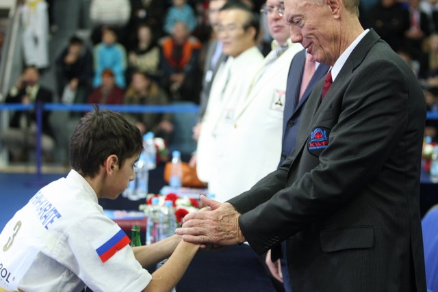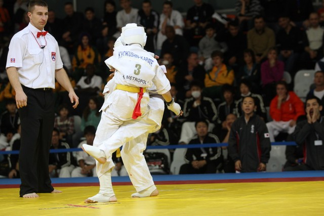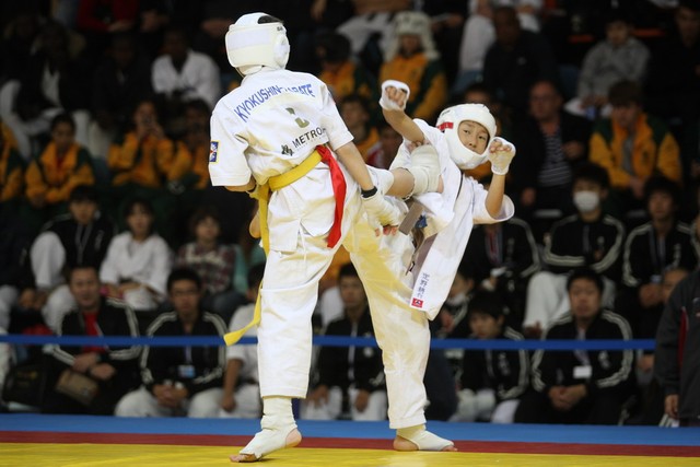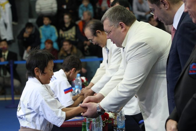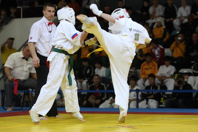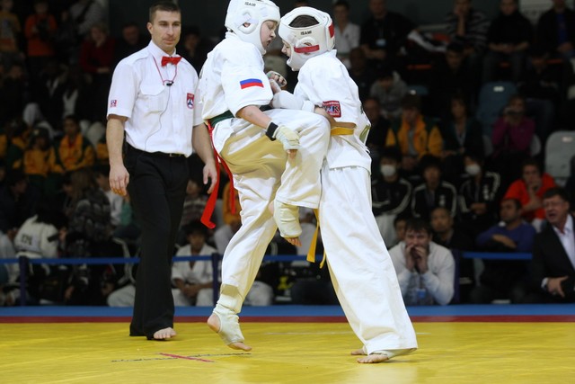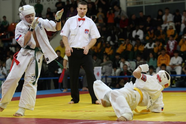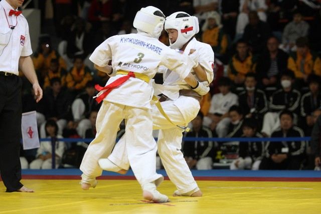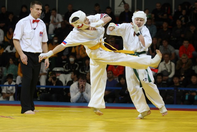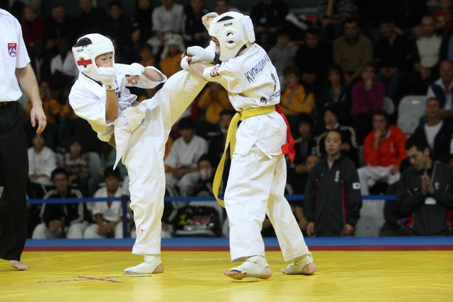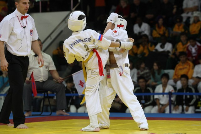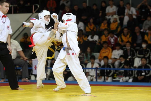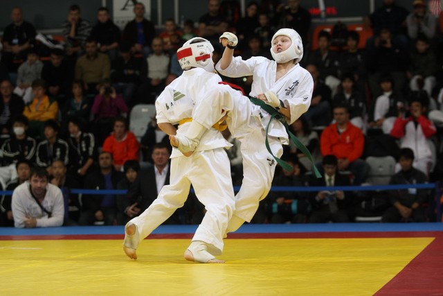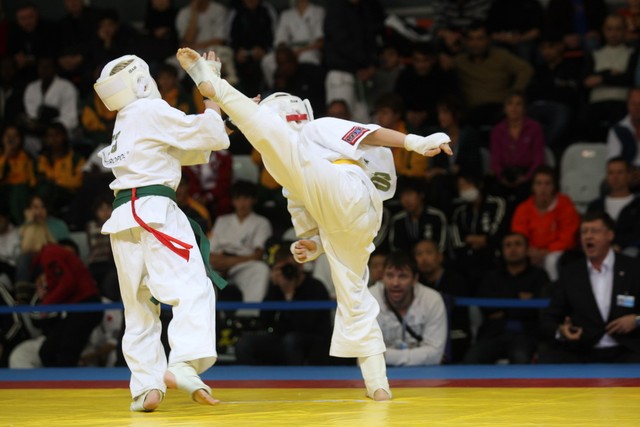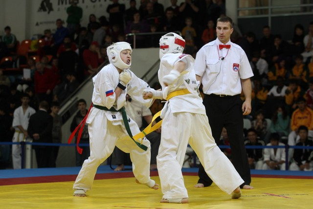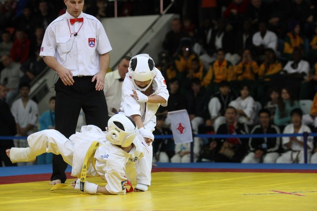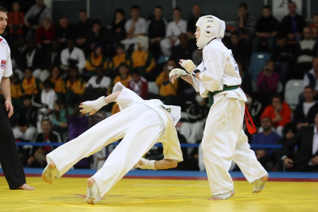 I Открытое первенство мира по Кёкусин-кан. Финальные поединки в категориях «Юноши 12-13 лет, до 35 кг» (Оганесян Ален, Россия, Кёкусин-кан, Волгоград – Садано Коскэ, Япония) и « Юноши 12-13 лет, до 40 кг» (Белышев Даниил, Россия, Кёкусин-кан, Московская область – Васюков Дмитрий, Россия, Кёкусин-кан, Краснодарский край). Фото О. Бессуднова