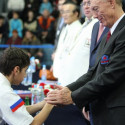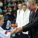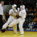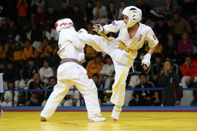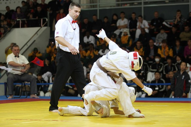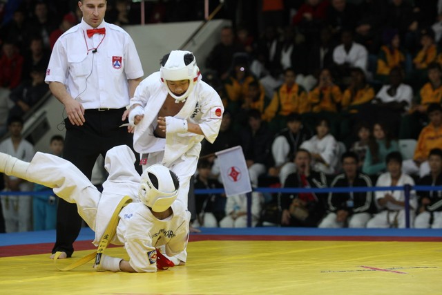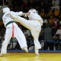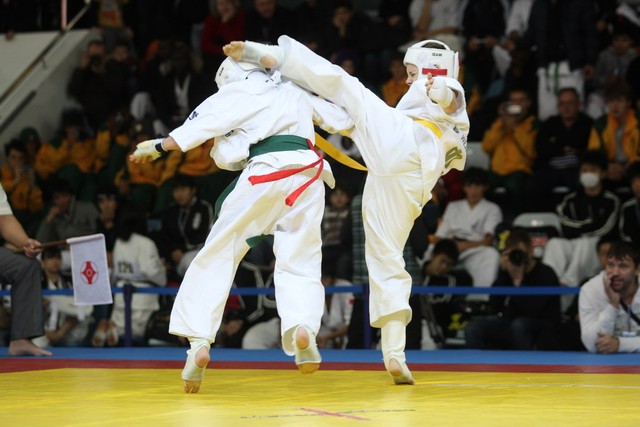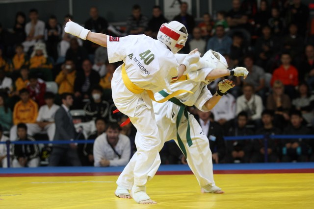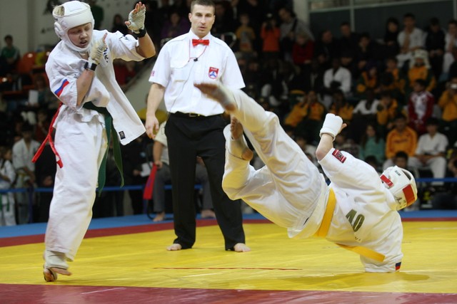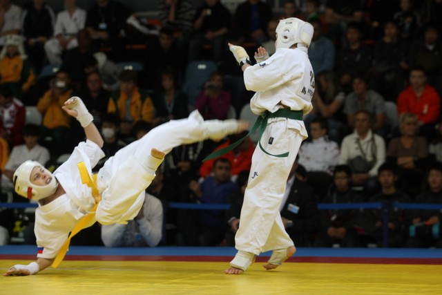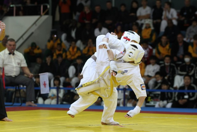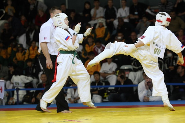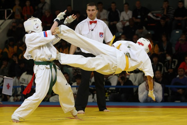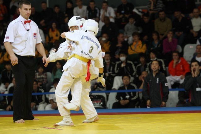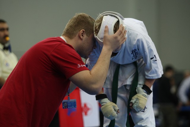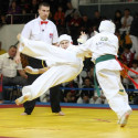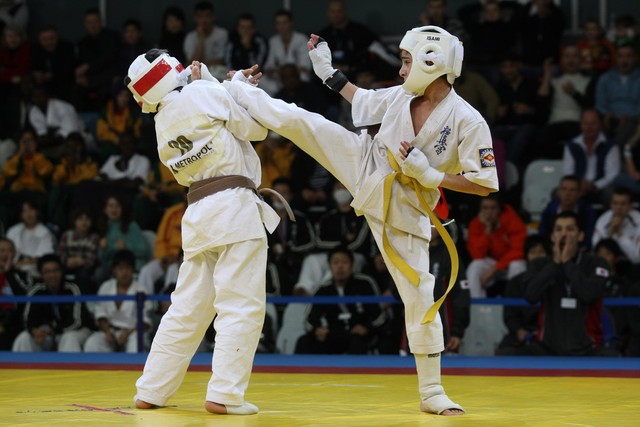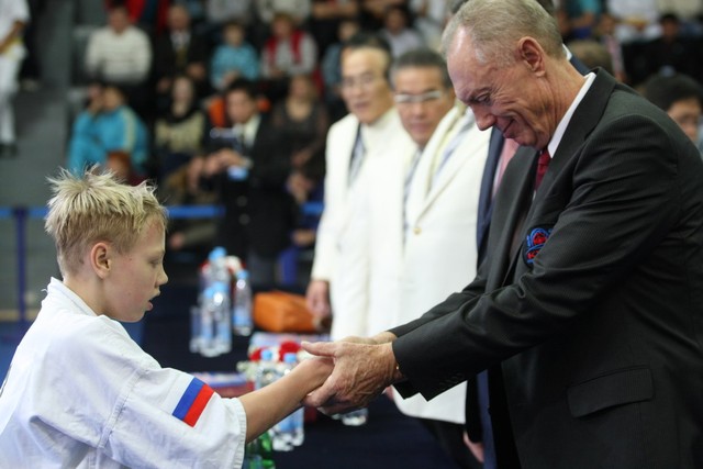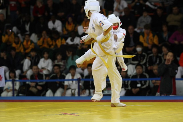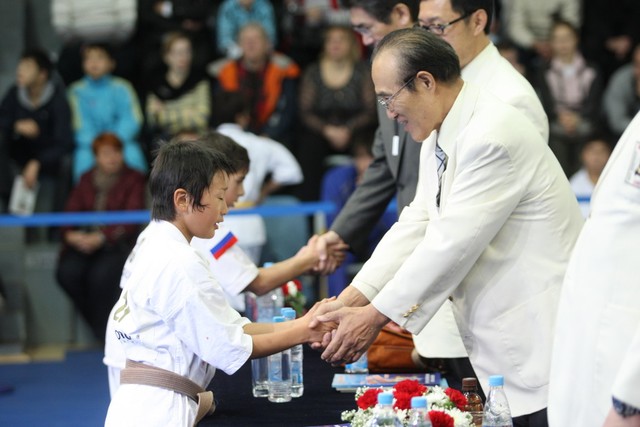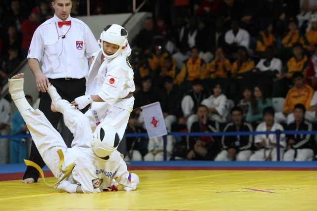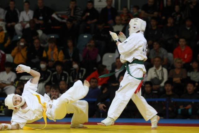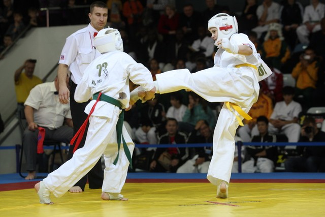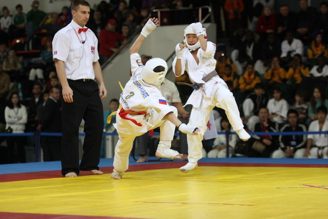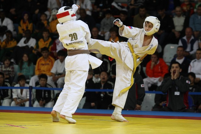 I Открытое первенство мира по Кёкусин-кан. Финальные поединки в категориях «Юноши 12-13 лет, до 35 кг» (Оганесян Ален, Россия, Кёкусин-кан, Волгоград – Садано Коскэ, Япония) и « Юноши 12-13 лет, до 40 кг» (Белышев Даниил, Россия, Кёкусин-кан, Московская область – Васюков Дмитрий, Россия, Кёкусин-кан, Краснодарский край). Фото О. Бессуднова