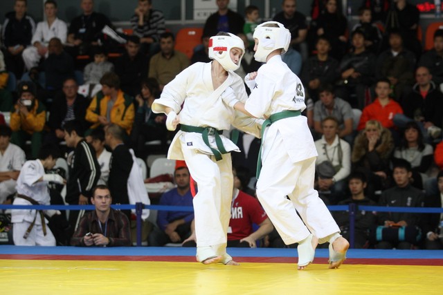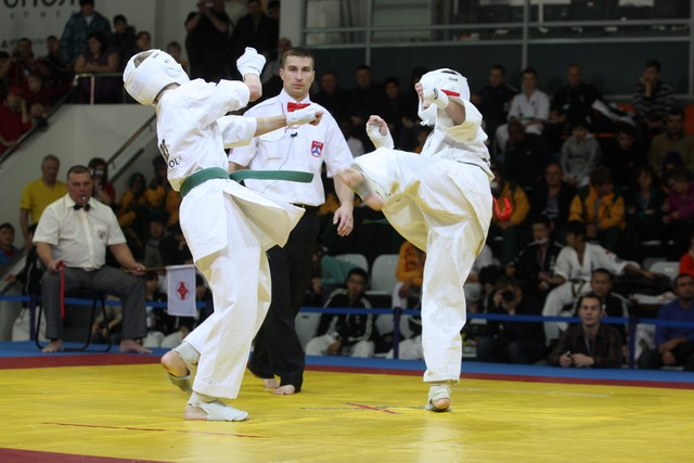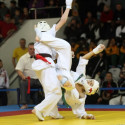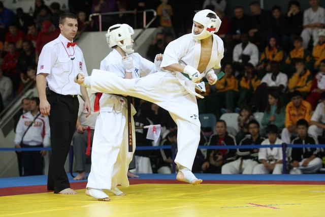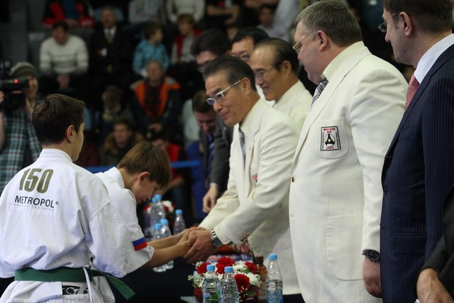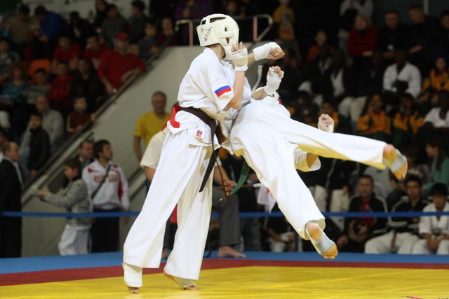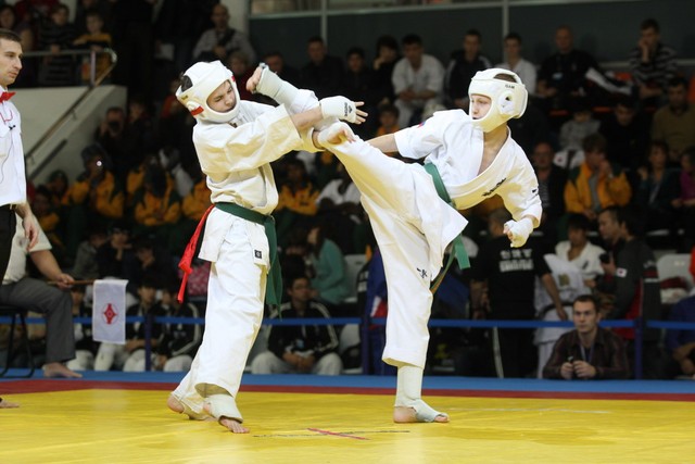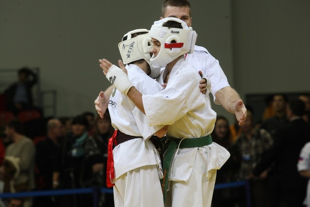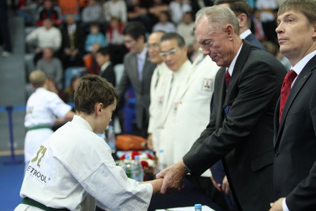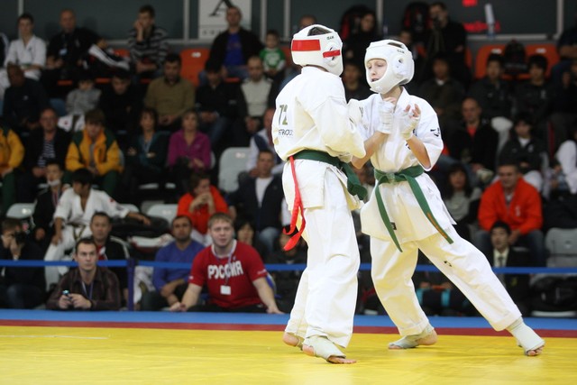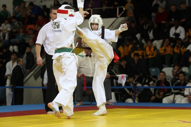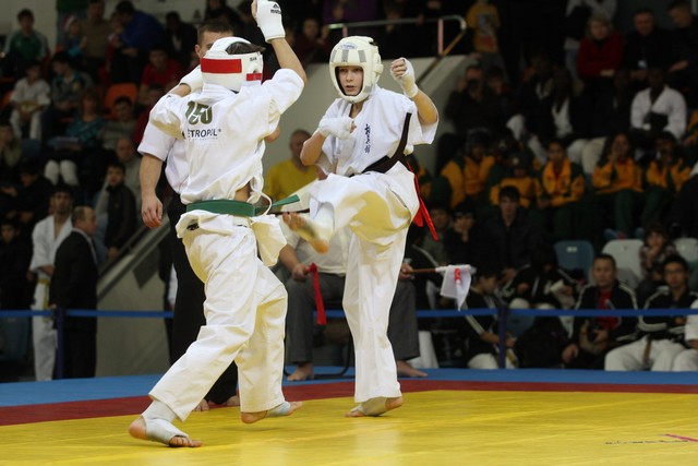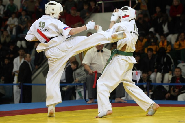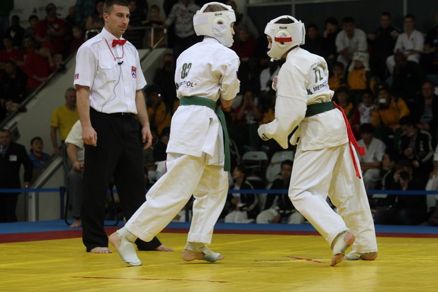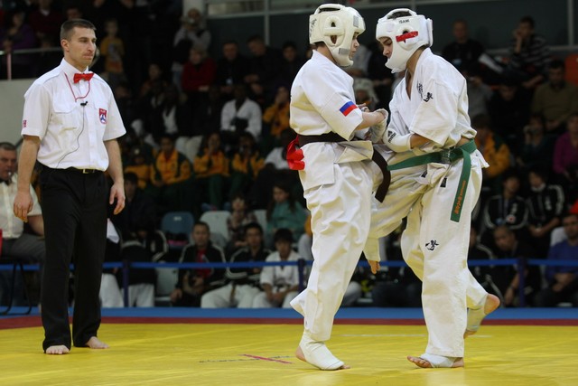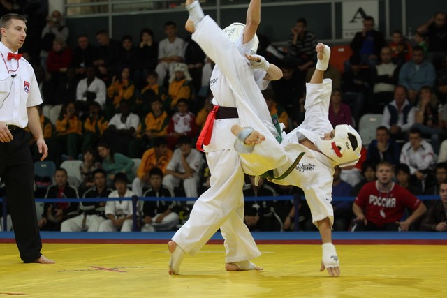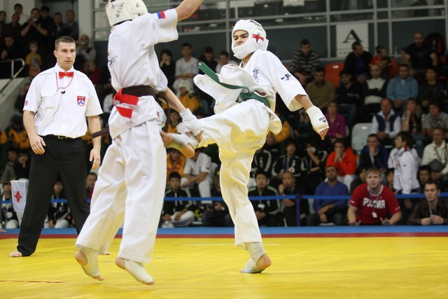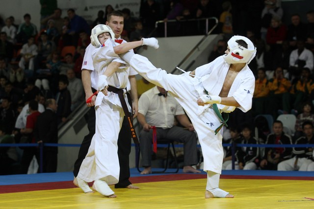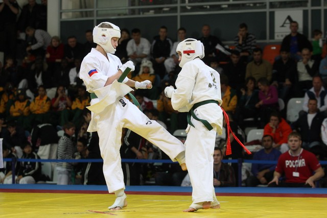 I Открытое первенство мира по Кёкусин-кан. Финальные поединки в категориях «Юноши 12-13 лет, до 45 кг» (Вихтинский Дмитрий, Россия, Кёкусин-кан, Краснодарский край – Ештокин Никита, Россия, Кёкусин-кан, Московская область) и «Юноши 12-13 лет, до 50 кг» (Валиков Андрей, Россия, Кёкусин-кан, Московская область – Зайцев Евгений, Россия, АКР). Фото О. Бессуднова