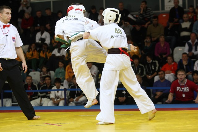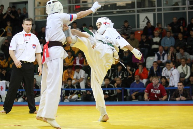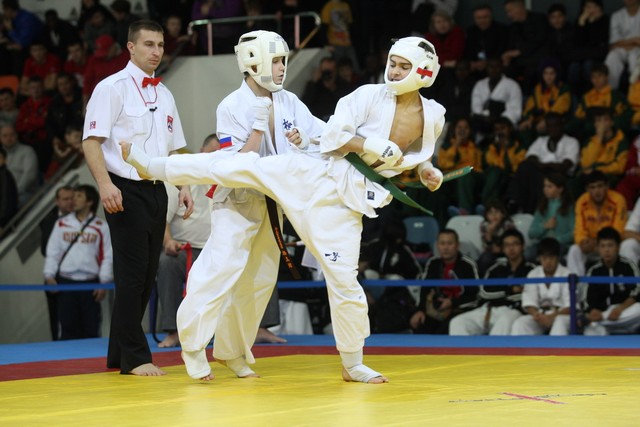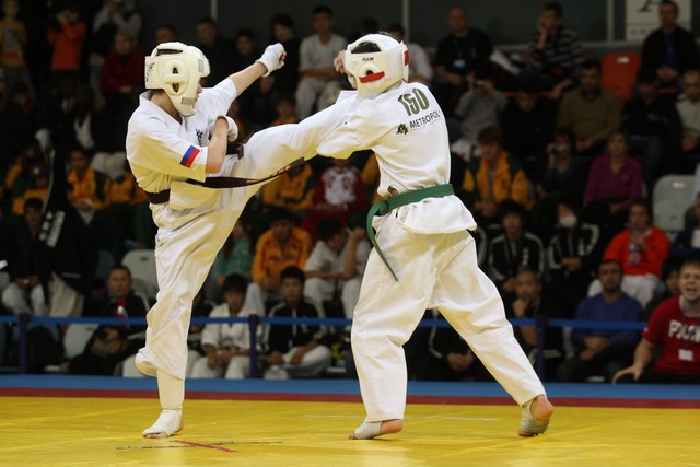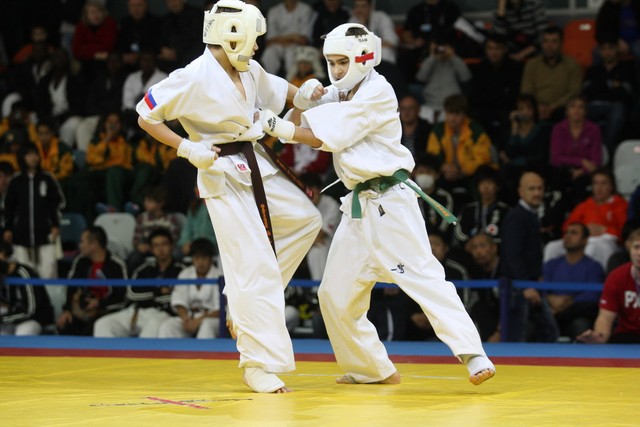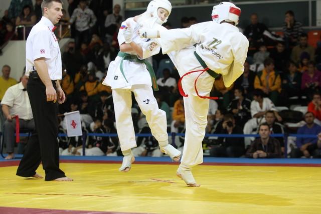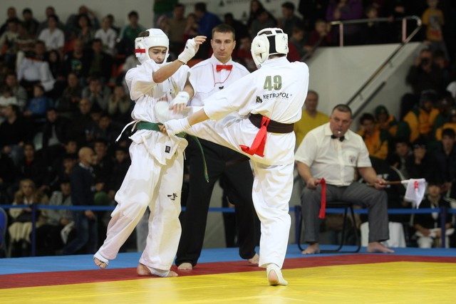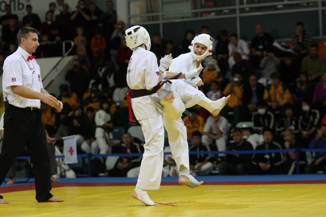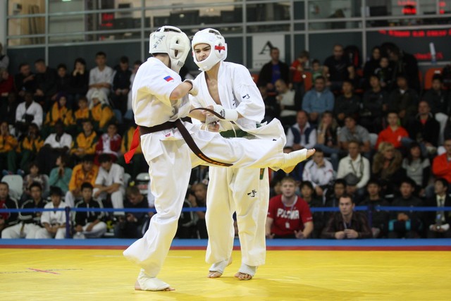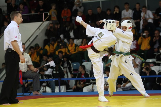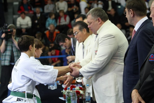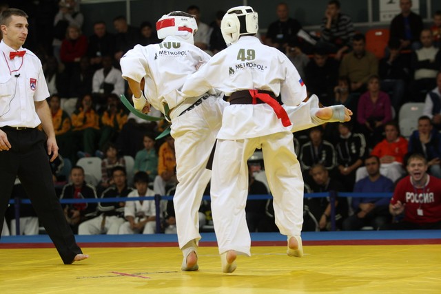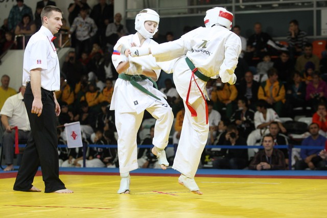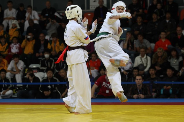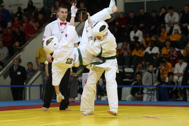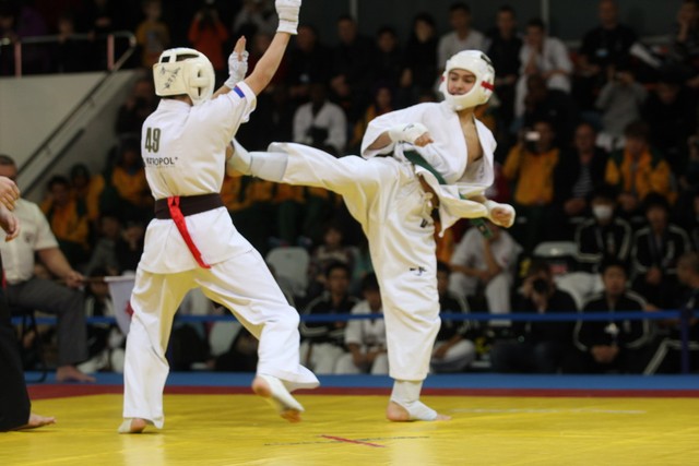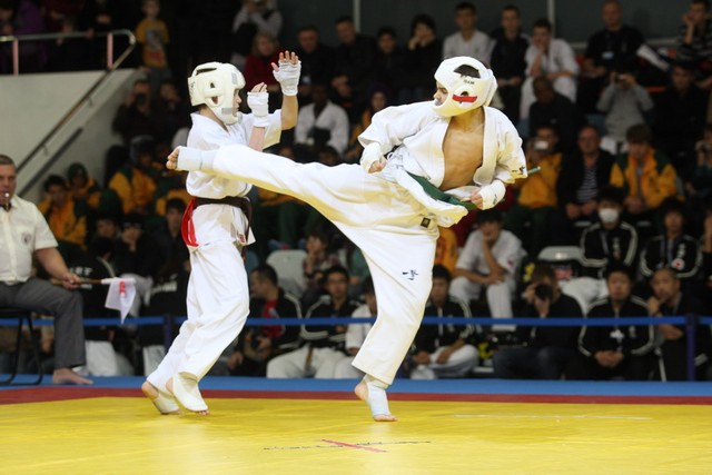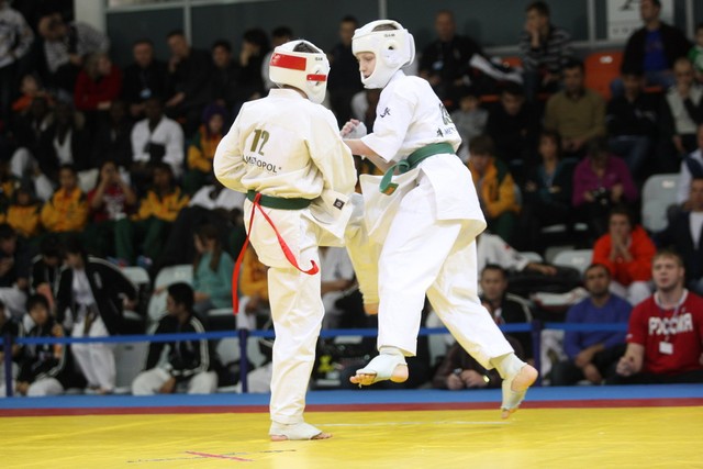 I Открытое первенство мира по Кёкусин-кан. Финальные поединки в категориях «Юноши 12-13 лет, до 45 кг» (Вихтинский Дмитрий, Россия, Кёкусин-кан, Краснодарский край – Ештокин Никита, Россия, Кёкусин-кан, Московская область) и «Юноши 12-13 лет, до 50 кг» (Валиков Андрей, Россия, Кёкусин-кан, Московская область – Зайцев Евгений, Россия, АКР). Фото О. Бессуднова