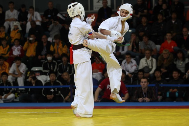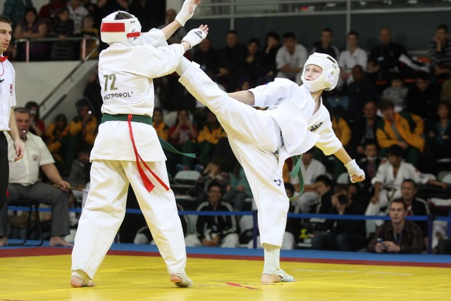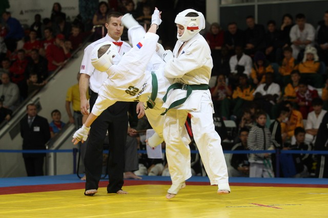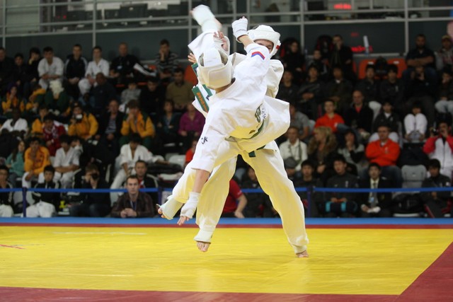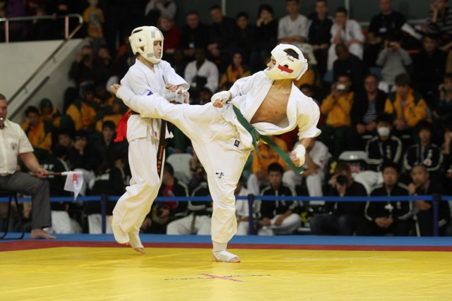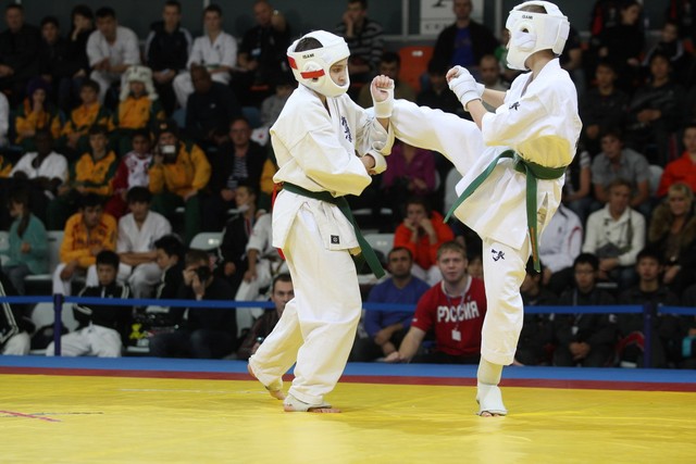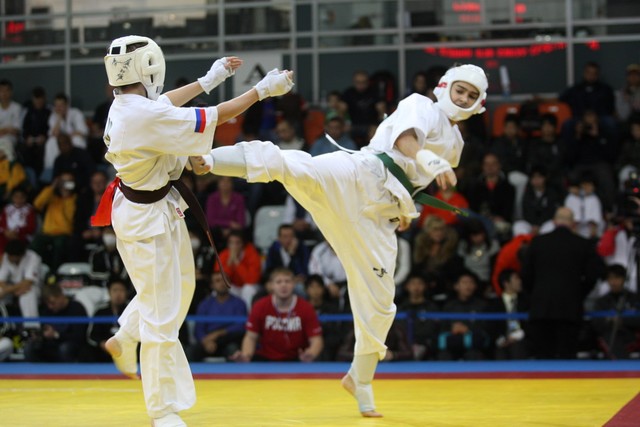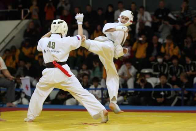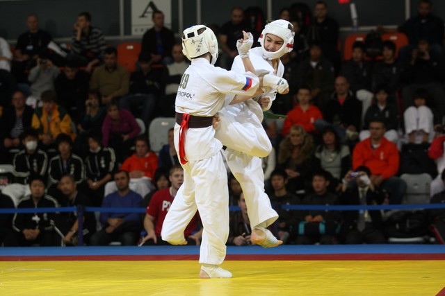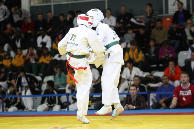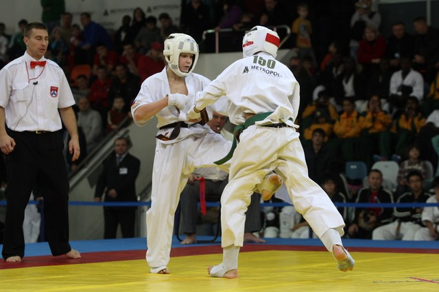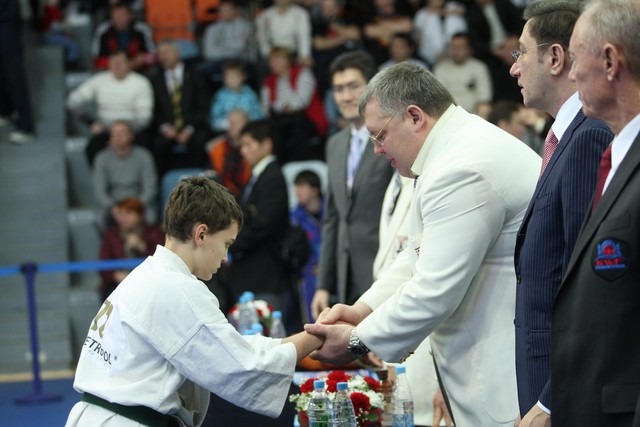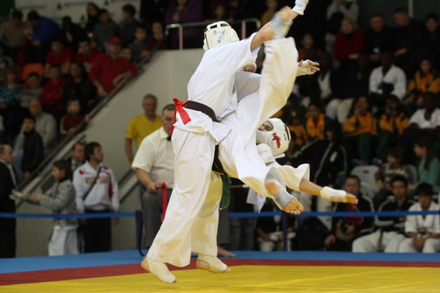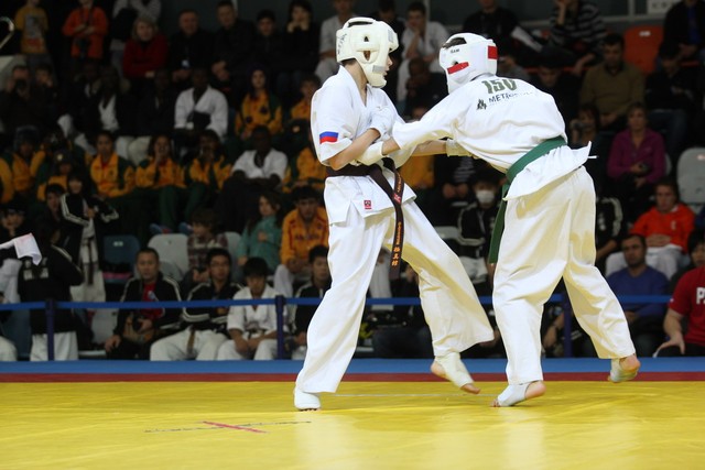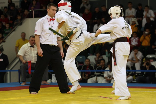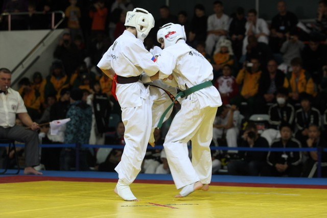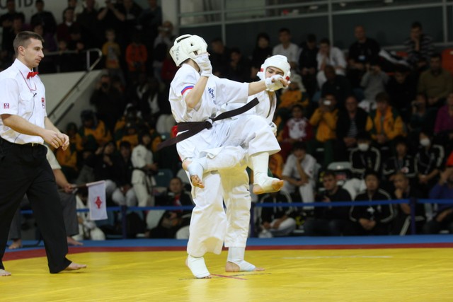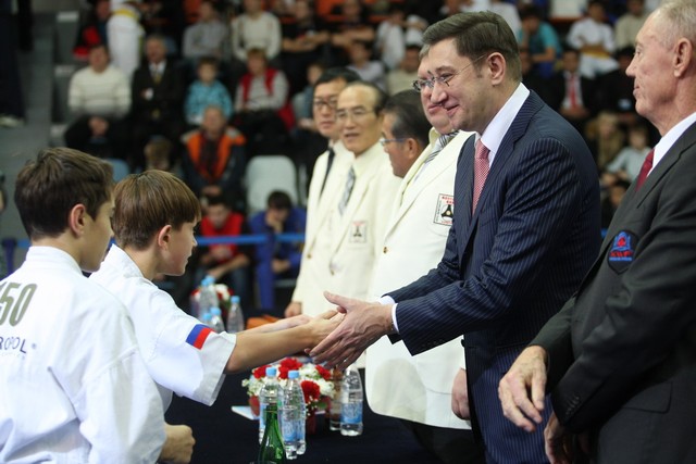 I Открытое первенство мира по Кёкусин-кан. Финальные поединки в категориях «Юноши 12-13 лет, до 45 кг» (Вихтинский Дмитрий, Россия, Кёкусин-кан, Краснодарский край – Ештокин Никита, Россия, Кёкусин-кан, Московская область) и «Юноши 12-13 лет, до 50 кг» (Валиков Андрей, Россия, Кёкусин-кан, Московская область – Зайцев Евгений, Россия, АКР). Фото О. Бессуднова