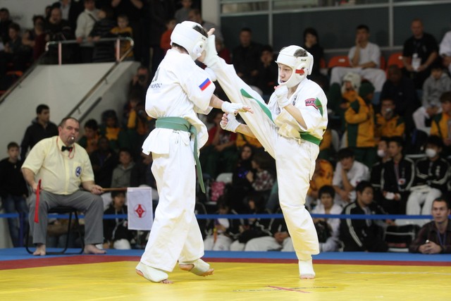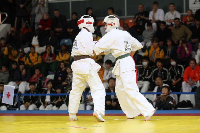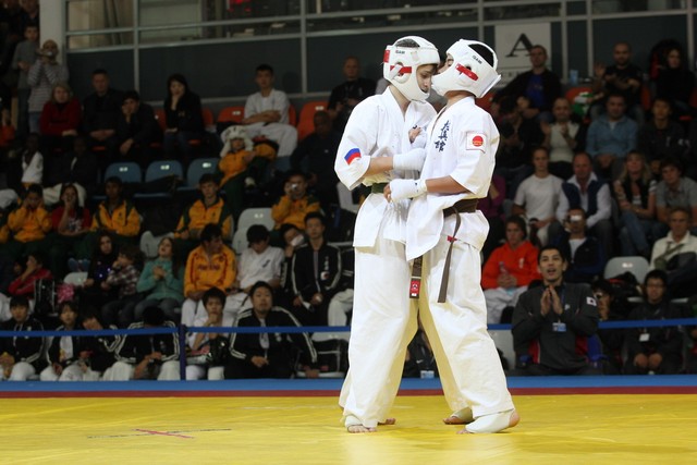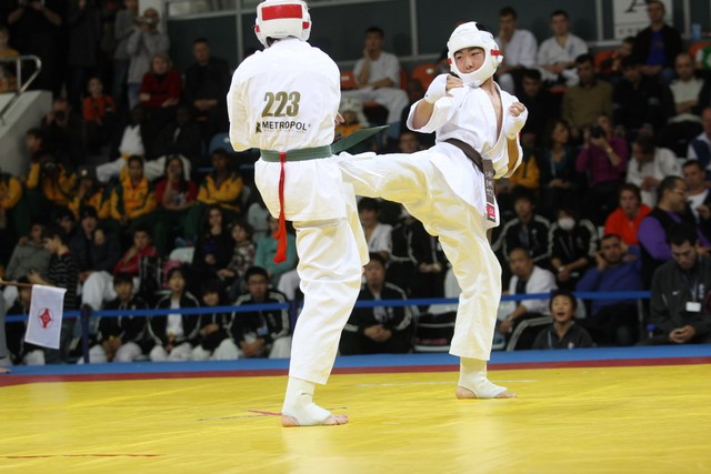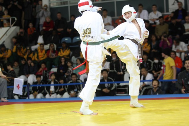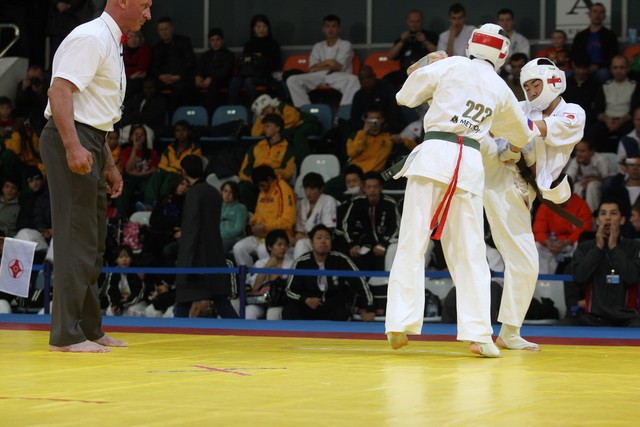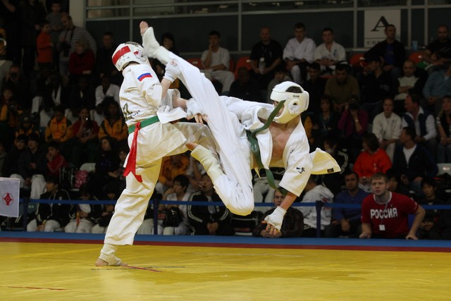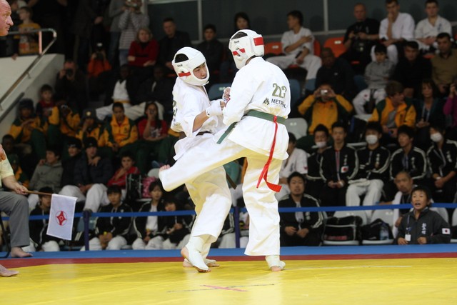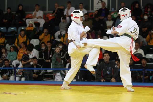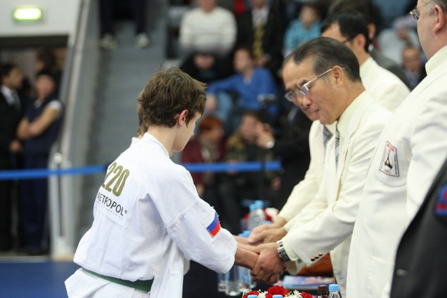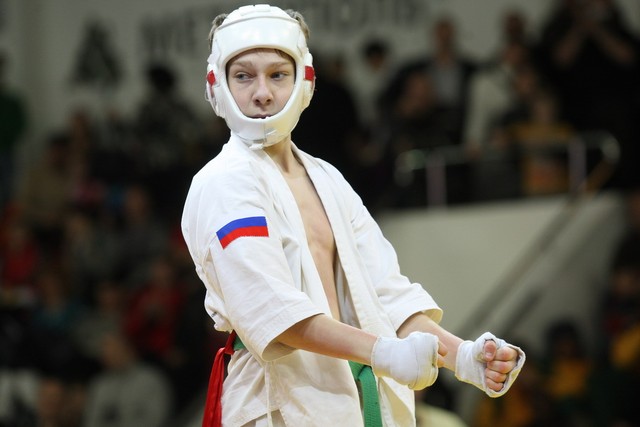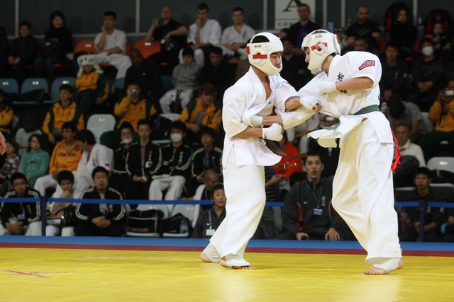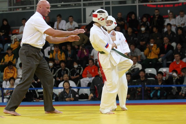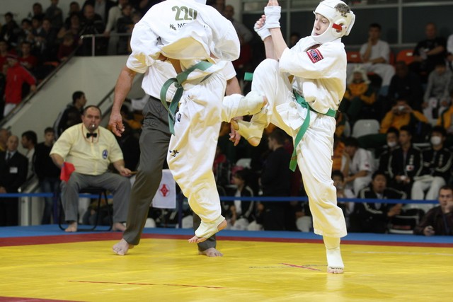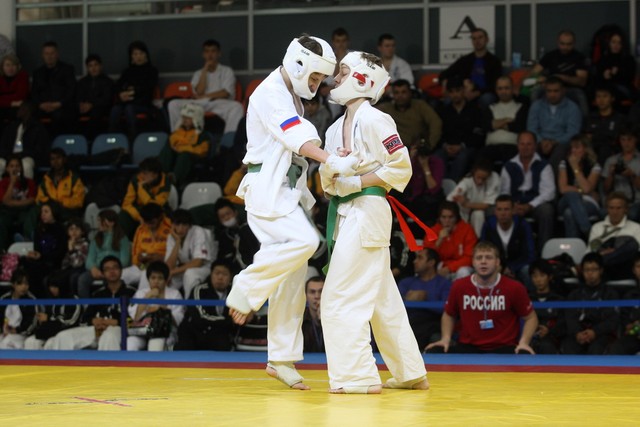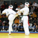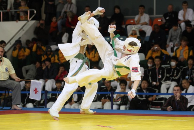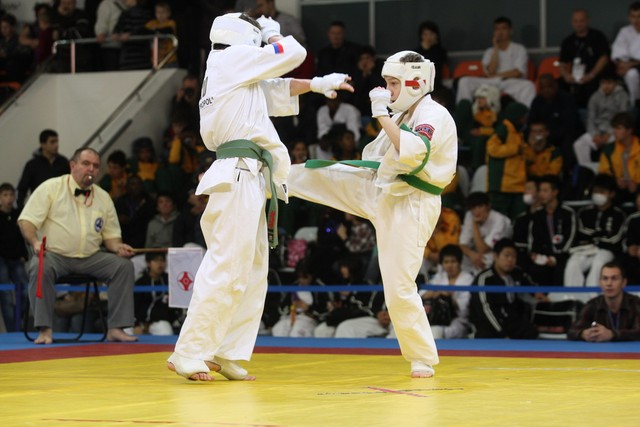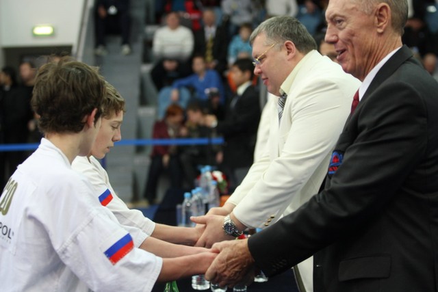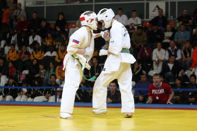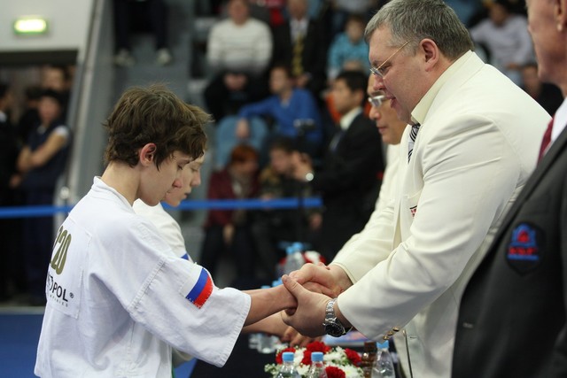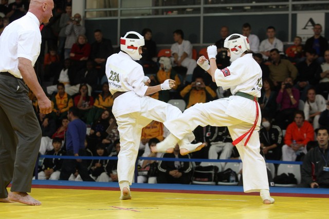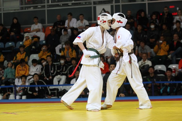 I Открытое первенство мира по Кёкусин-кан. Финальные поединки в категориях «Юноши 14-15 лет, до 45 кг» (Волынко Константин, Россия, Кёкусин-кан, Краснодарский край – Колесников Владислав, Россия, Кёкусин-кан, Московская область) и «Юноши 14-15 лет, до 50 кг» (Нешхлебов Ярослав, Россия, Кёкусин-кан, Краснодарский край – Такидзава Ю, Япония). Фото О. Бессуднова