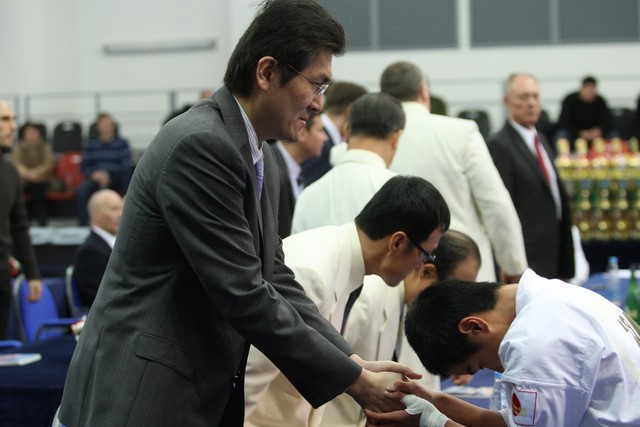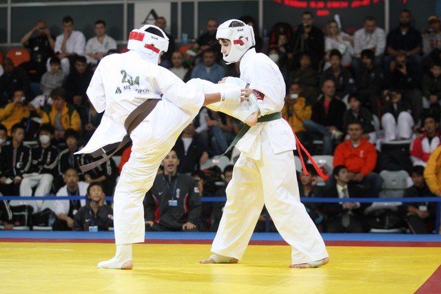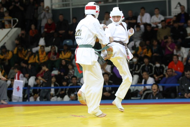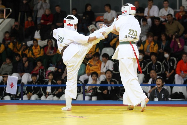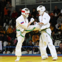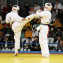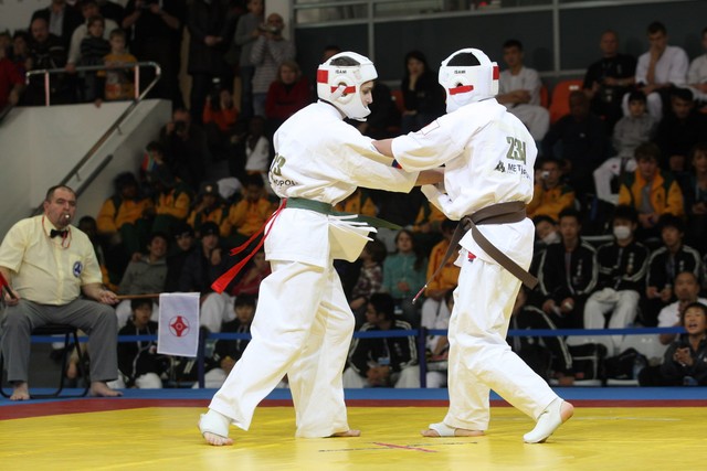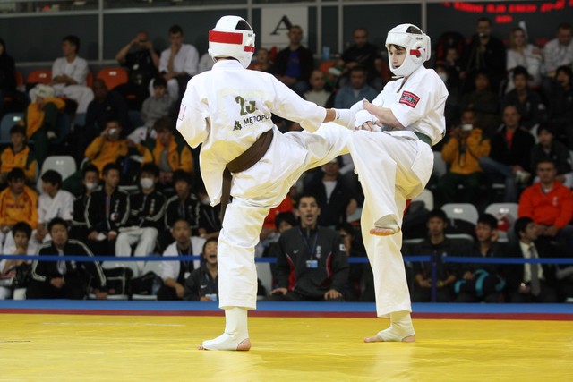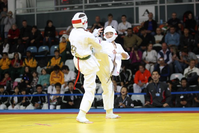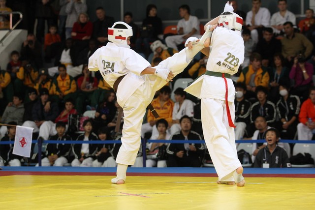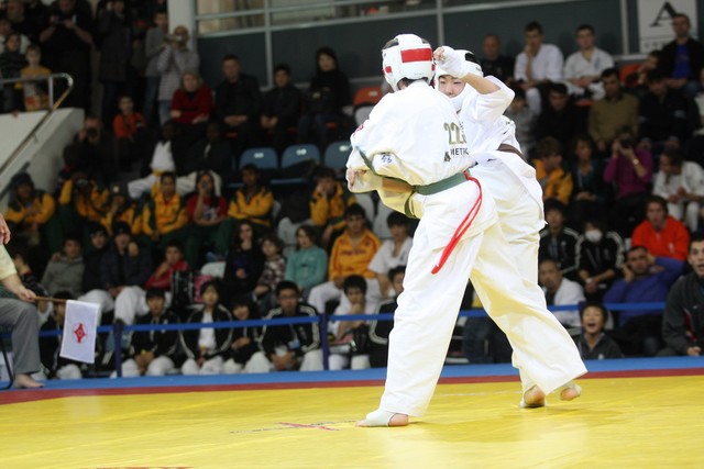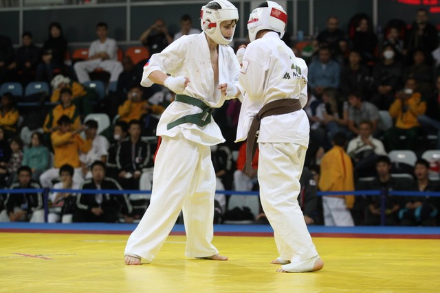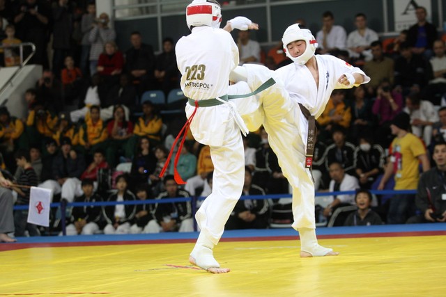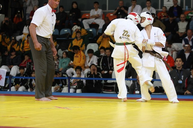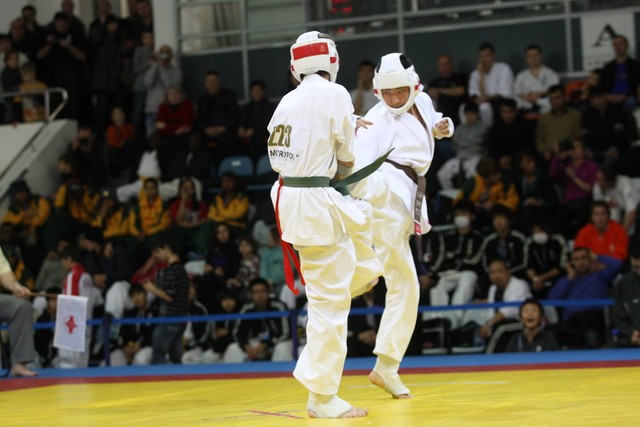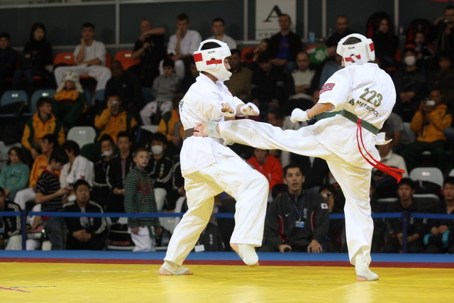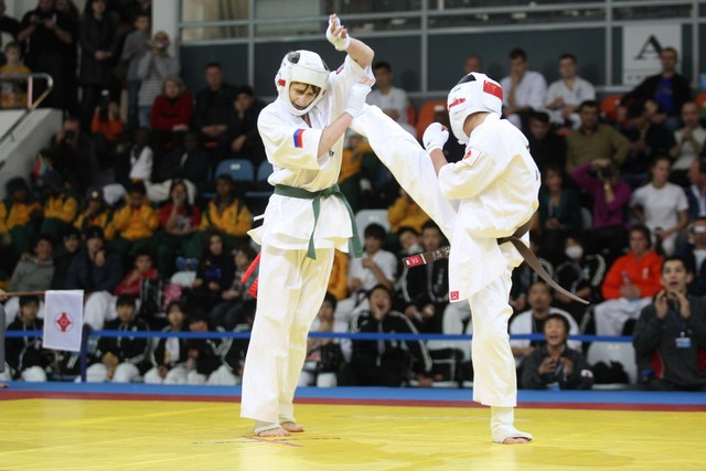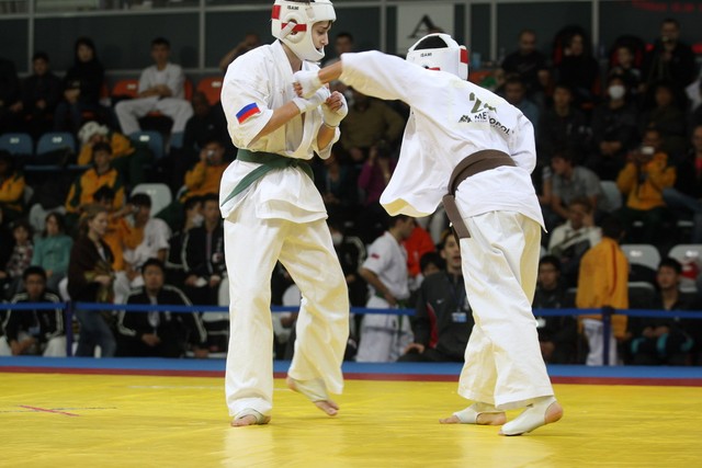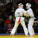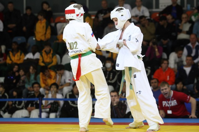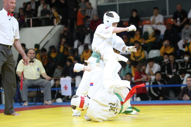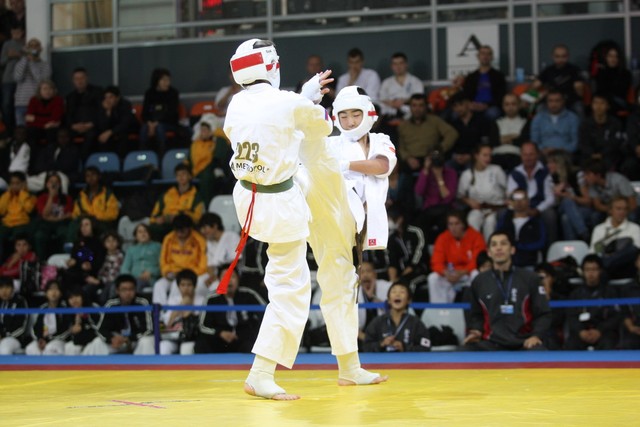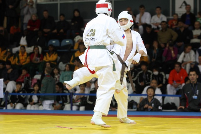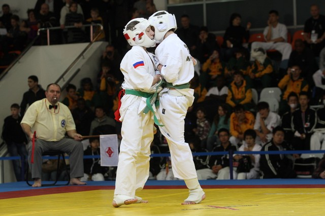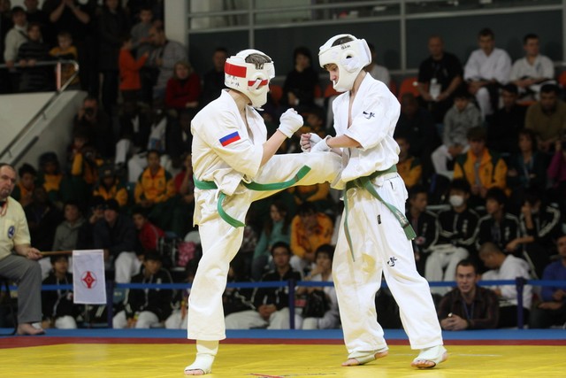 I Открытое первенство мира по Кёкусин-кан. Финальные поединки в категориях «Юноши 14-15 лет, до 45 кг» (Волынко Константин, Россия, Кёкусин-кан, Краснодарский край – Колесников Владислав, Россия, Кёкусин-кан, Московская область) и «Юноши 14-15 лет, до 50 кг» (Нешхлебов Ярослав, Россия, Кёкусин-кан, Краснодарский край – Такидзава Ю, Япония). Фото О. Бессуднова