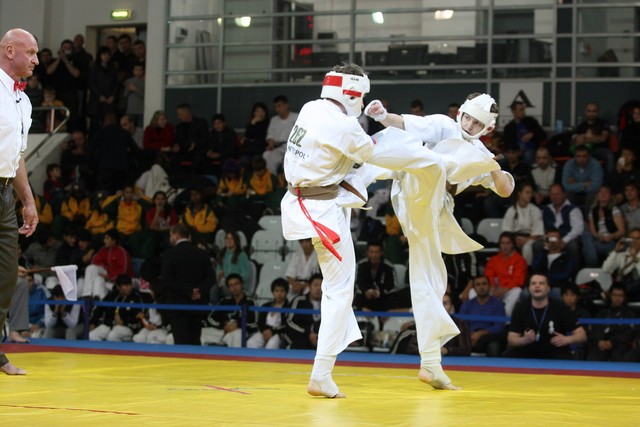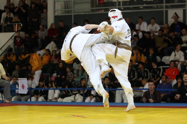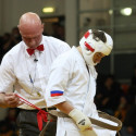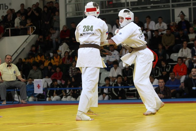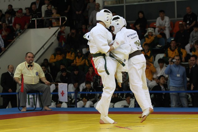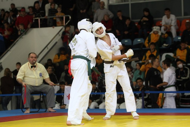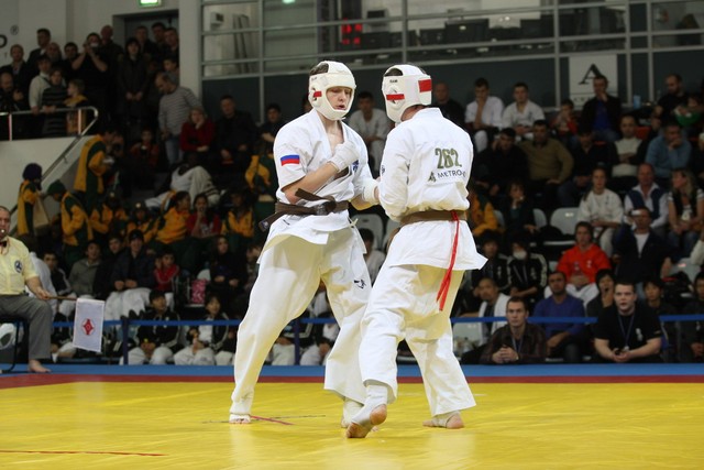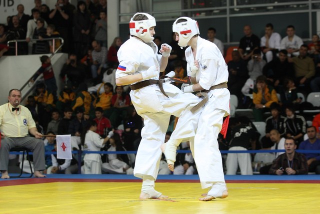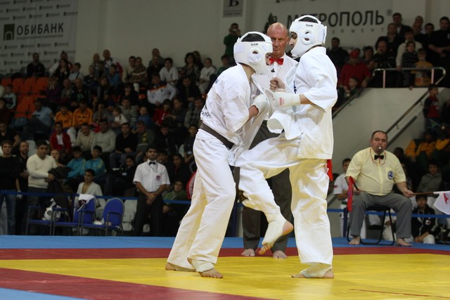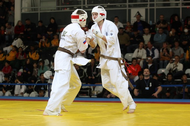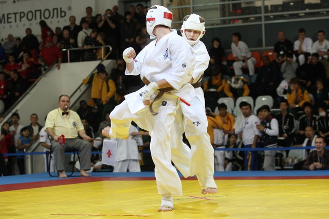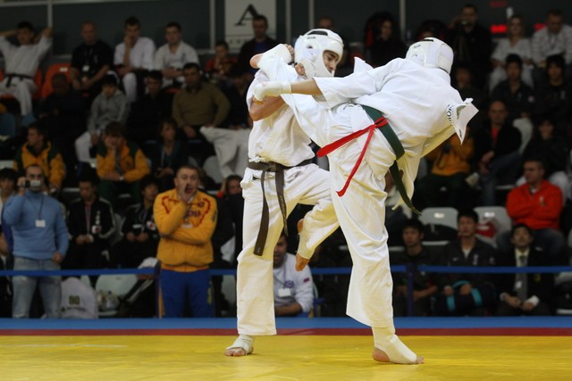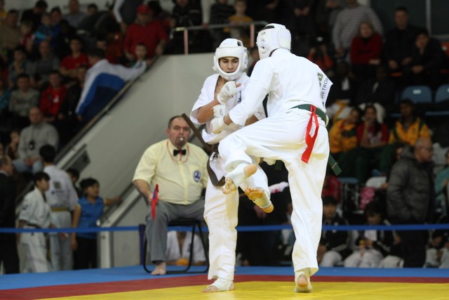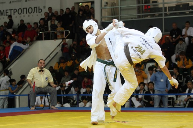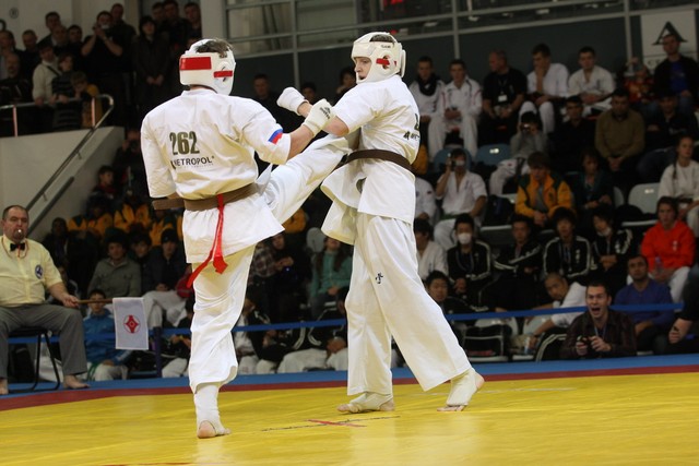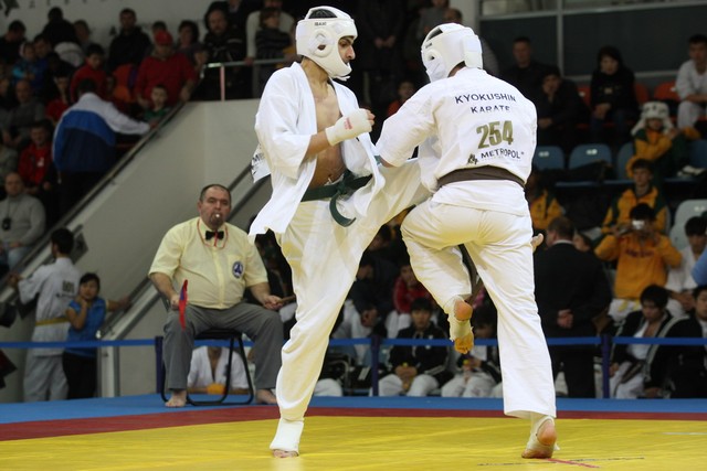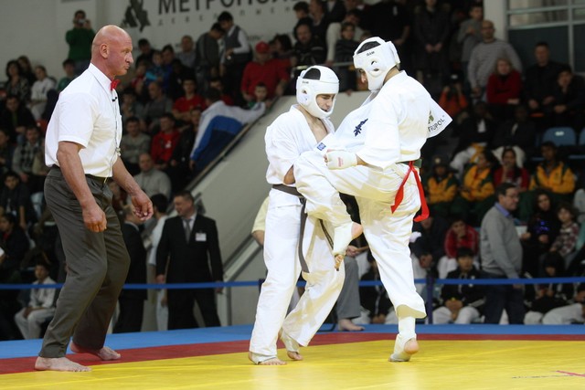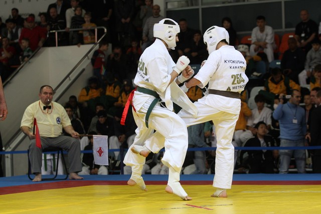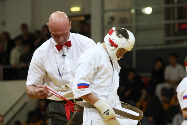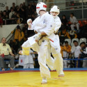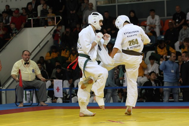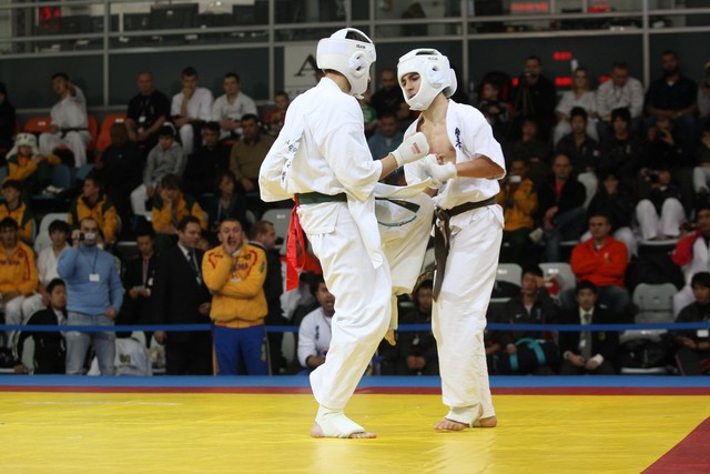 I Открытое первенство мира по Кёкусин-кан. Финальные поединки в категориях «Юноши 14-15 лет, до 55 кг» (Мосоян Жора, Россия, АКР – Абовян Армен, Армения) и «Юноши 14-15 лет, до 60 кг» (Бышин Андрей, Россия, Кёкусин-кан, Московская область – Магомедов Омар, Россия, Кёкусин-кан, Дагестан). Фото О. Бессуднова