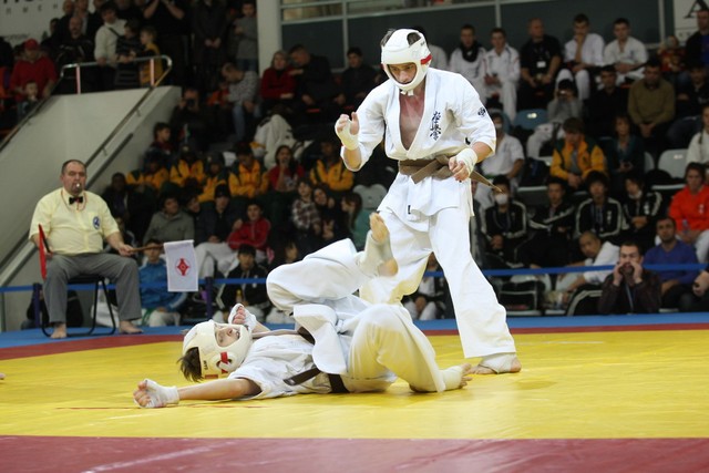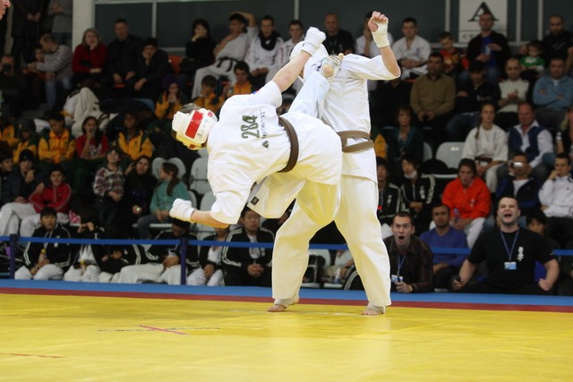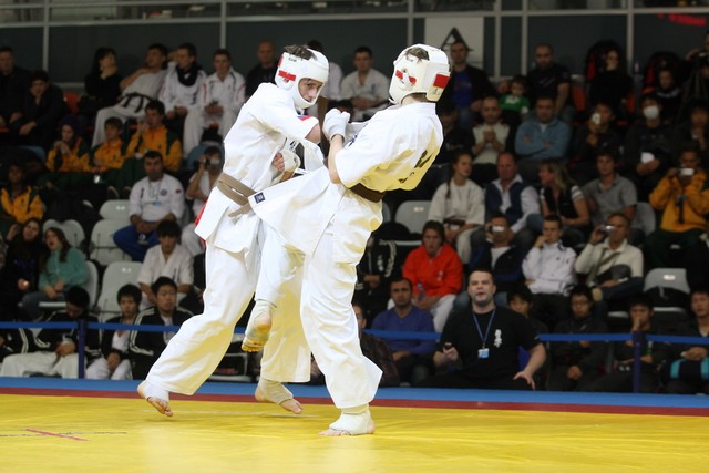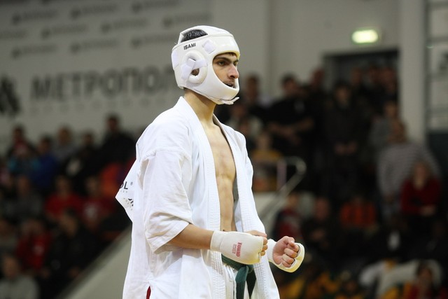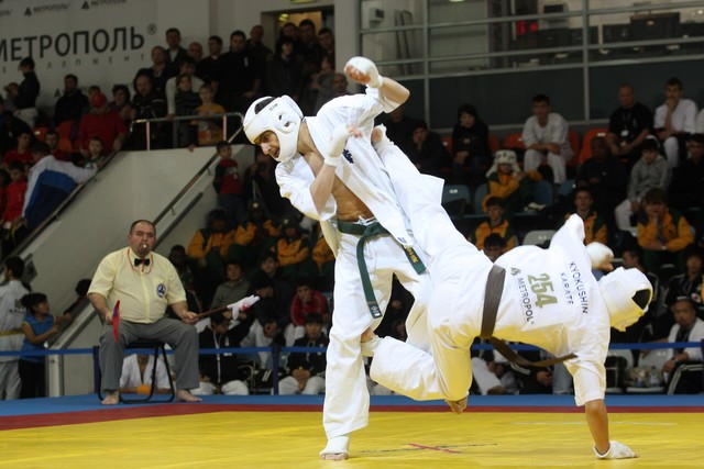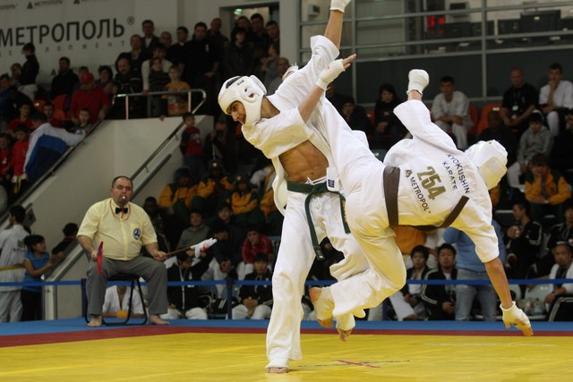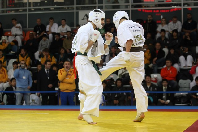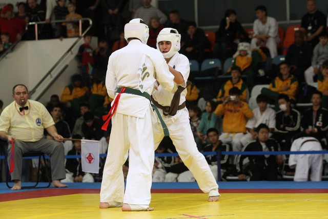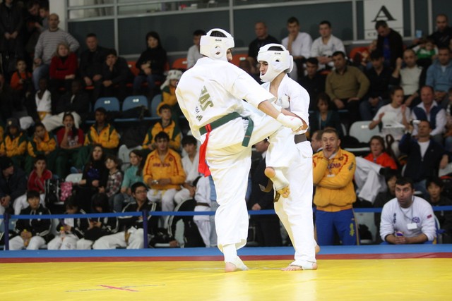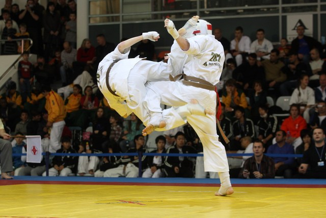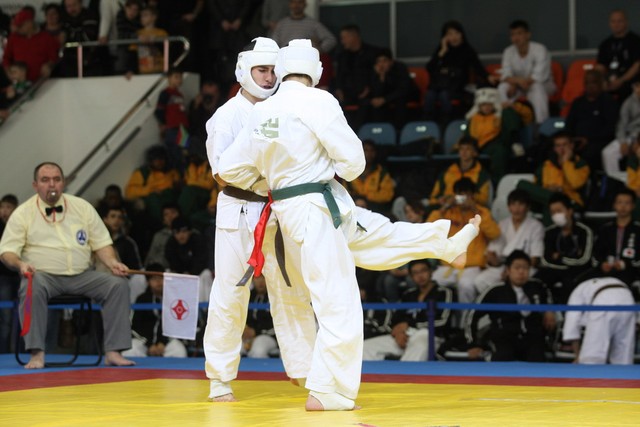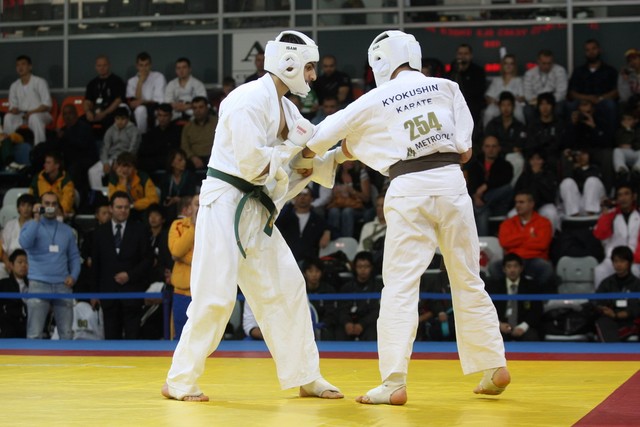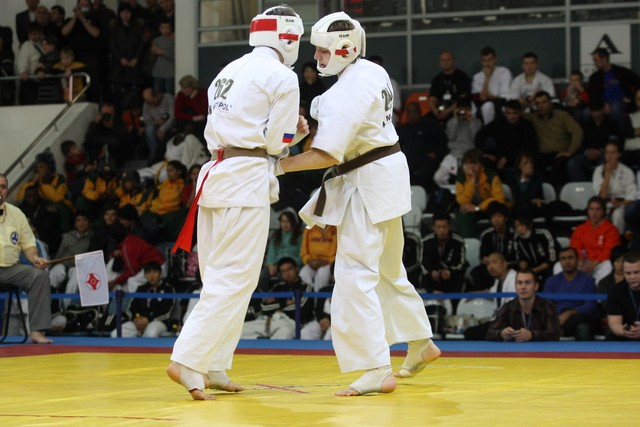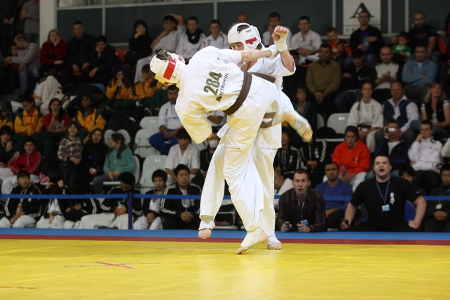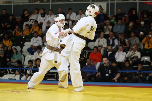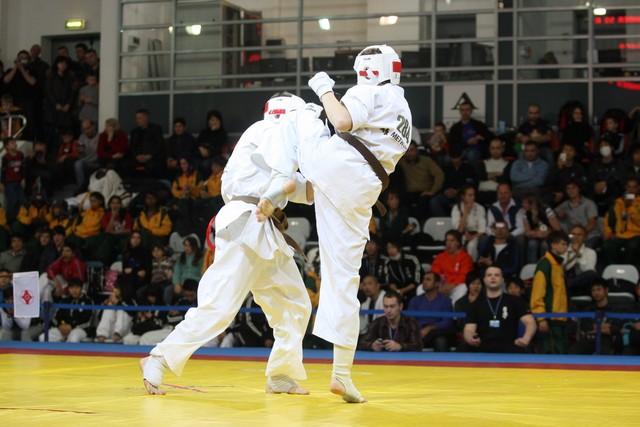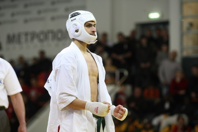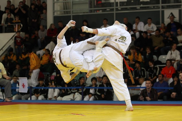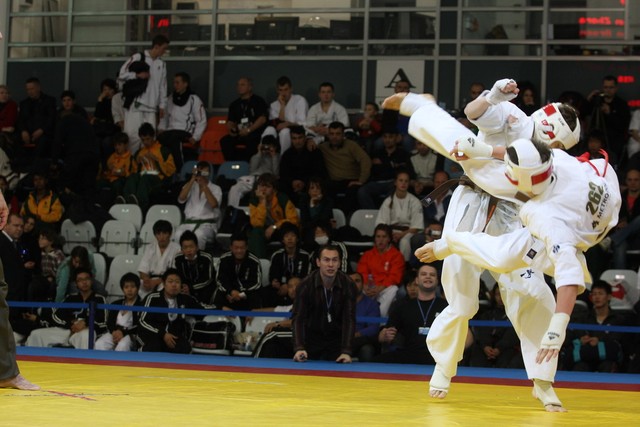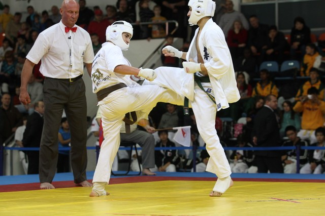 I Открытое первенство мира по Кёкусин-кан. Финальные поединки в категориях «Юноши 14-15 лет, до 55 кг» (Мосоян Жора, Россия, АКР – Абовян Армен, Армения) и «Юноши 14-15 лет, до 60 кг» (Бышин Андрей, Россия, Кёкусин-кан, Московская область – Магомедов Омар, Россия, Кёкусин-кан, Дагестан). Фото О. Бессуднова