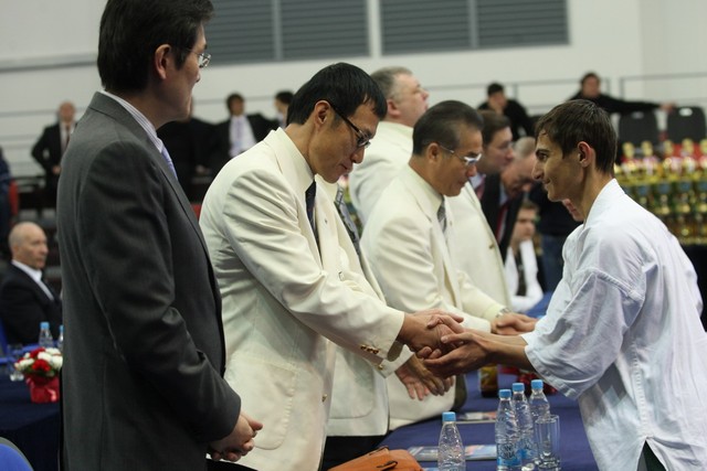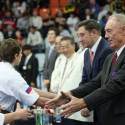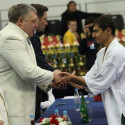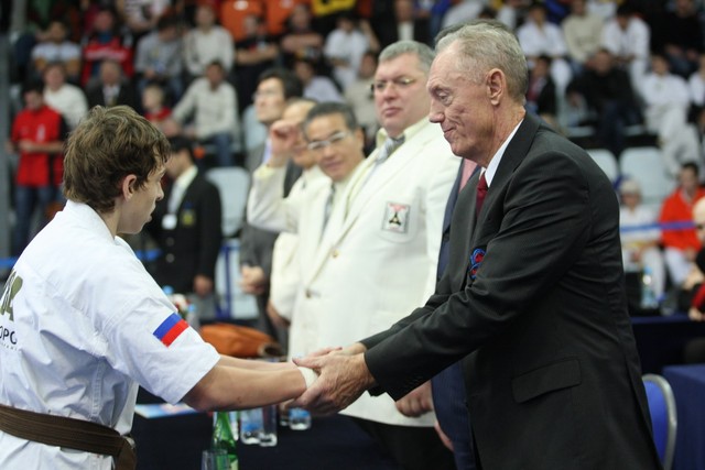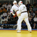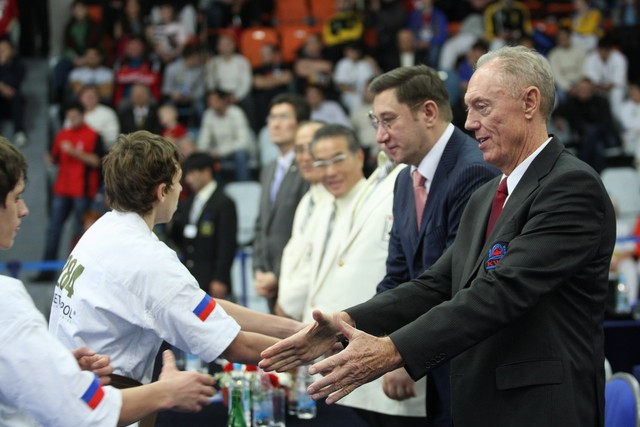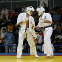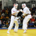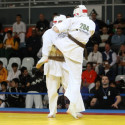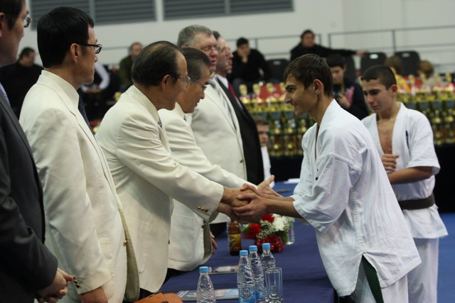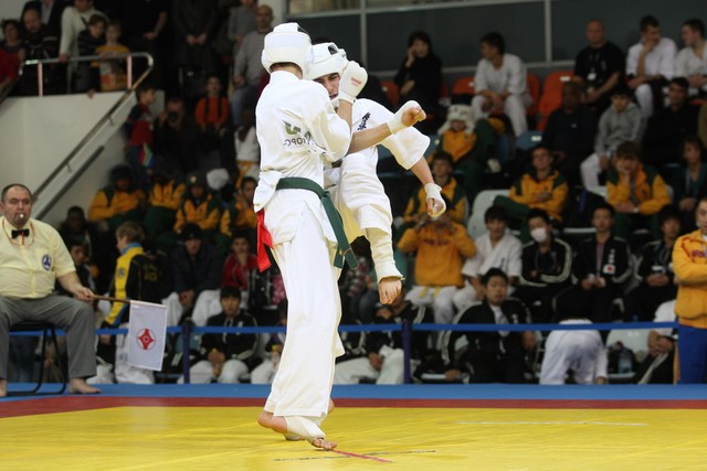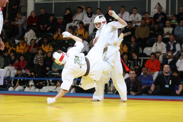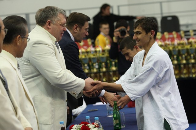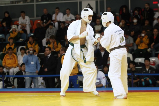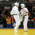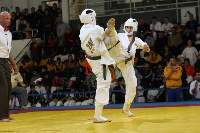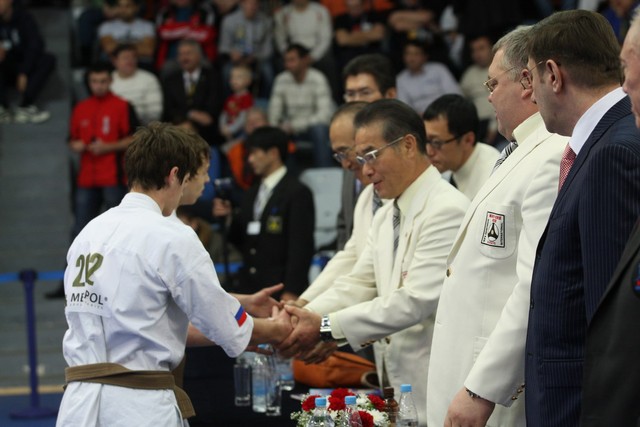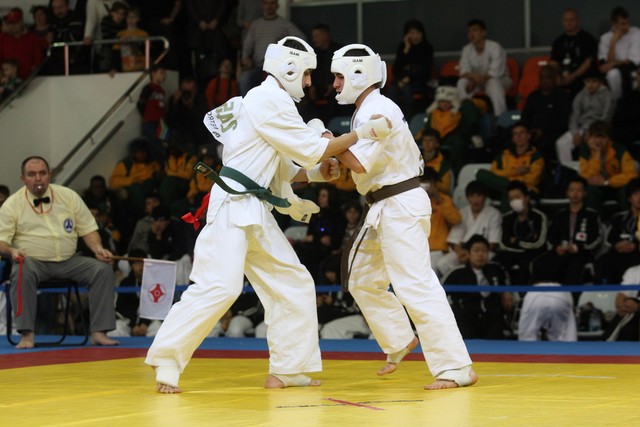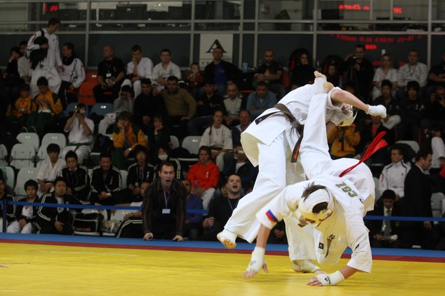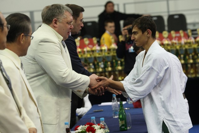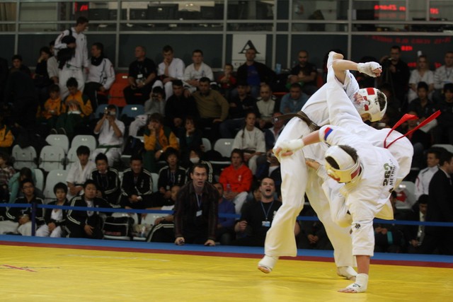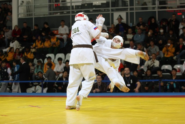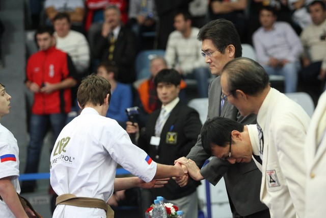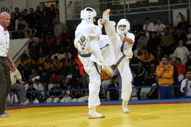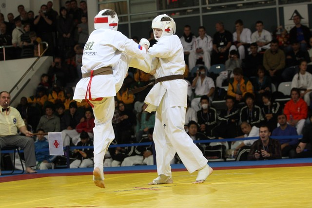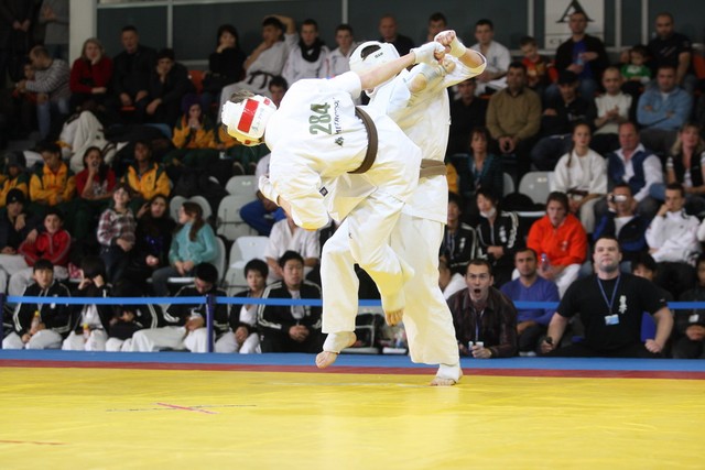 I Открытое первенство мира по Кёкусин-кан. Финальные поединки в категориях «Юноши 14-15 лет, до 55 кг» (Мосоян Жора, Россия, АКР – Абовян Армен, Армения) и «Юноши 14-15 лет, до 60 кг» (Бышин Андрей, Россия, Кёкусин-кан, Московская область – Магомедов Омар, Россия, Кёкусин-кан, Дагестан). Фото О. Бессуднова