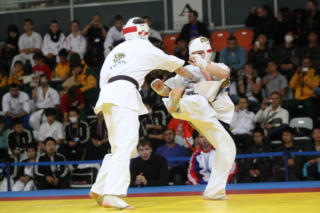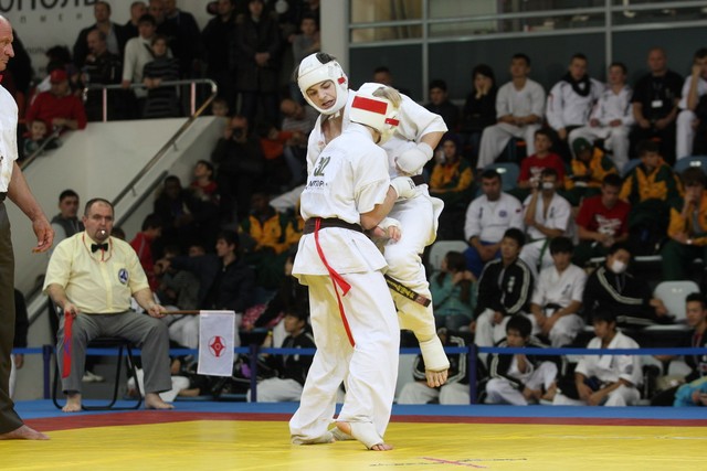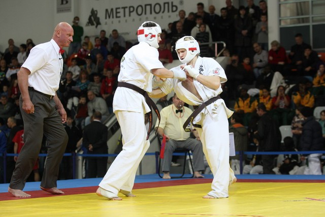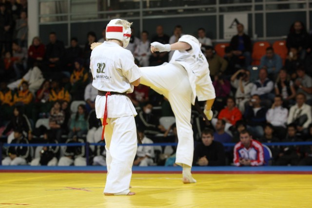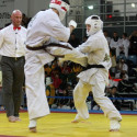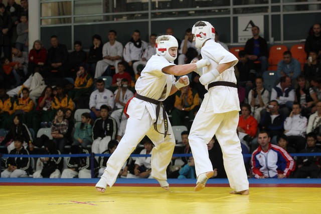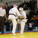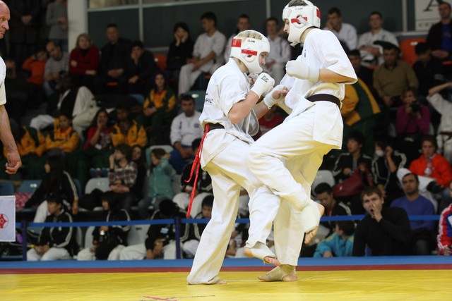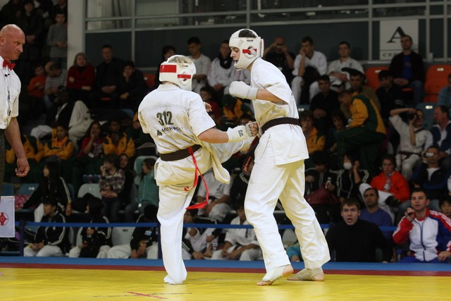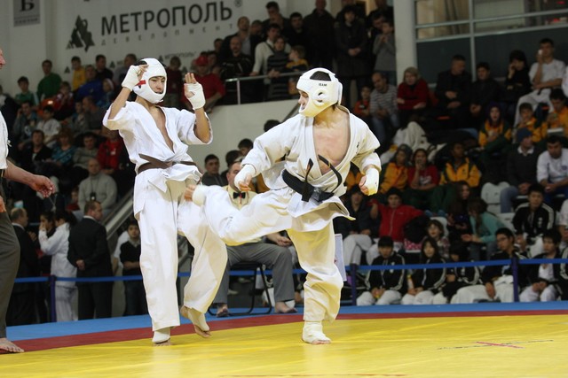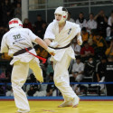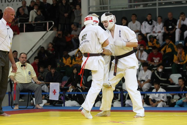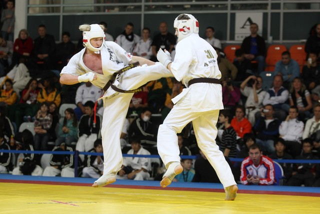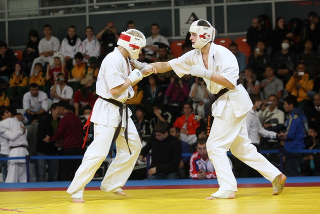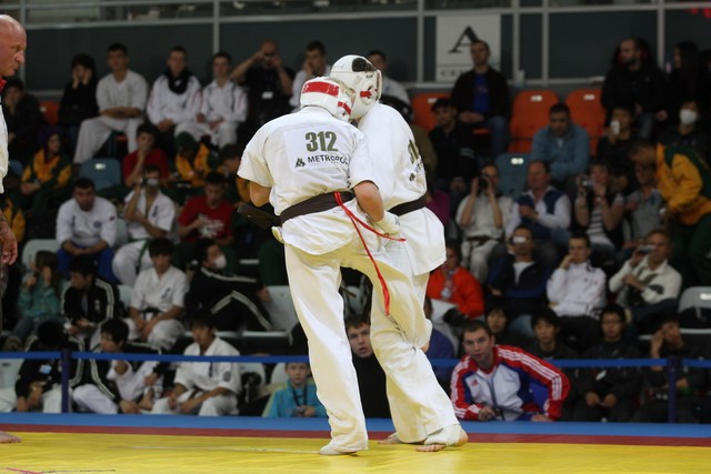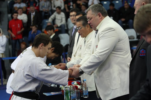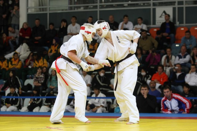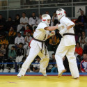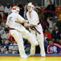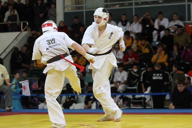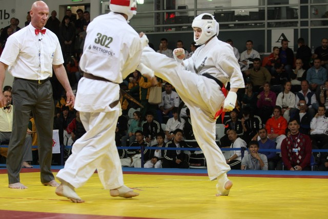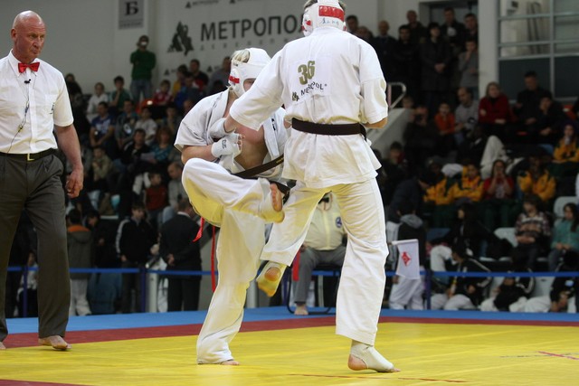 I Открытое первенство мира по Кёкусин-кан. Финальные поединки в категориях «Юноши 14-15 лет, до 65 кг» (Джулдасов Руслан, Казахстан – Звоник Дан, Украина) и «Юноши 14-15 лет, свыше 65 кг» (Спиридонов Андрей, Россия, АКР – Синяговский Артём, Россия, Кёкусин-кан, Краснодарский край). Фото О. Бессуднова