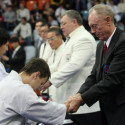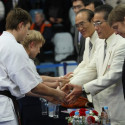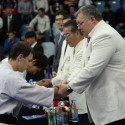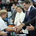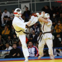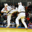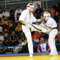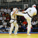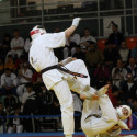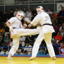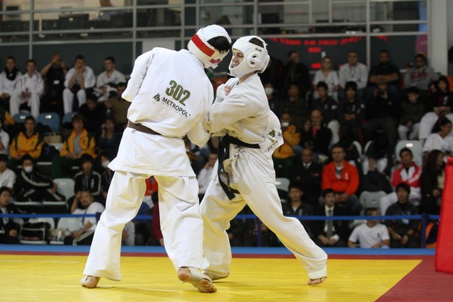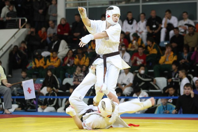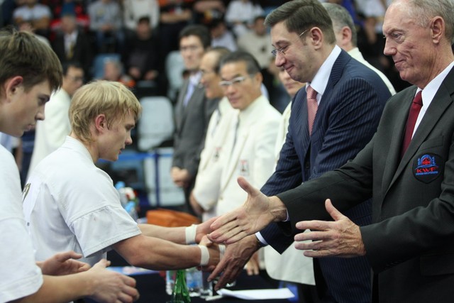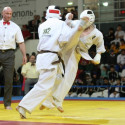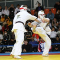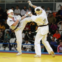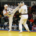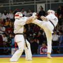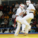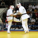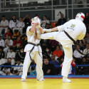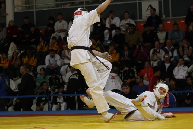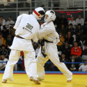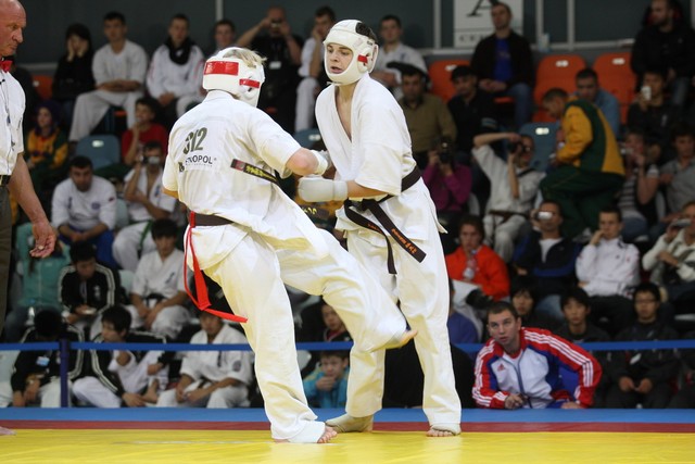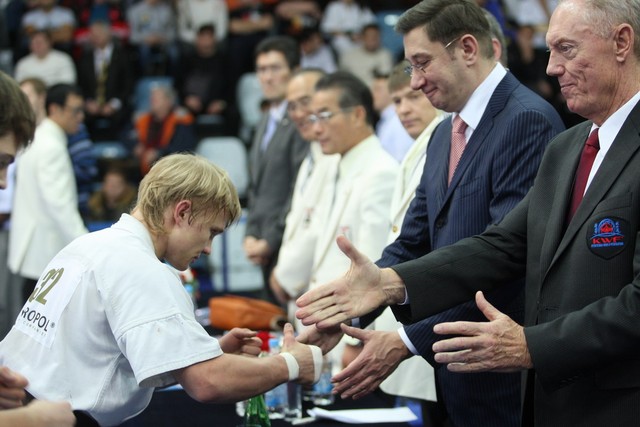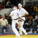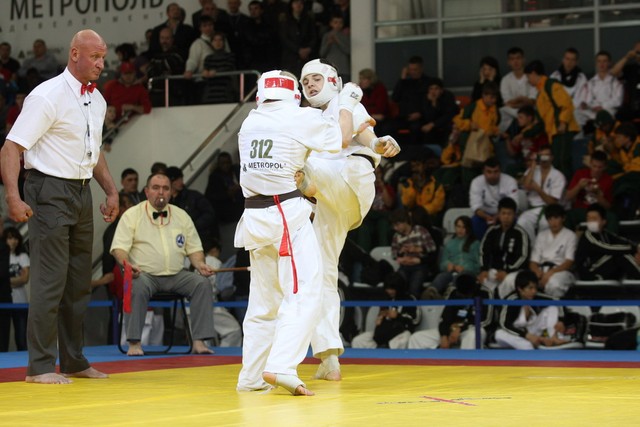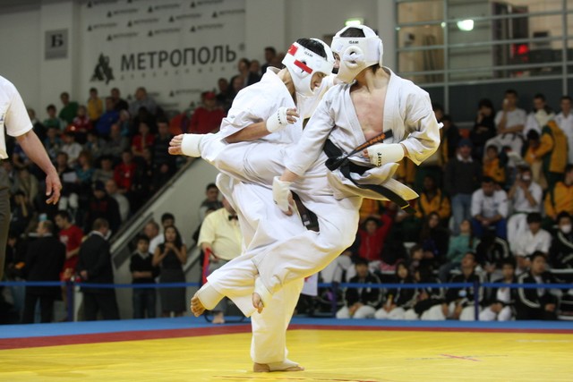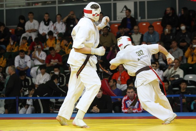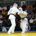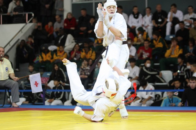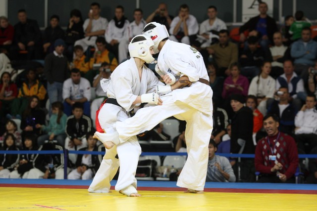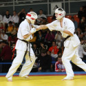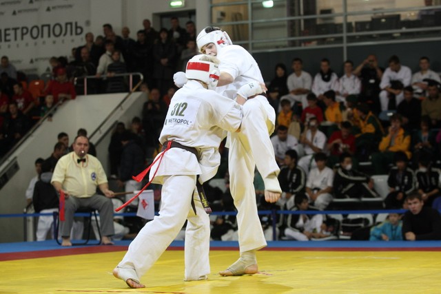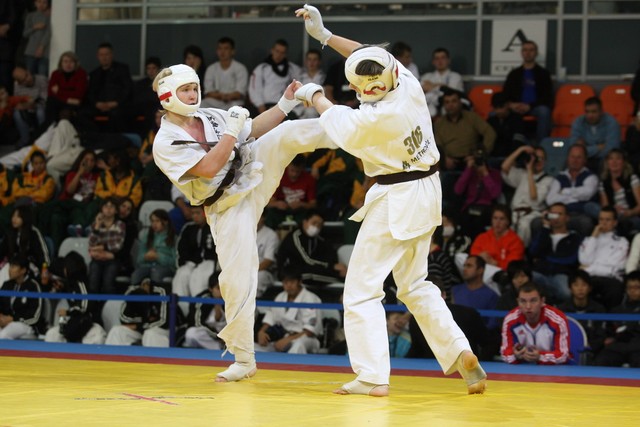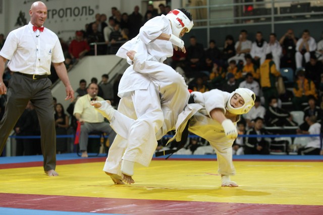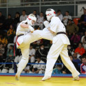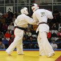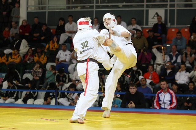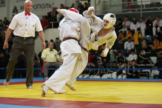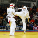 I Открытое первенство мира по Кёкусин-кан. Финальные поединки в категориях «Юноши 14-15 лет, до 65 кг» (Джулдасов Руслан, Казахстан – Звоник Дан, Украина) и «Юноши 14-15 лет, свыше 65 кг» (Спиридонов Андрей, Россия, АКР – Синяговский Артём, Россия, Кёкусин-кан, Краснодарский край). Фото О. Бессуднова