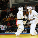 Главная › Фото › I Открытое первенство мира по Кёкусин-кан. Финальные поединки в категориях «Юноши 14-15 лет, до 65 кг» (Джулдасов Руслан, Казахстан – Звоник Дан, Украина) и «Юноши 14-15 лет, свыше 65 кг» (Спиридонов Андрей, Россия, АКР – Синяговский Артём, Россия, Кёкусин-кан, Краснодарский край). Фото О. Бессуднова