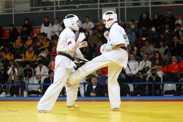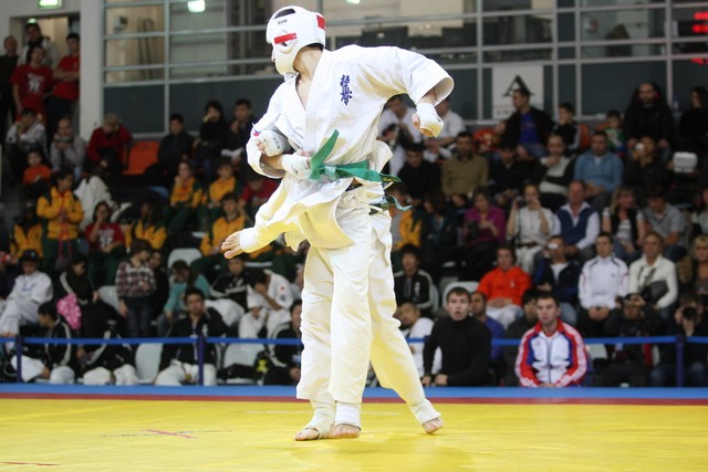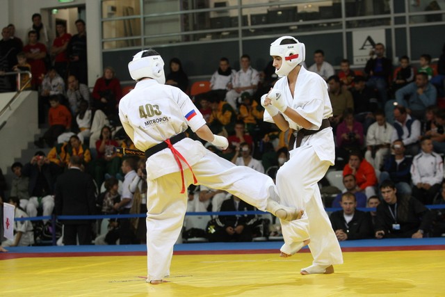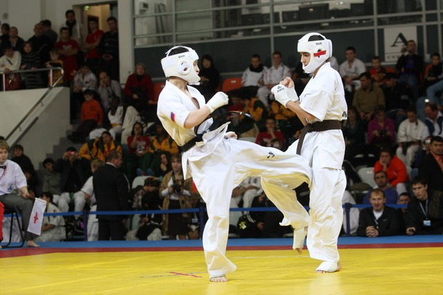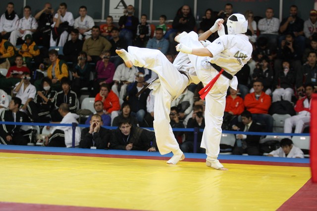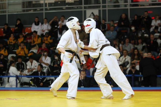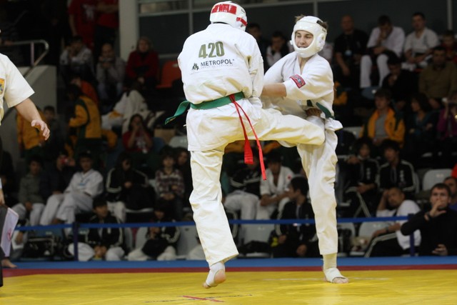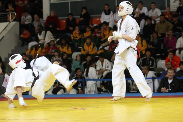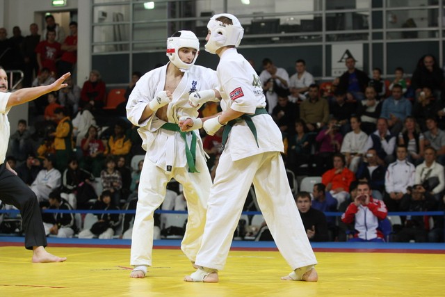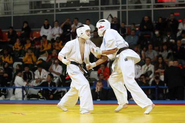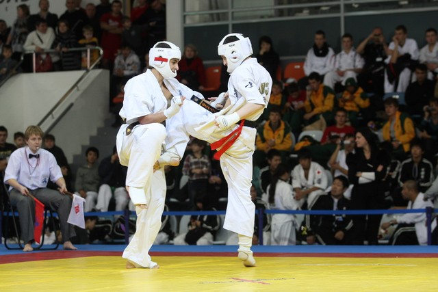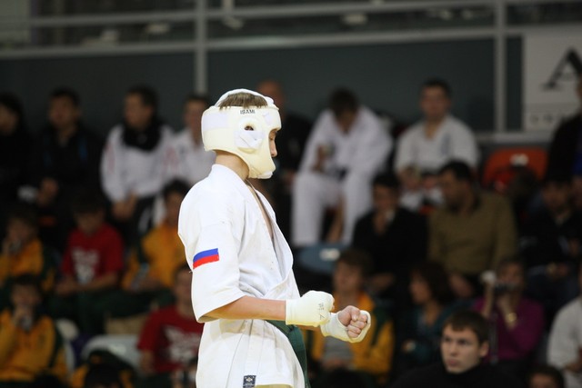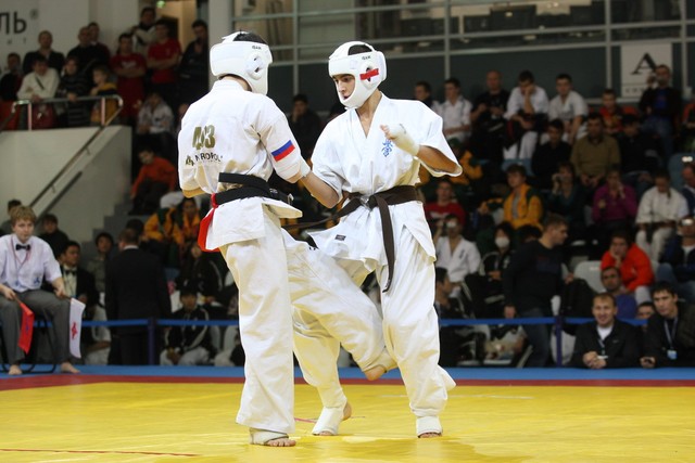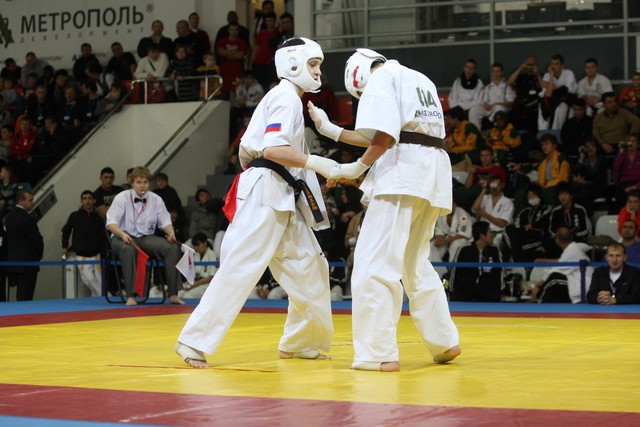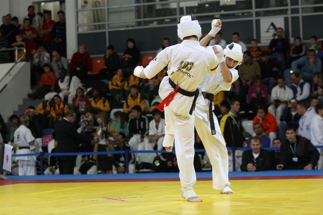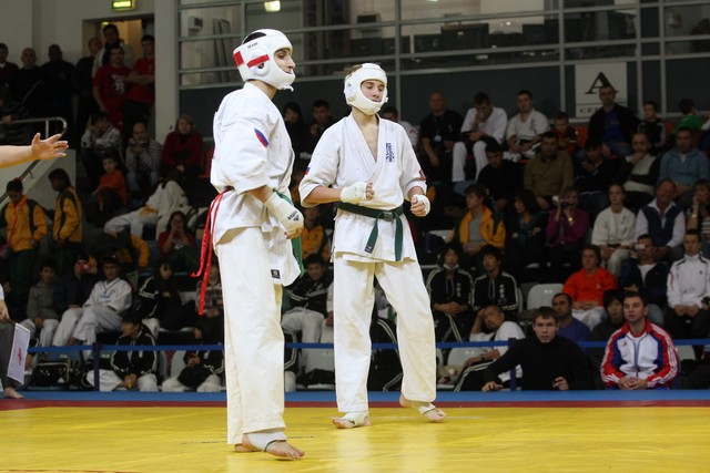 I Открытое первенство мира по Кёкусин-кан. Финальные поединки в категориях «Юниоры 16-17 лет, до 55 кг» (Аджиев Султанхан, Россия, Кёкусин-кан, Москва – Чмуневич Евгений, АКР, Россия) и « Юниоры 16-17 лет, до 60 кг» (Дрозд Александр, Россия, Кёкусин-кан, Краснодарский край – Магомедов Саид, Россия, Кёкусин-кан, Дагестан). Фото О. Бессуднова