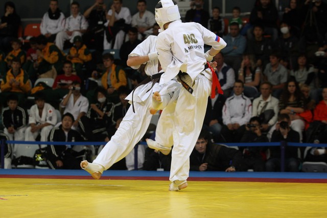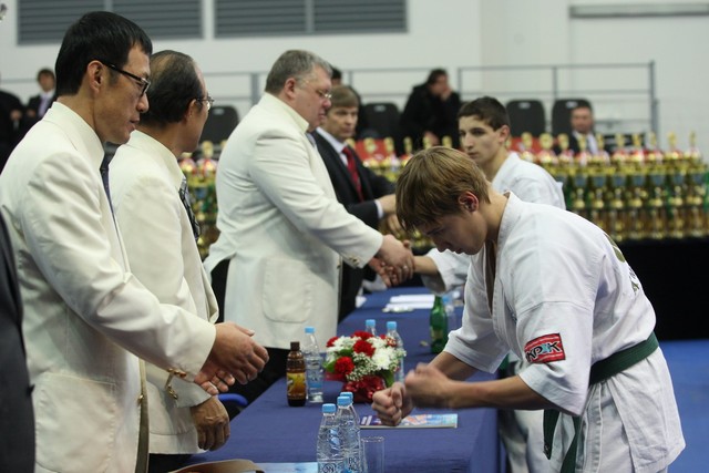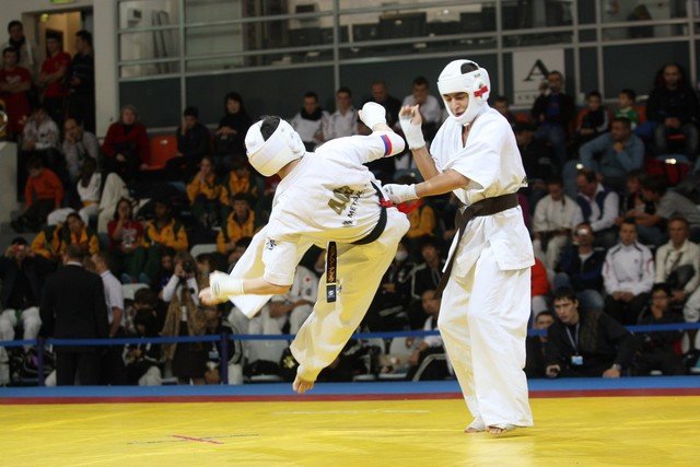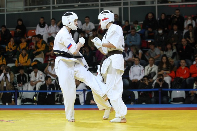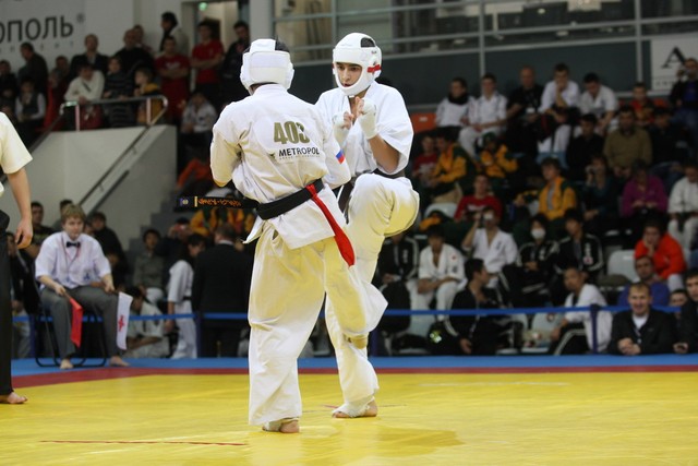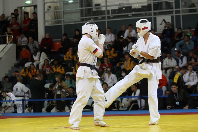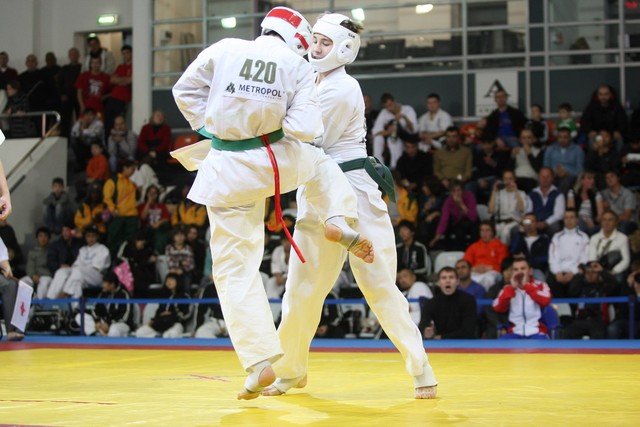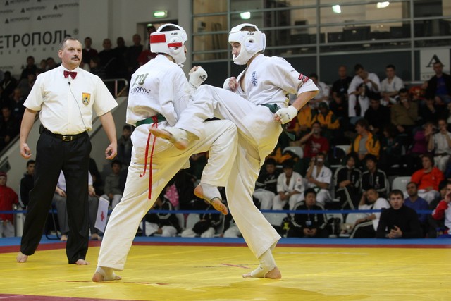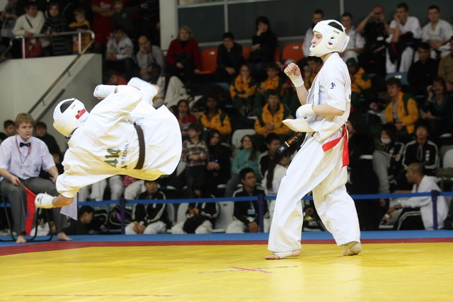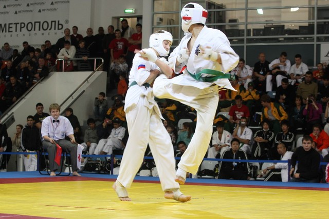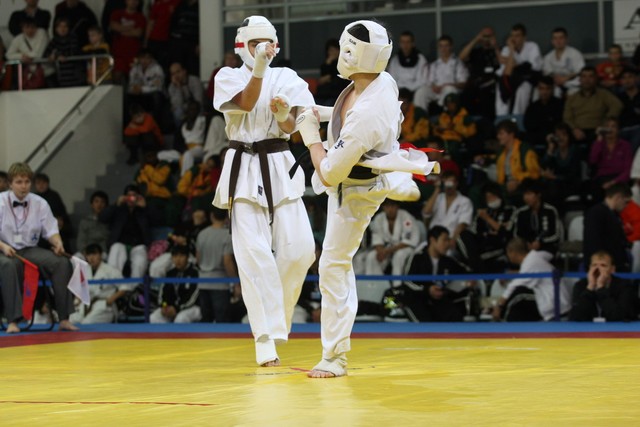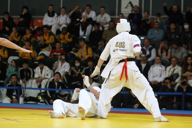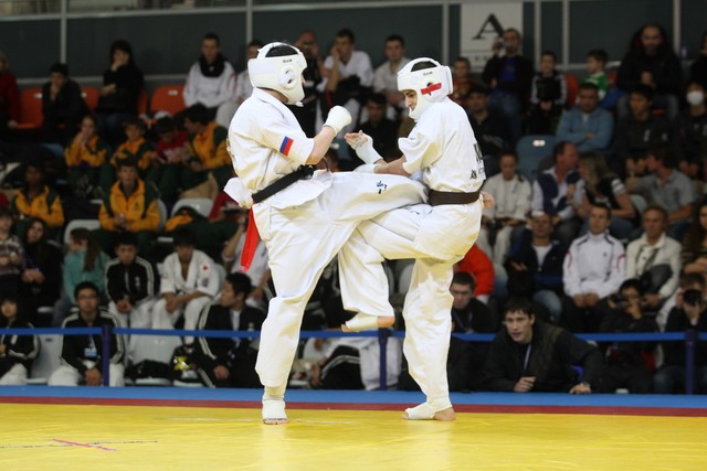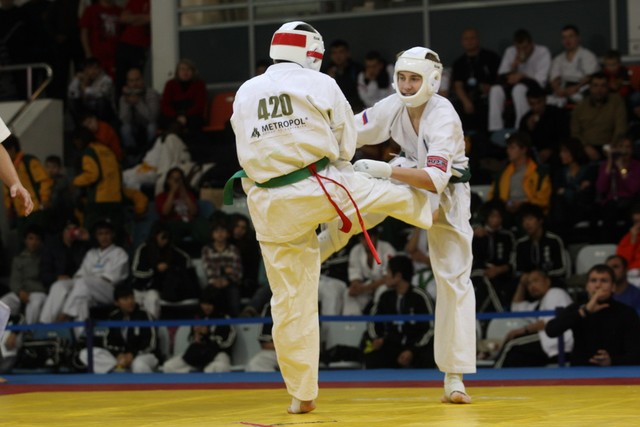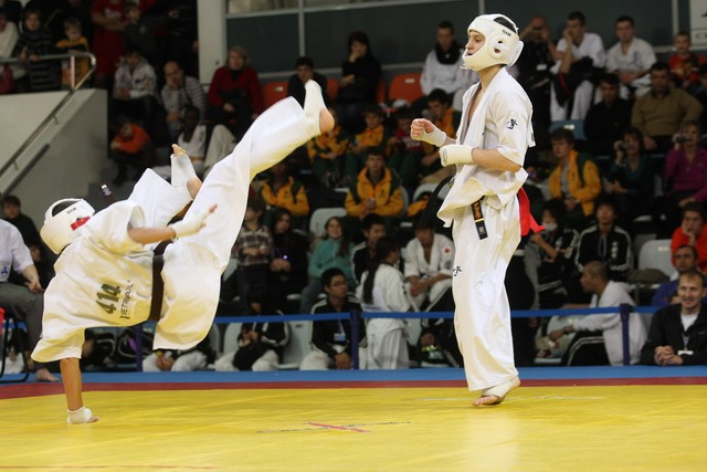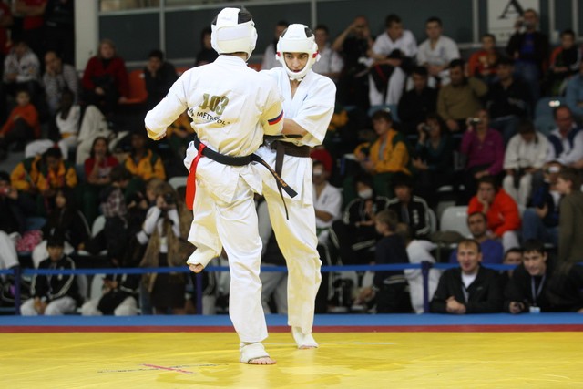 I Открытое первенство мира по Кёкусин-кан. Финальные поединки в категориях «Юниоры 16-17 лет, до 55 кг» (Аджиев Султанхан, Россия, Кёкусин-кан, Москва – Чмуневич Евгений, АКР, Россия) и « Юниоры 16-17 лет, до 60 кг» (Дрозд Александр, Россия, Кёкусин-кан, Краснодарский край – Магомедов Саид, Россия, Кёкусин-кан, Дагестан). Фото О. Бессуднова