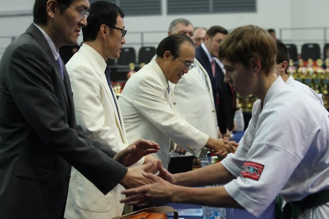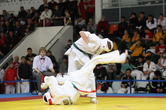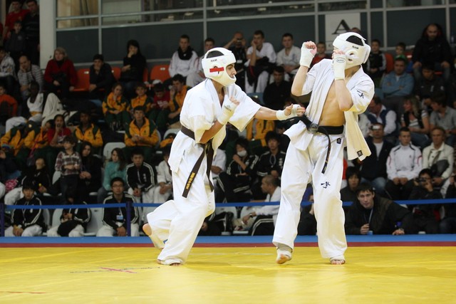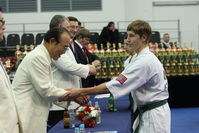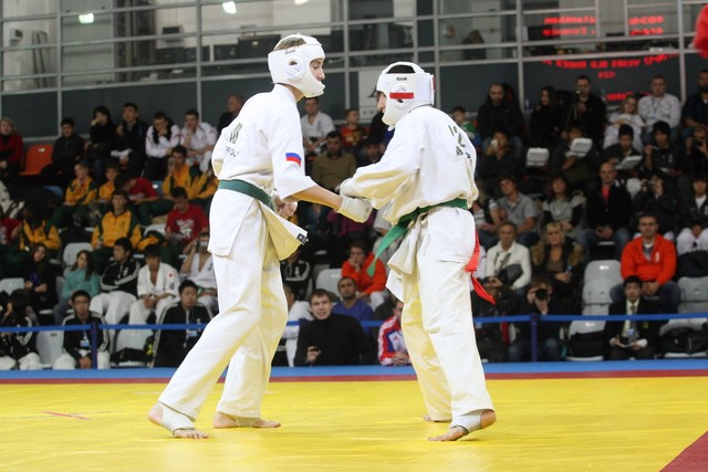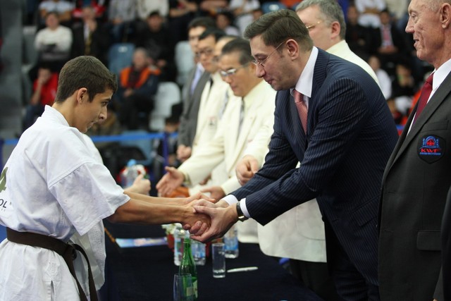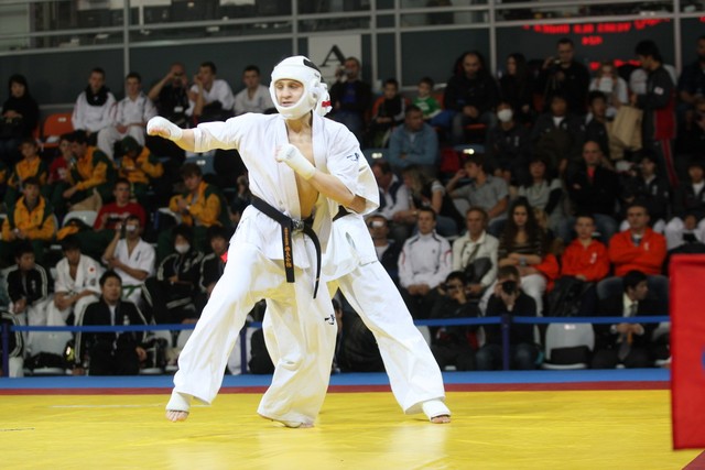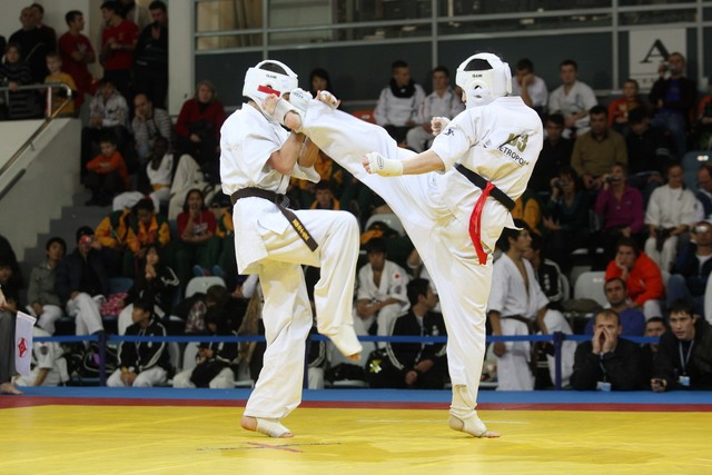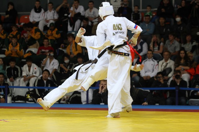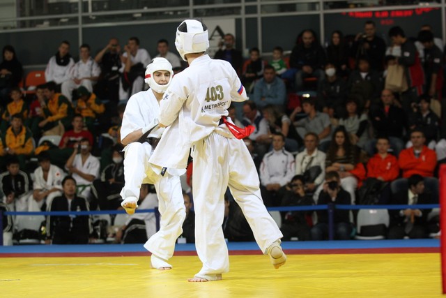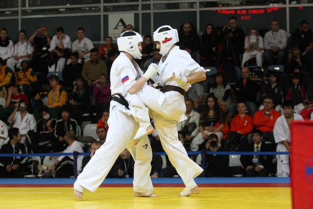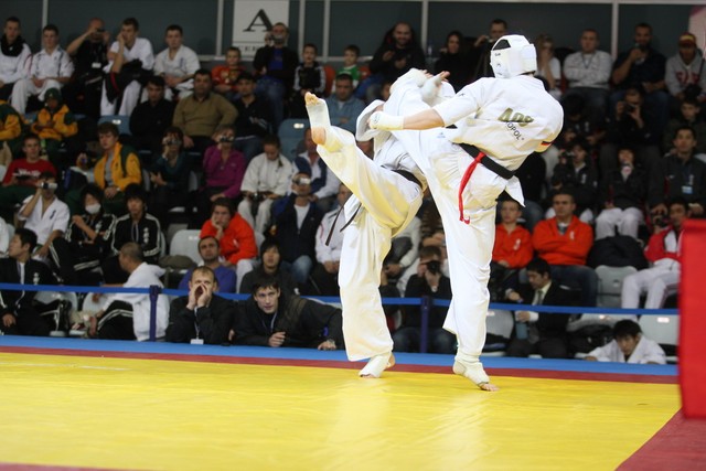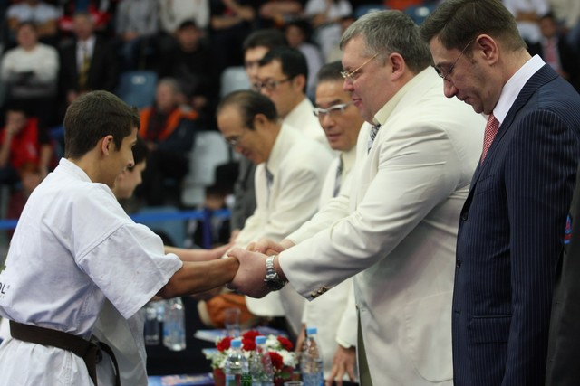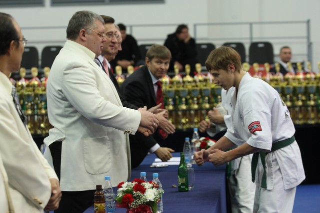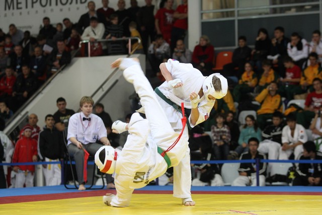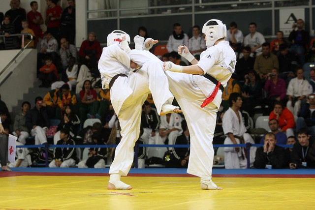 I Открытое первенство мира по Кёкусин-кан. Финальные поединки в категориях «Юниоры 16-17 лет, до 55 кг» (Аджиев Султанхан, Россия, Кёкусин-кан, Москва – Чмуневич Евгений, АКР, Россия) и « Юниоры 16-17 лет, до 60 кг» (Дрозд Александр, Россия, Кёкусин-кан, Краснодарский край – Магомедов Саид, Россия, Кёкусин-кан, Дагестан). Фото О. Бессуднова
