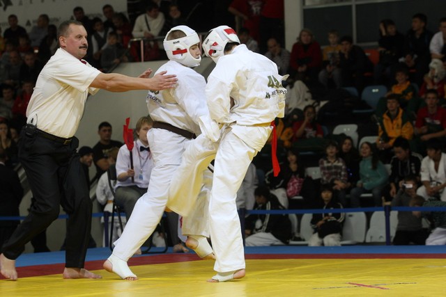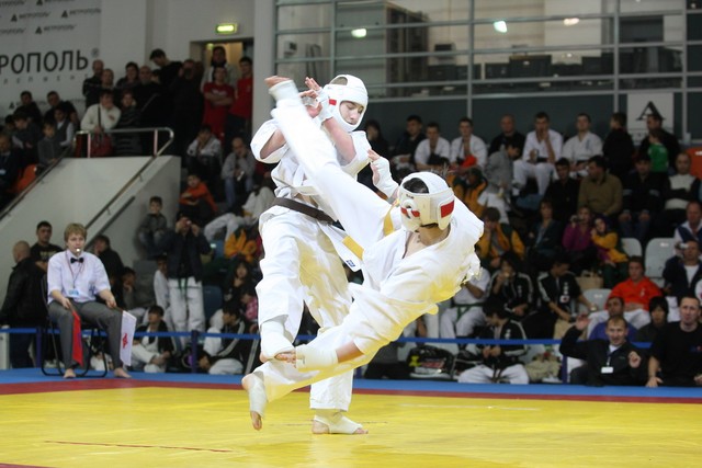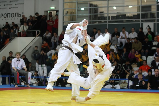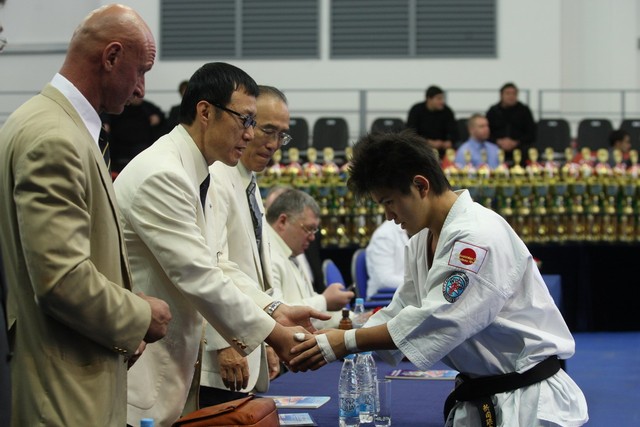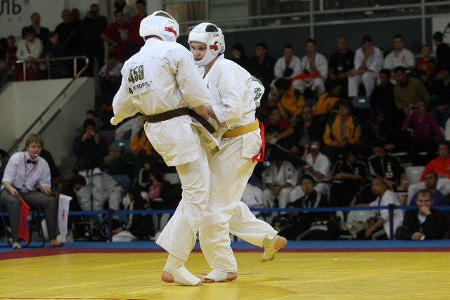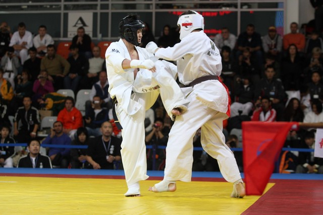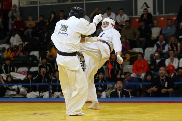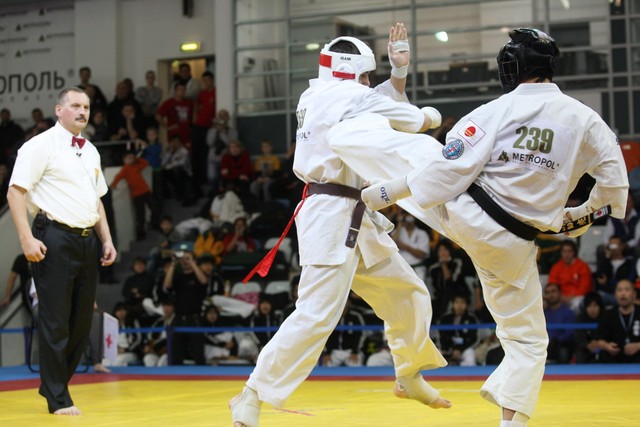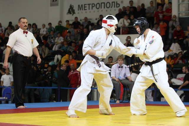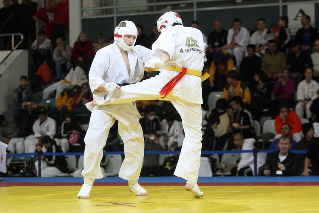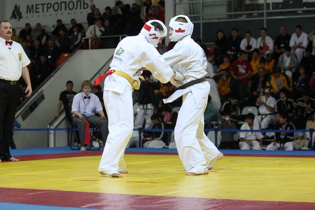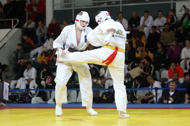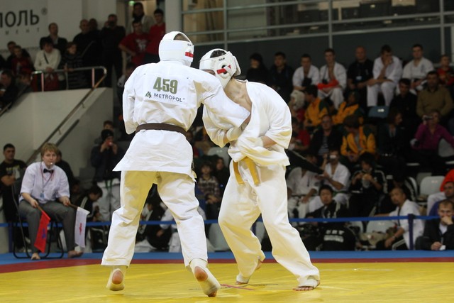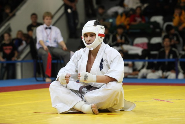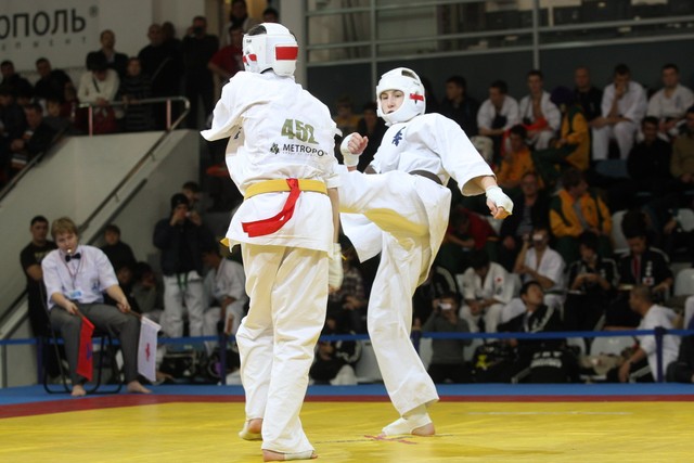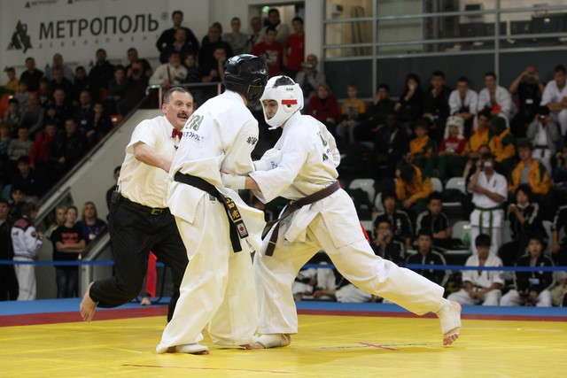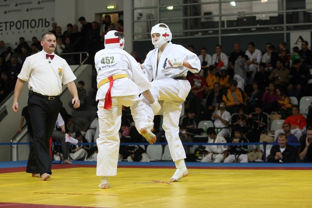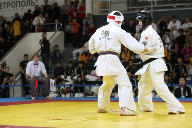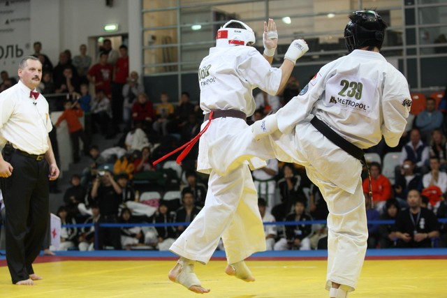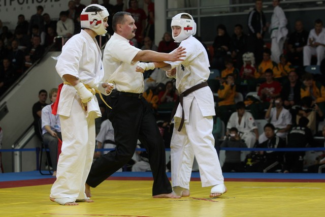 I Открытое первенство мира по Кёкусин-кан. Финальные поединки в категориях «Юниоры 16-17 лет, до 65 кг» (Михалёв Дмитрий, Россия, АКР – Кольченко Никита, Россия, Кёкусин-кан, Краснодарский край) и «Юниоры 16-17 лет, до 70 кг» (Нигамаев Евгений, Россия, АКР – Ямада Рё, Япония). Фото О. Бессуднова