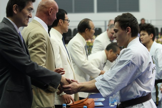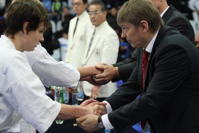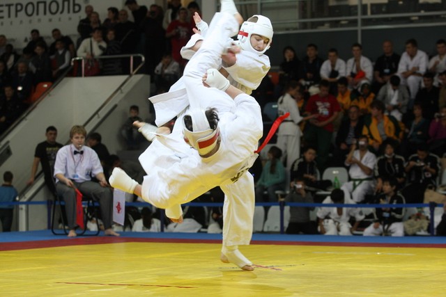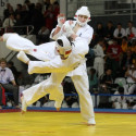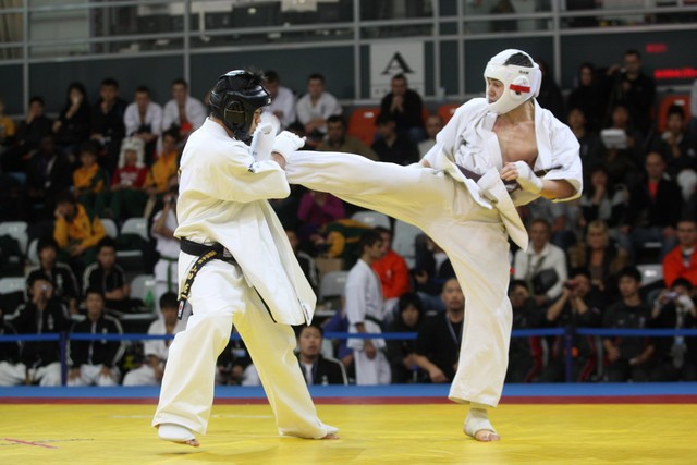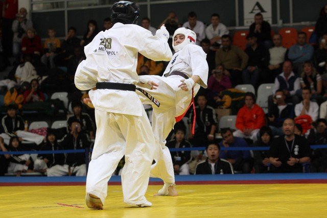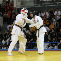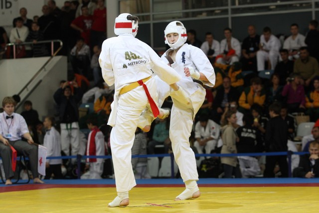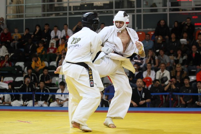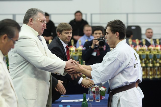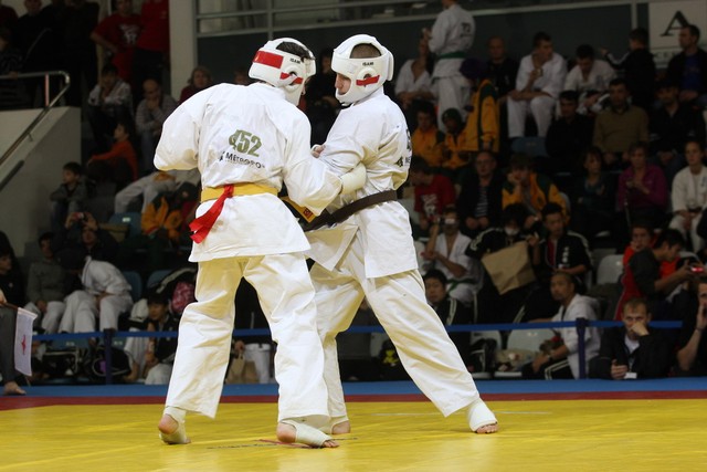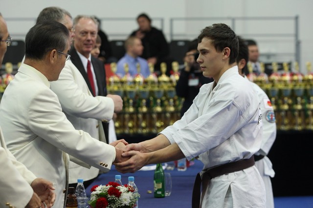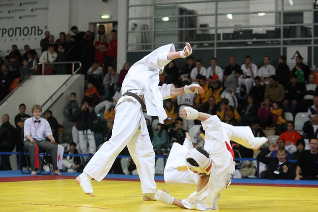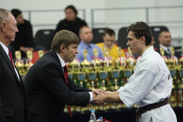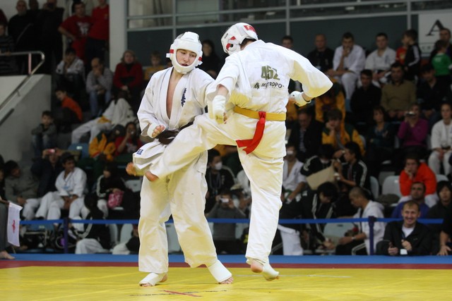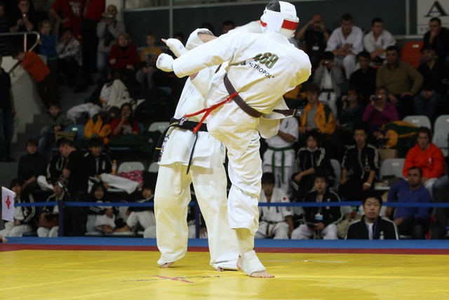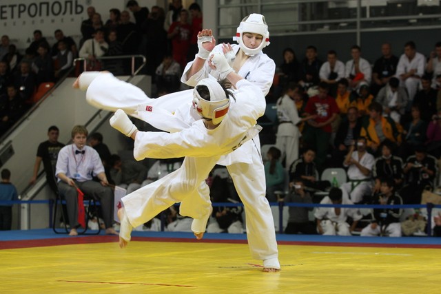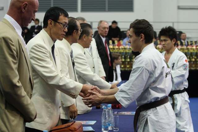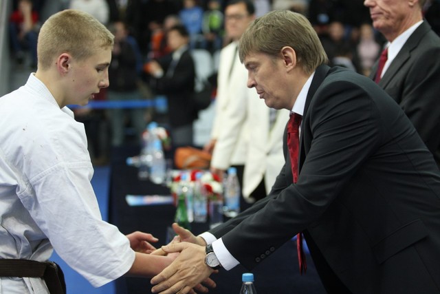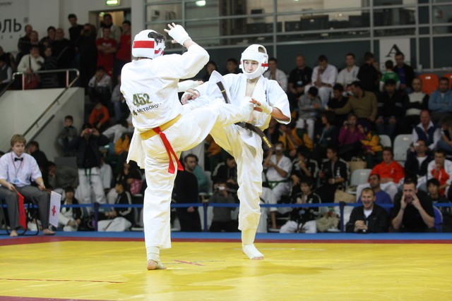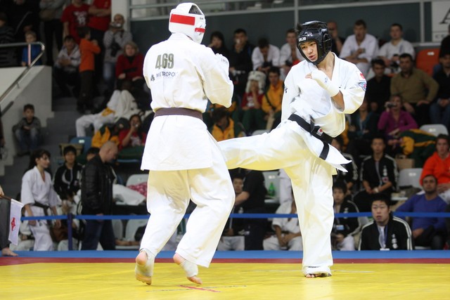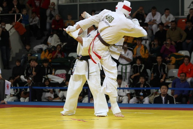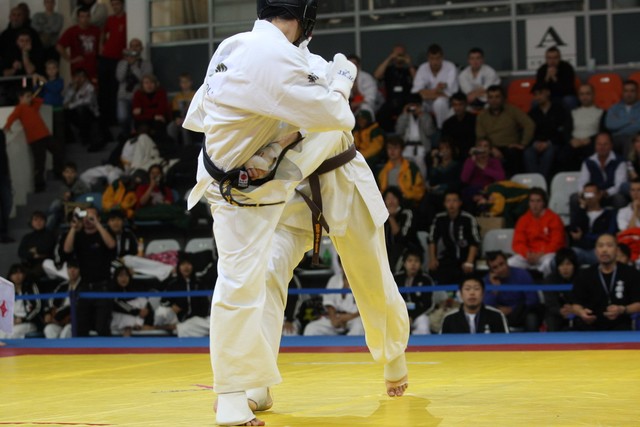 I Открытое первенство мира по Кёкусин-кан. Финальные поединки в категориях «Юниоры 16-17 лет, до 65 кг» (Михалёв Дмитрий, Россия, АКР – Кольченко Никита, Россия, Кёкусин-кан, Краснодарский край) и «Юниоры 16-17 лет, до 70 кг» (Нигамаев Евгений, Россия, АКР – Ямада Рё, Япония). Фото О. Бессуднова